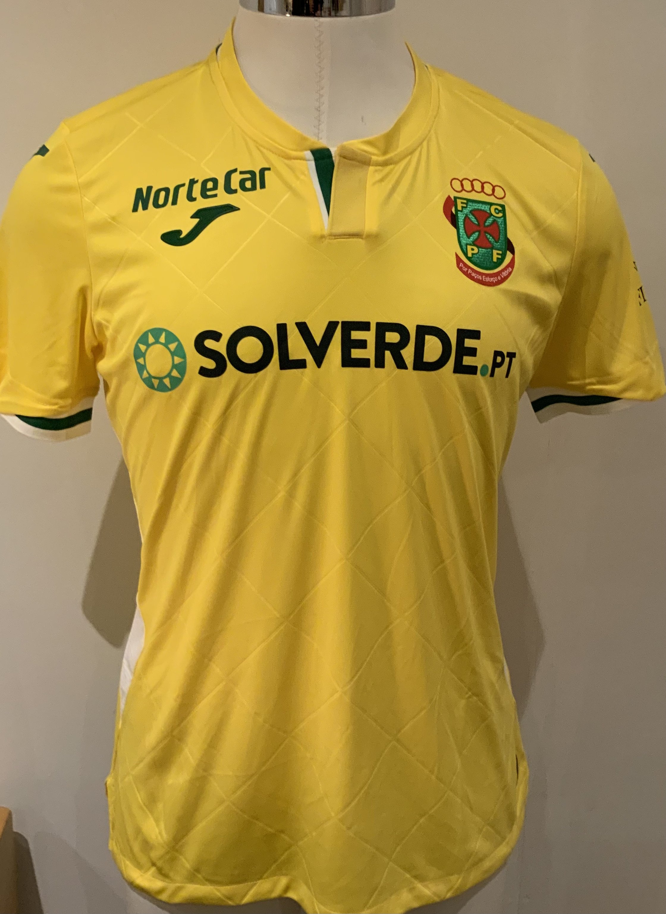 Pacos De Ferreira 2021 - 2022 Match Worn Football Shirt: Yellow short sleeve shirt with M Baixinho 2 to rear. Worn v Tottenham on 19 August 2021 in the Europa League. Player captained the side to a 1-0 victory.