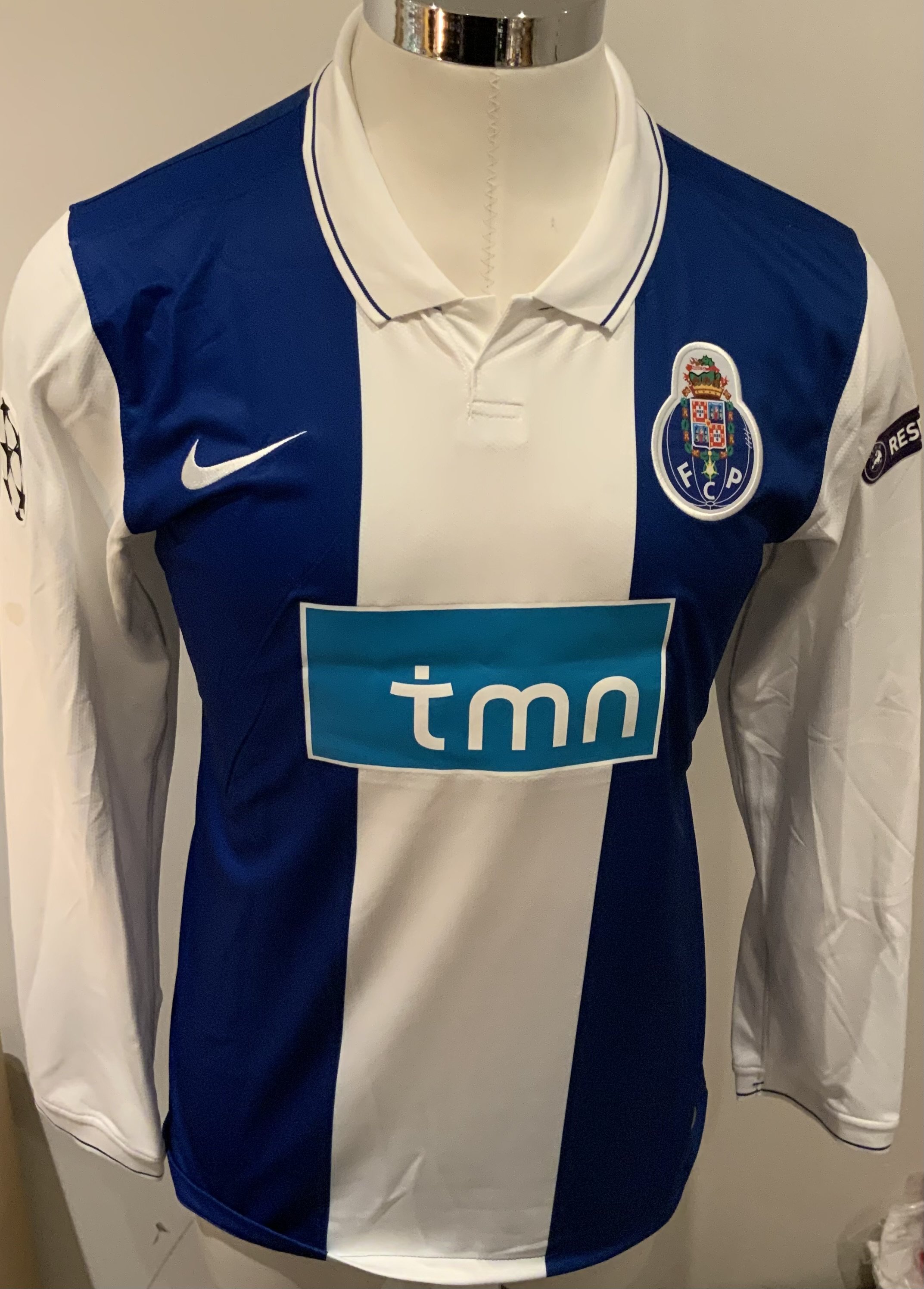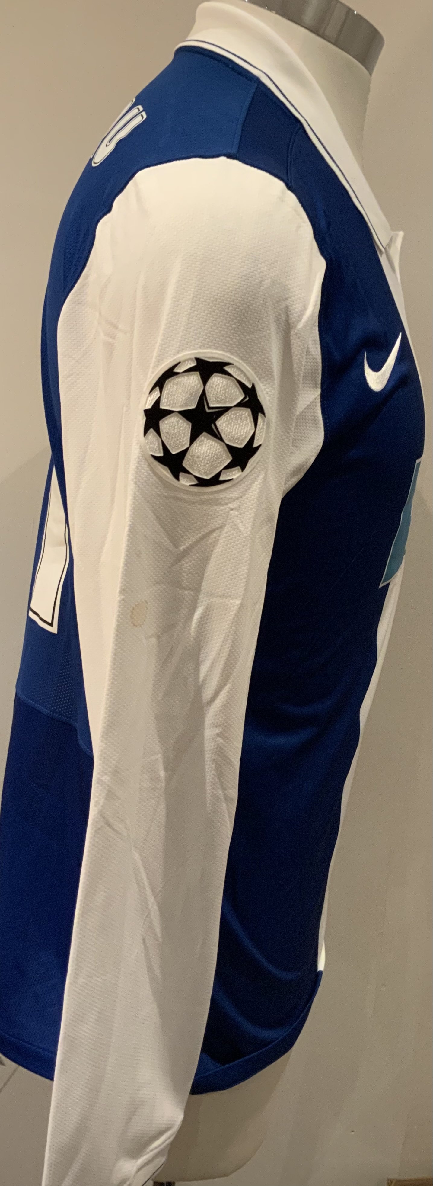 Porto 2009 - 2010 Match Worn Football Shirt: Blue and white long sleeve shirt with Champions League badging to sleeves. Sapunaru 21 to rear. Worn during the champions league campaign.