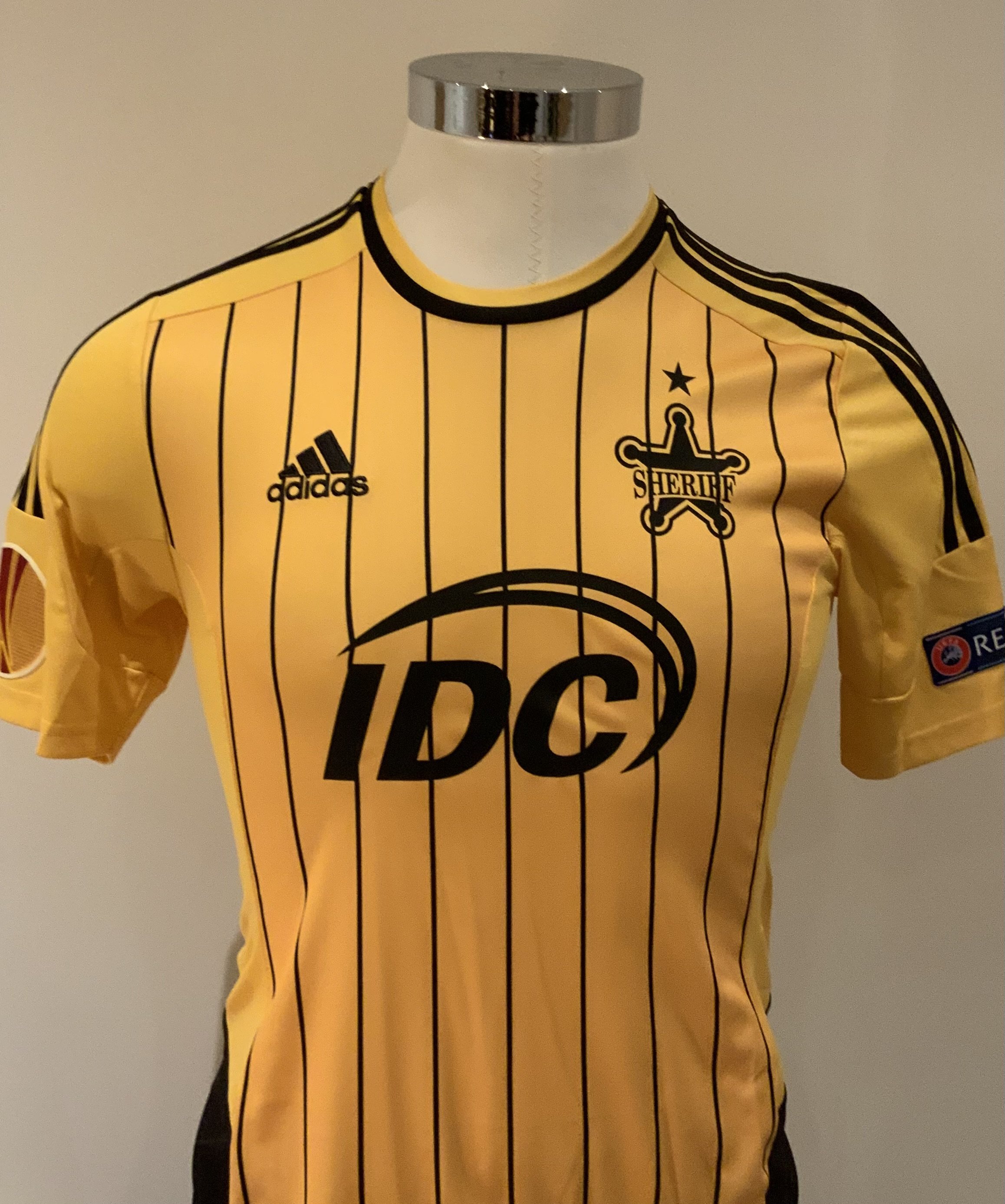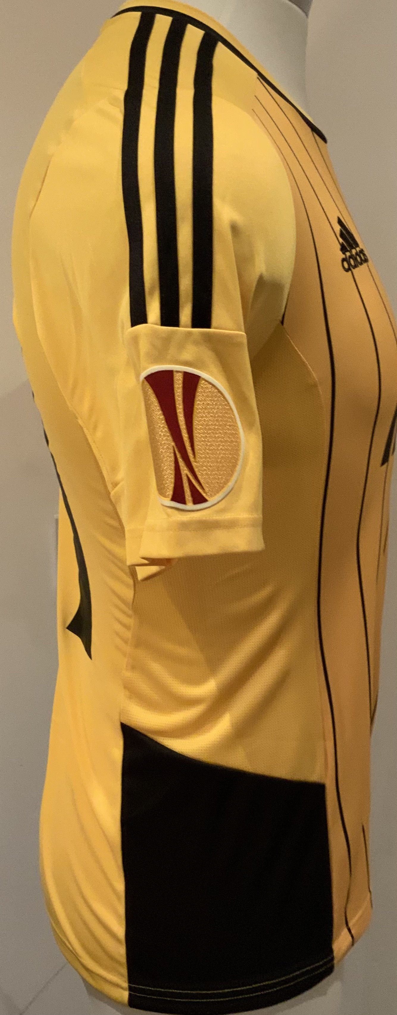 Sheriff 2012 - 2013 Match Worn Football Shirt: Yellow and black short sleeve shirt with Europa League badging to sleeves. Moyal 21 to rear. Worn during the tie against Tottenham on 7 November 2013. Moyal played the first 60 minutes.