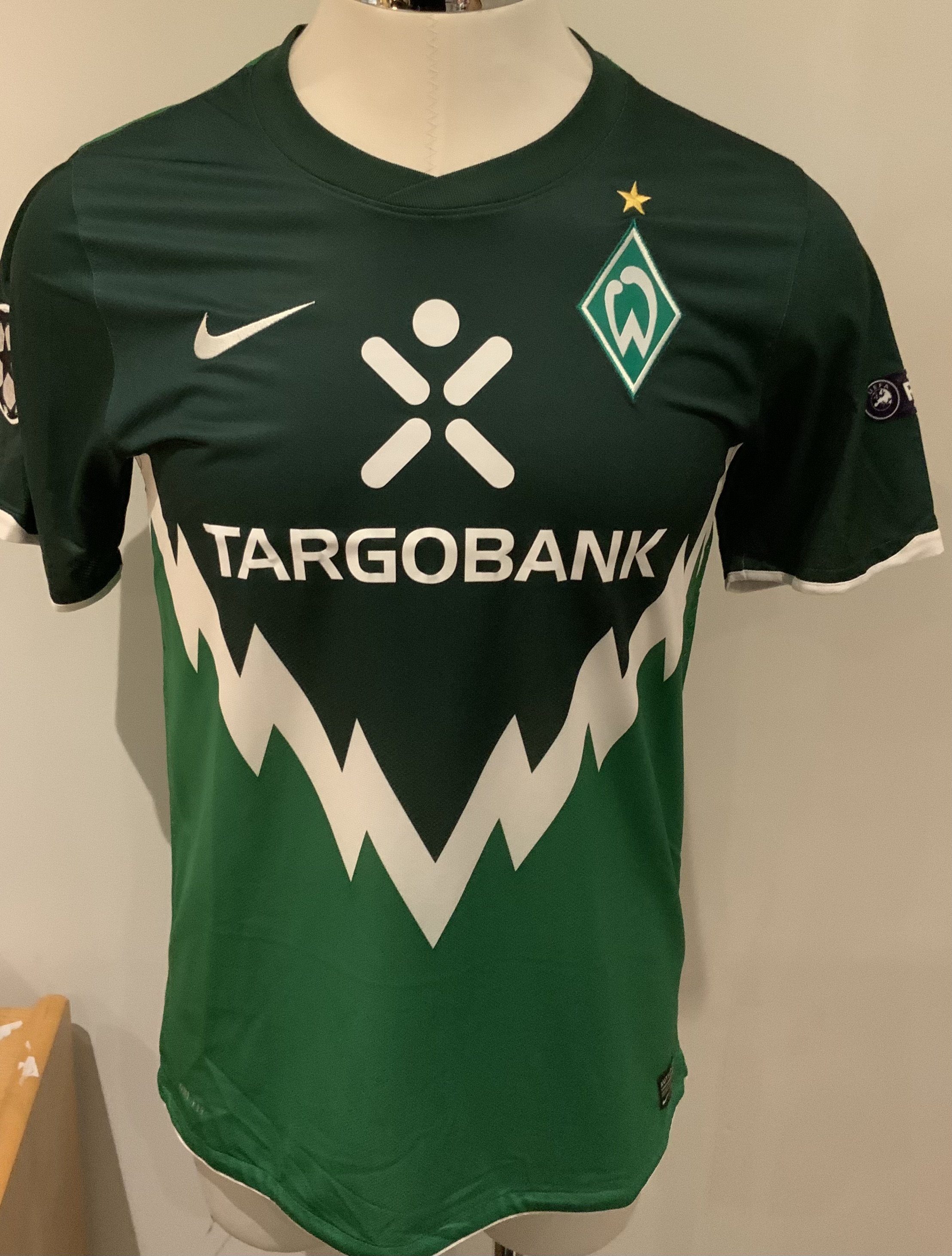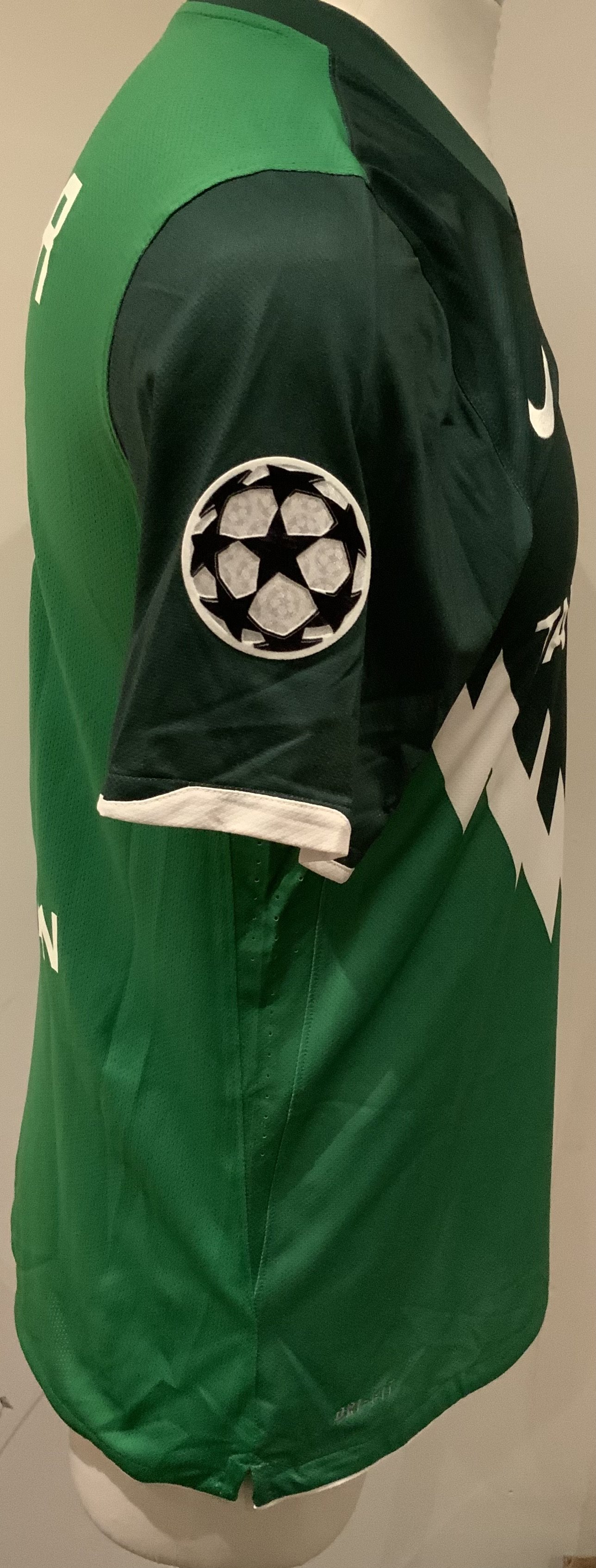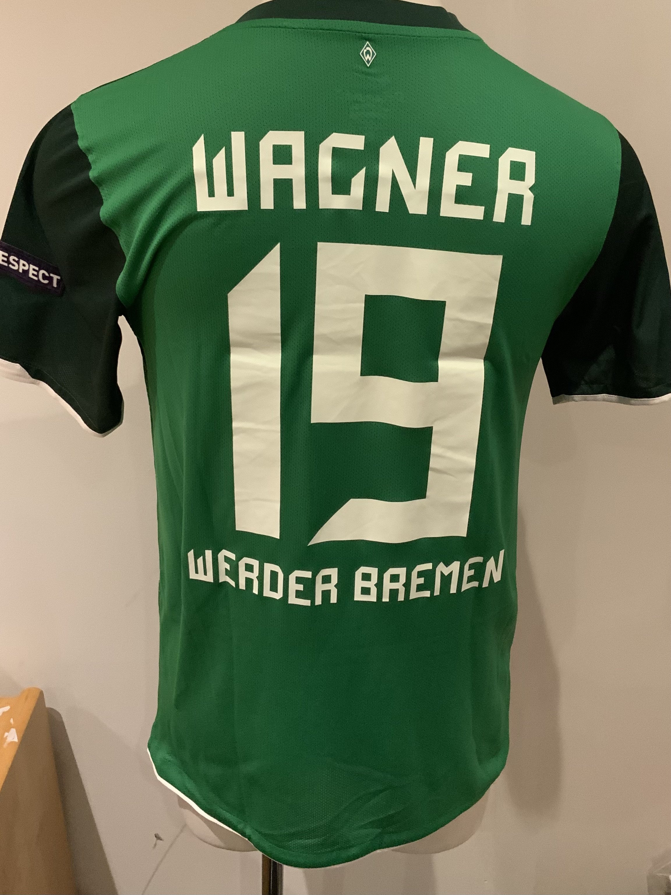 Slavia Prague 2010 - 2011 Match Worn Football Shirt: Green short sleeve shirt with Champions League badging to sleeves. Wagner 19 to rear. Worn during the 2-2 draw against Tottenham on 14 September 2010. Player was a second half substitute.