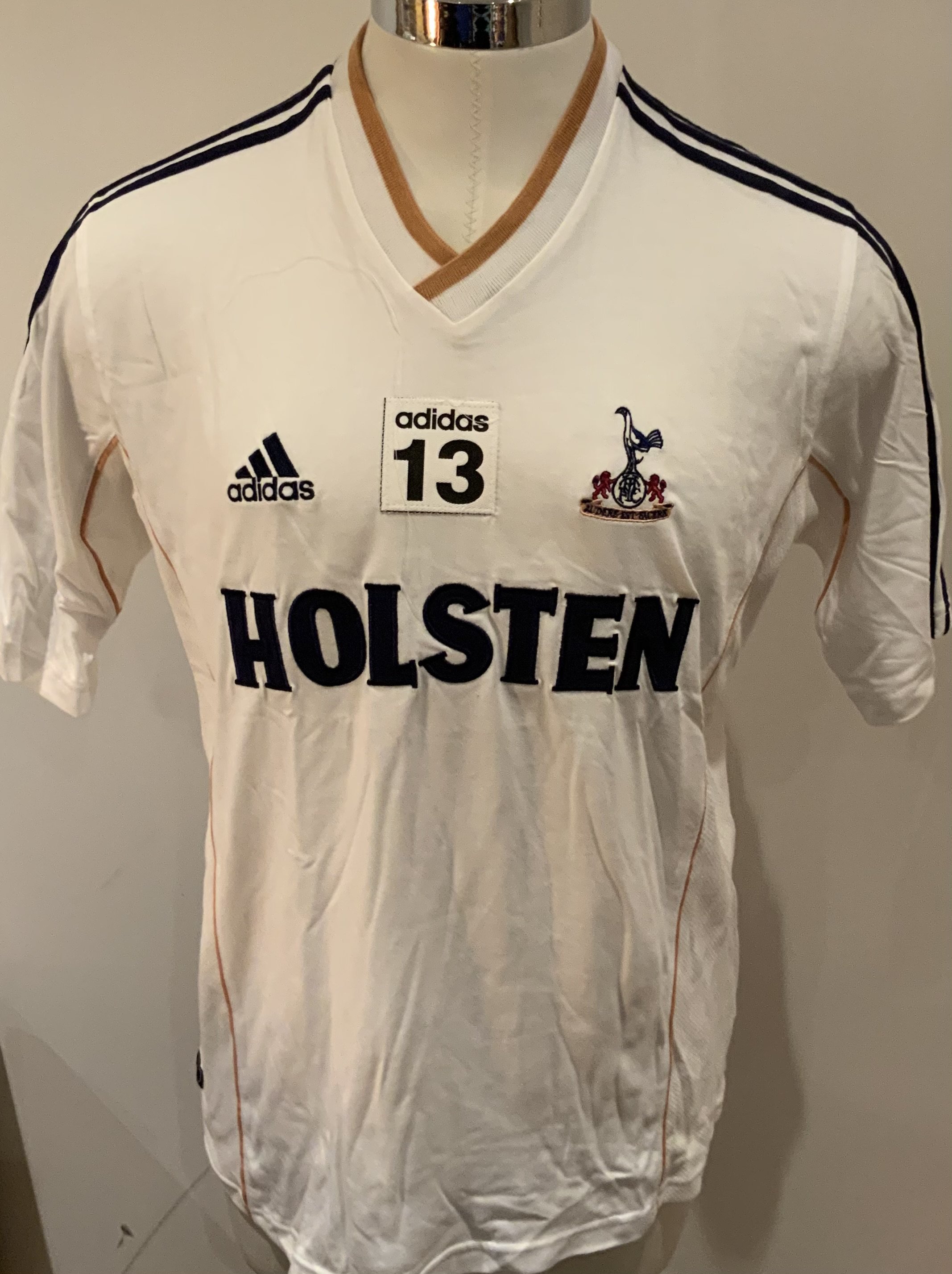 Tottenham 2000 - 2001 Football Players Training Kit: Number 13 used by Neil Sullivan. Comprises of rain jacket which is signed by Sullivan plus blue Adidas Holsten sweatshirt and matching white tee shirt. (3)