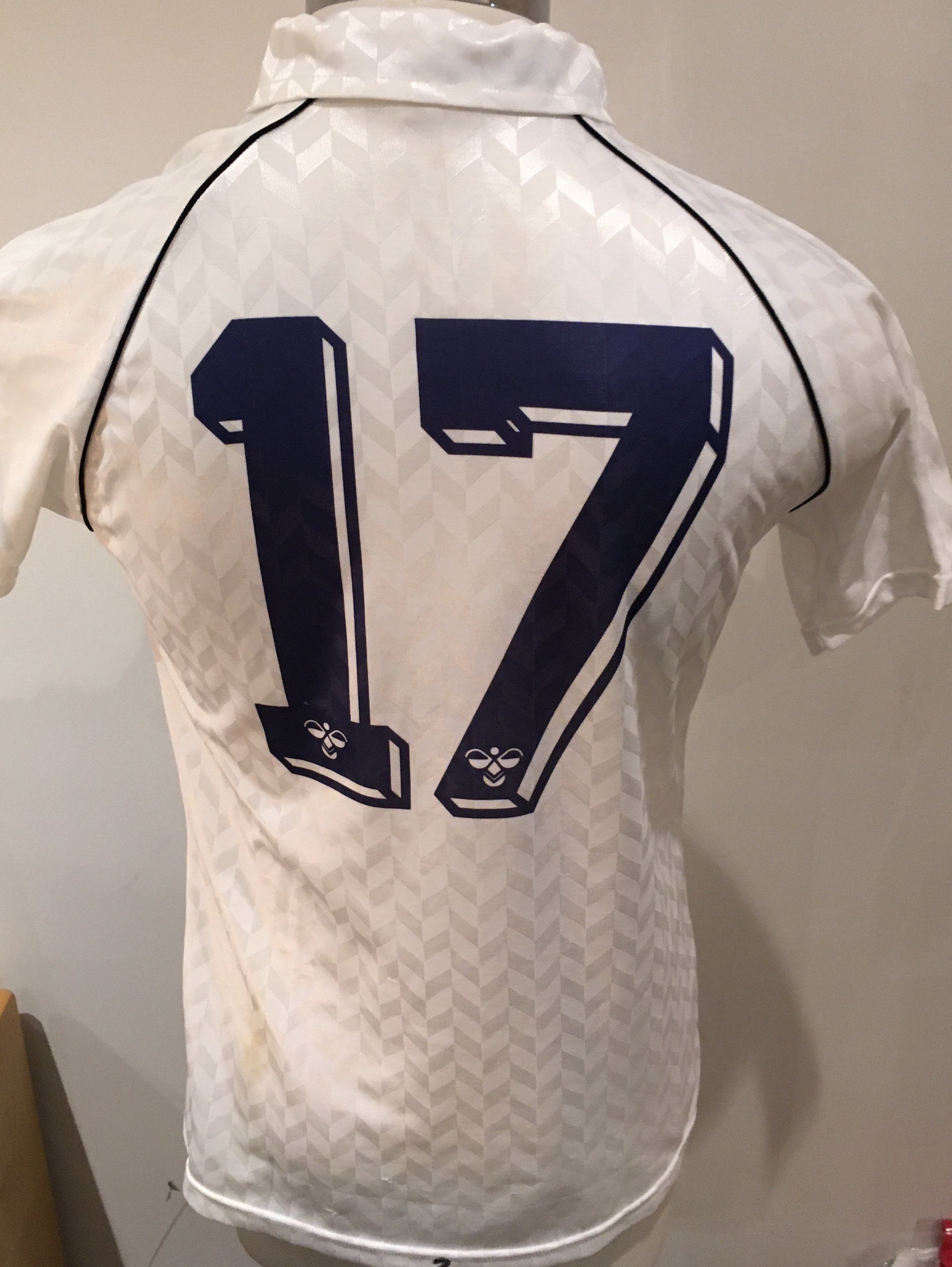 Tottenham 1987 - 1988 Match Issued Football Shirt: White short sleeve Holsten shirt with number 17 to rear. Whilst issued by the kit man the number 17 was not used this season.