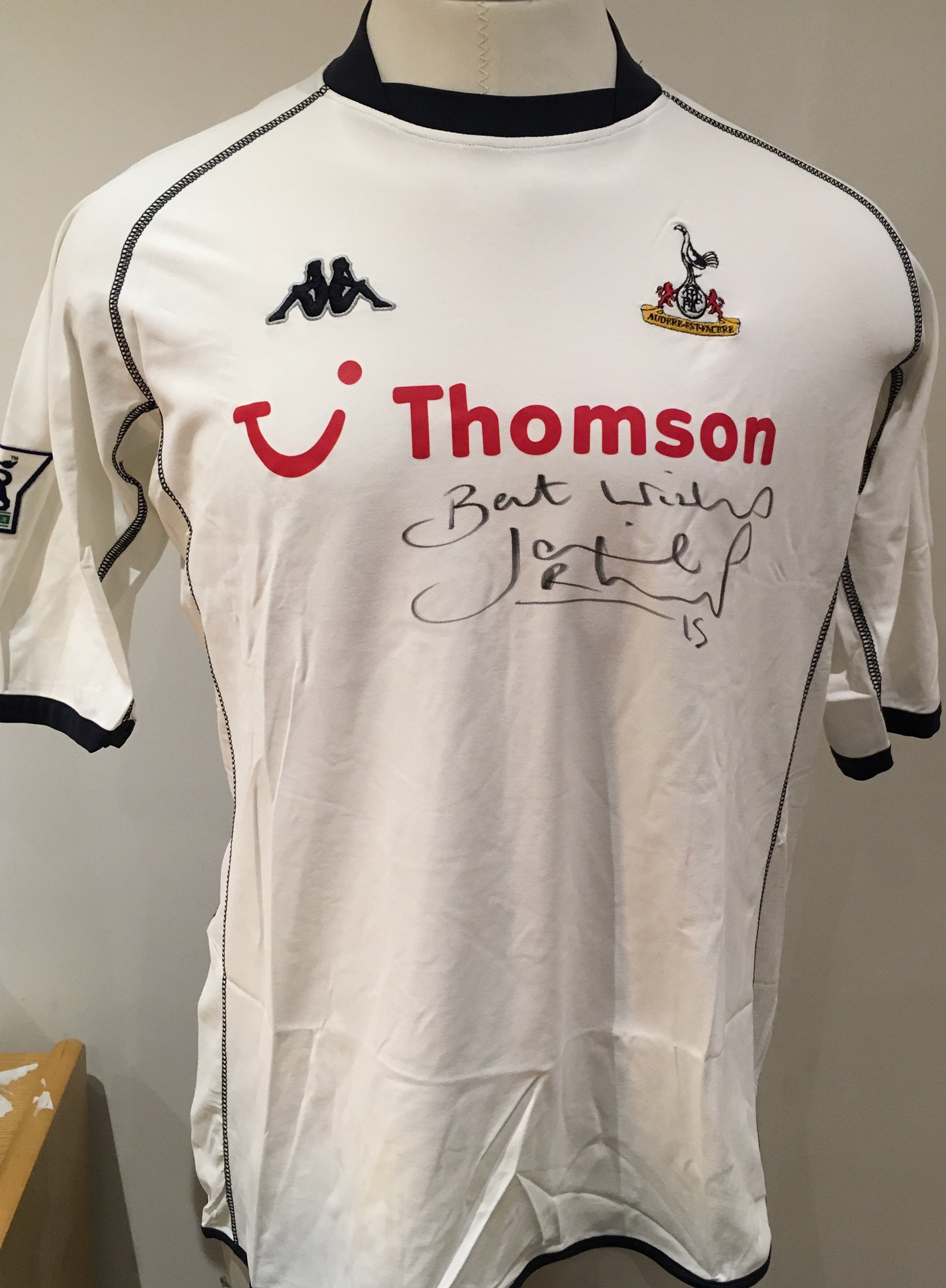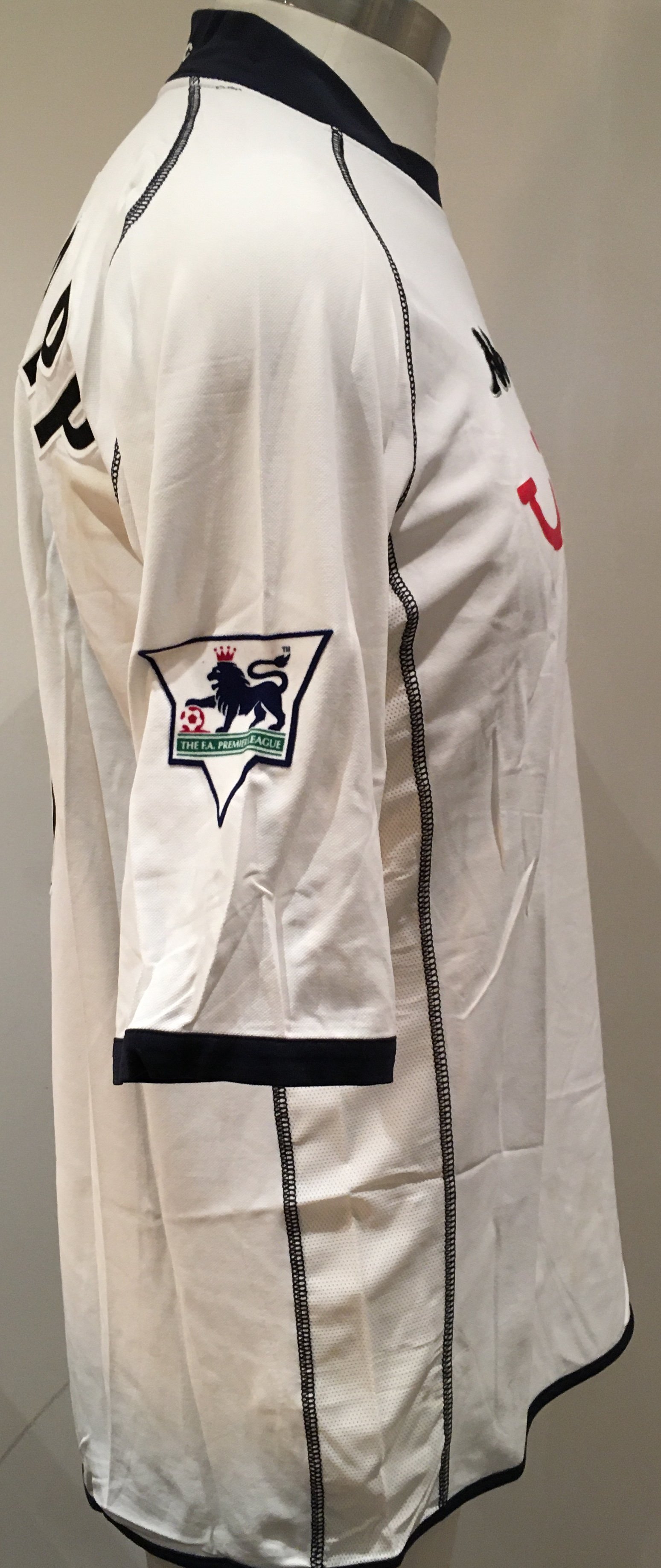 Tottenham 2002 - 2003 Match Worn Football Shirt: White short sleeve shirt with Premier League badging to sleeves Redknapp 15 to rear. Shirt is signed to front by the player.