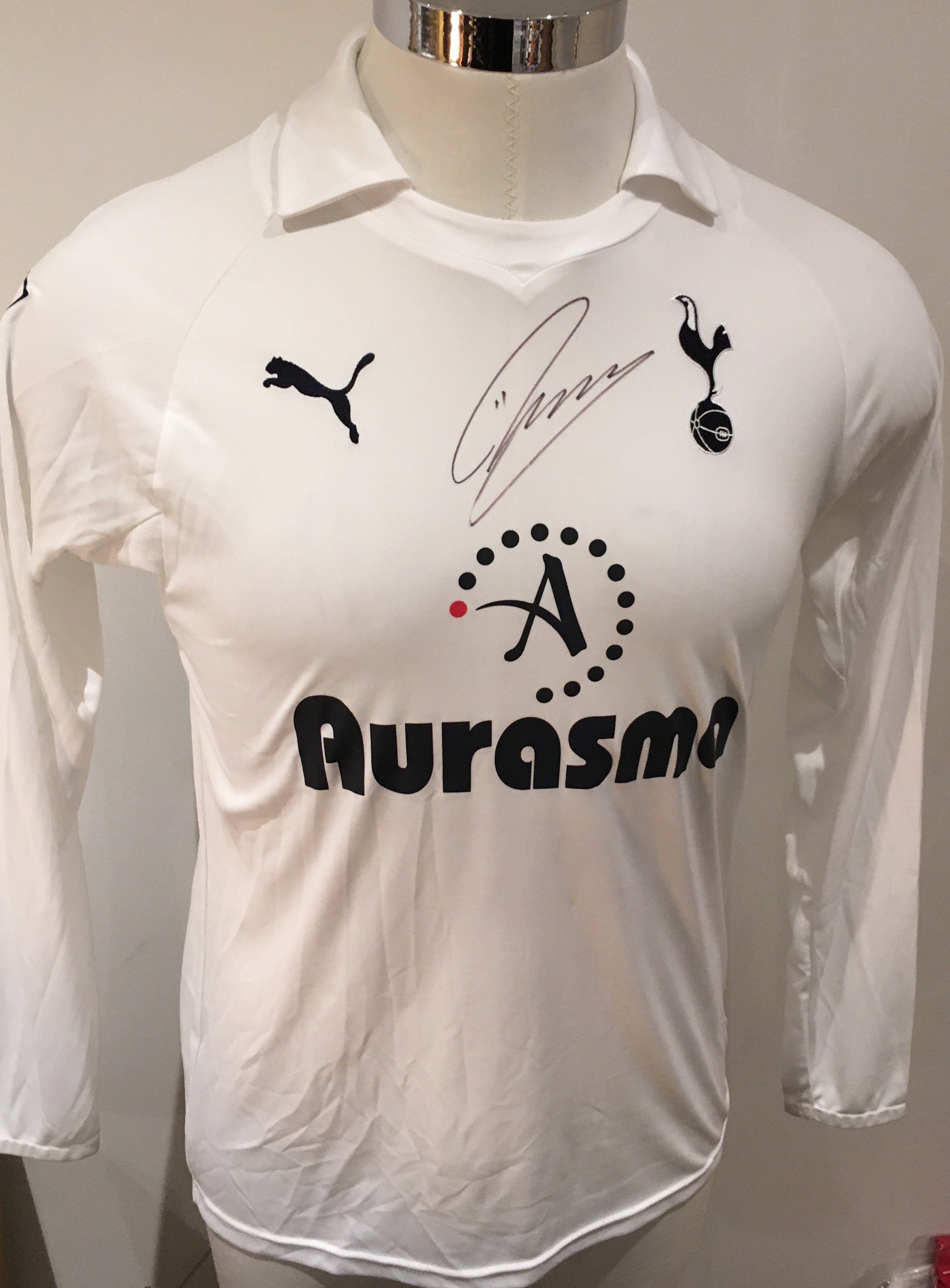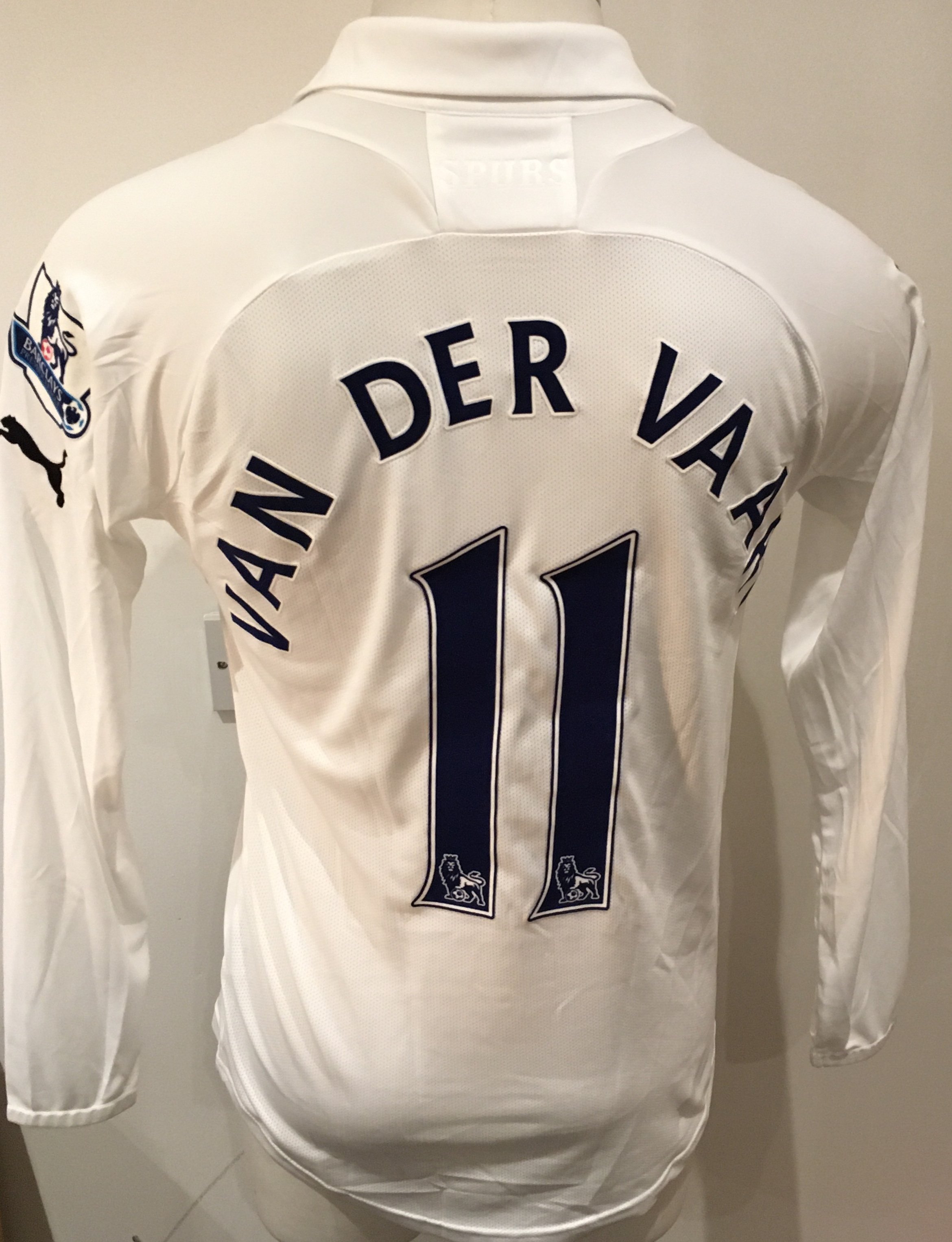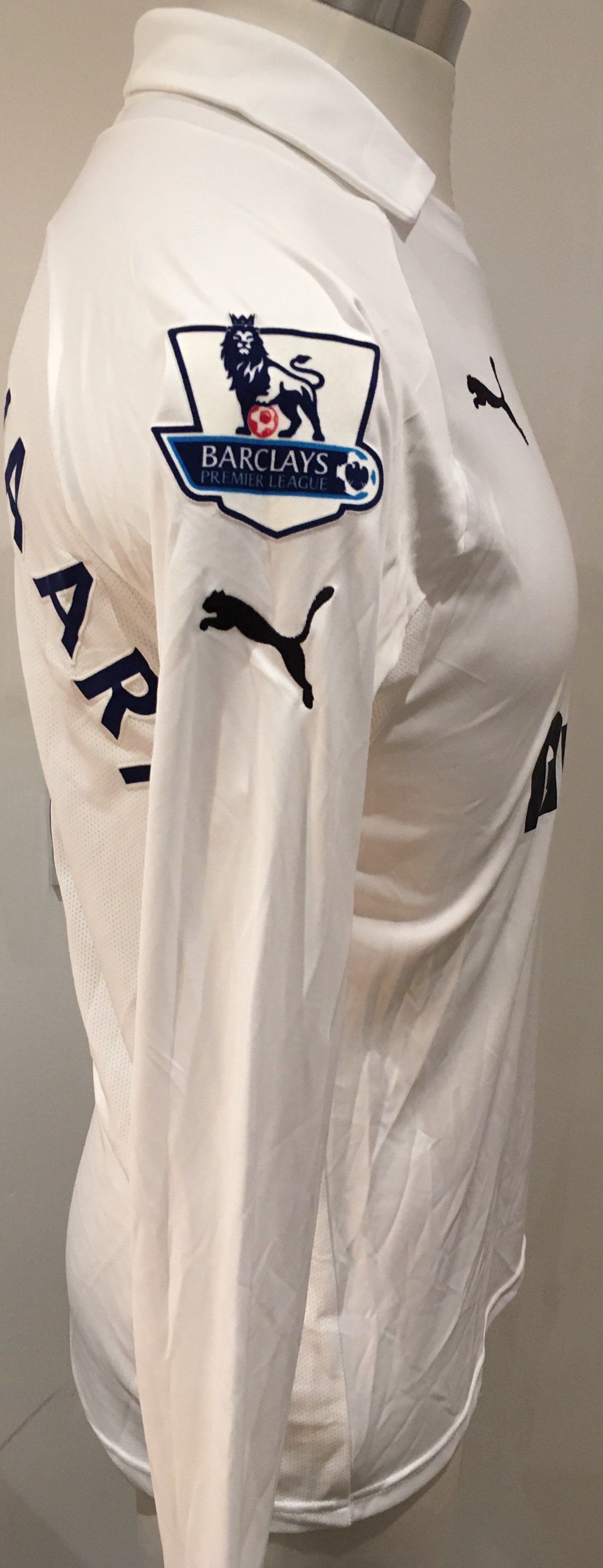 Tottenham 2011 - 2012 Match Worn Football Shirt: White long sleeve shirt with Premier League badging to sleeves. Van Der Vaart 11 to rear. Shirt is signed to front by the player.