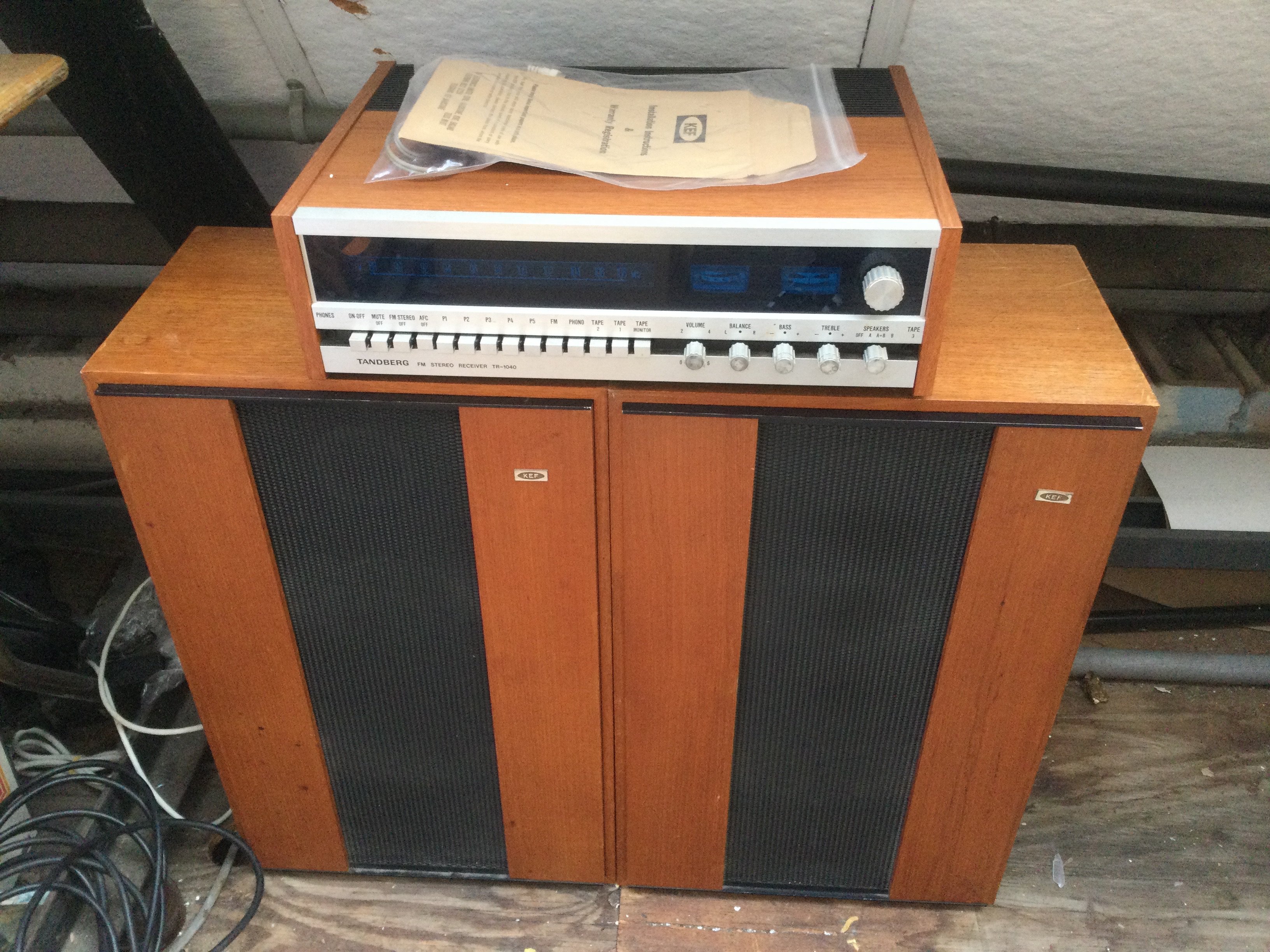 A Tandberg TR1040 stereo receiver and a pair of vintage KEF speakers with instruction manual (3).