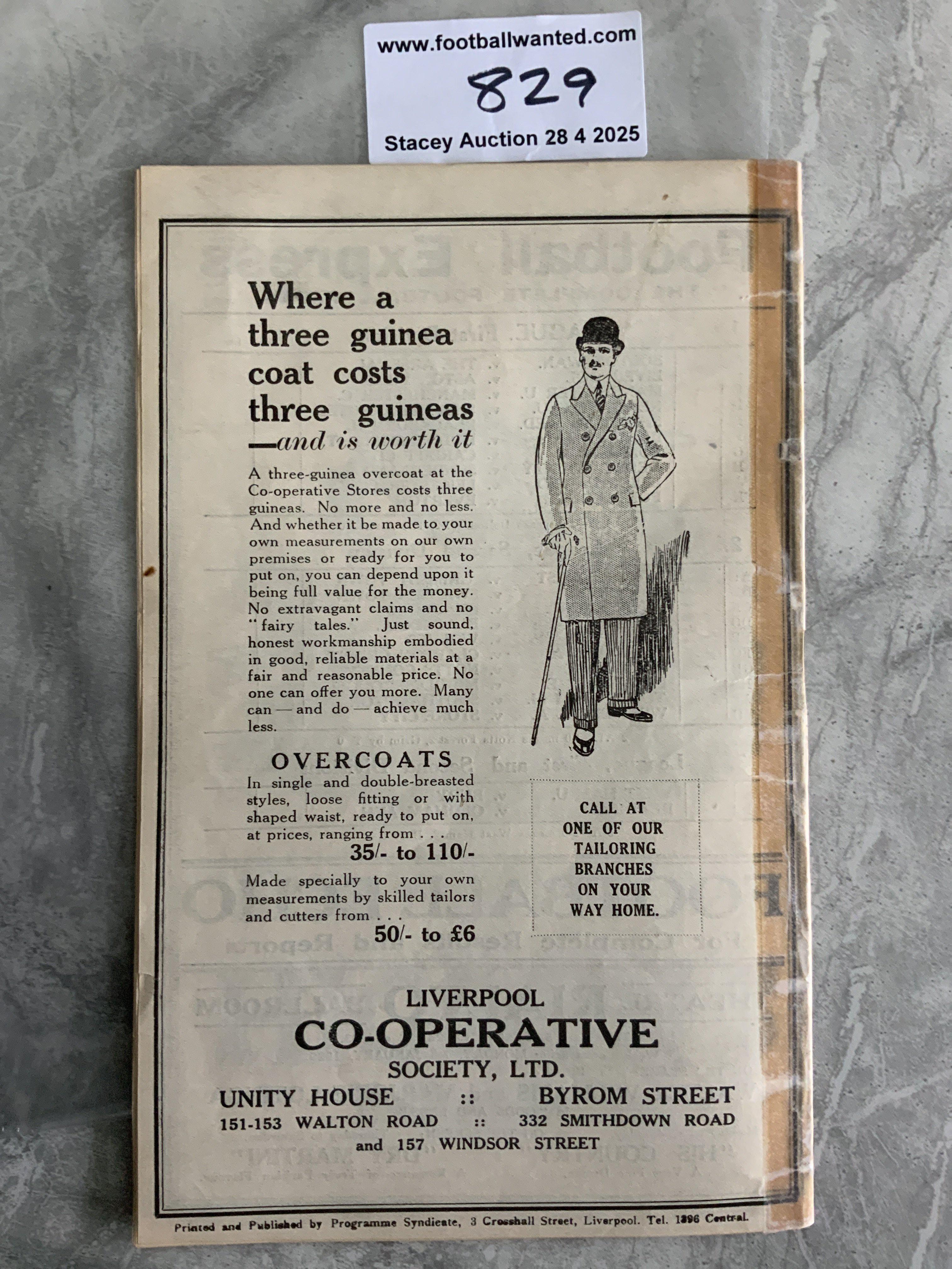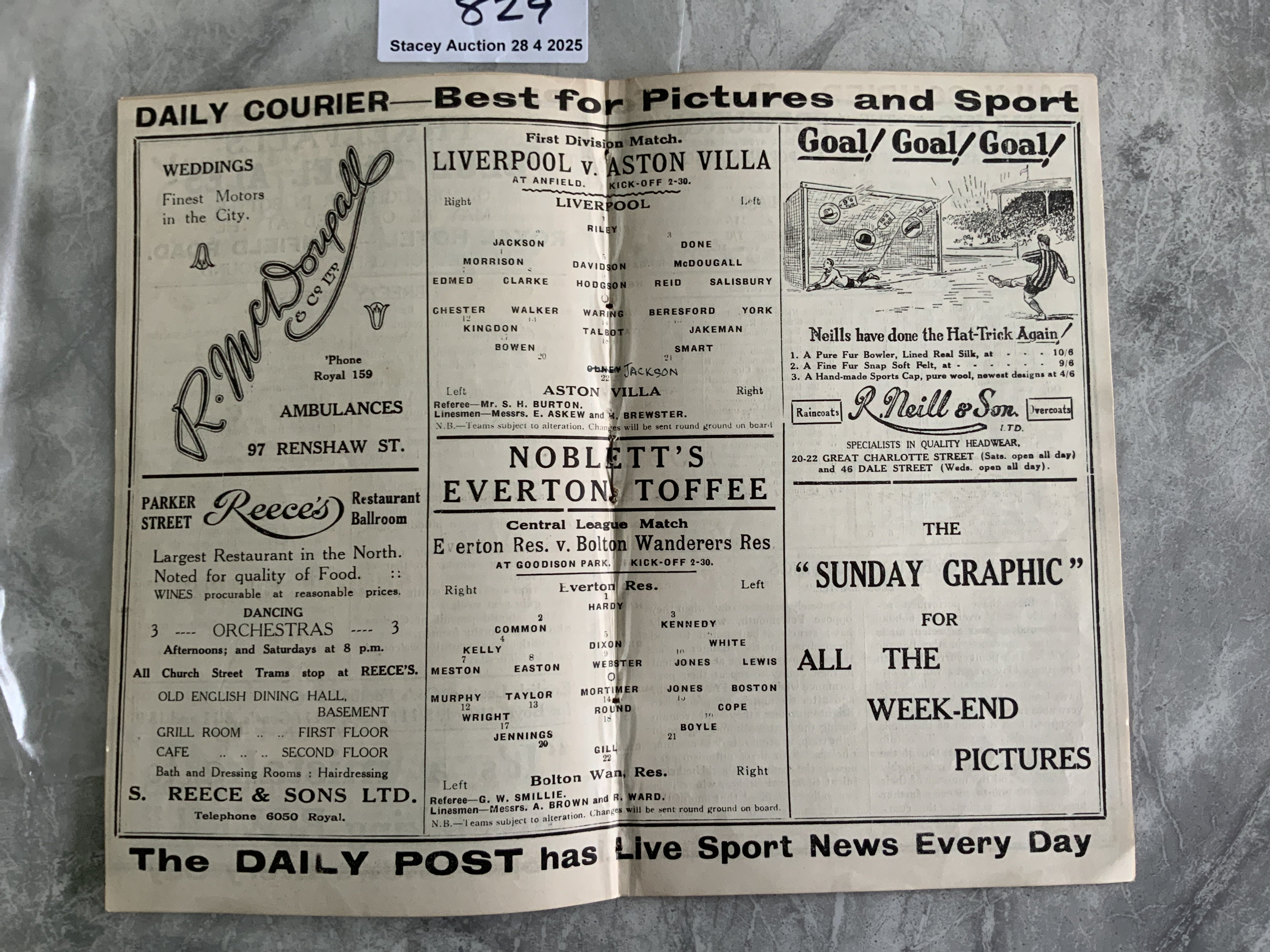 1928 - 1929 Liverpool v Aston Villa Football Programme: Fair condition First Division programme with one team change. Could possibly have been ex bound as it has celotape to spine.