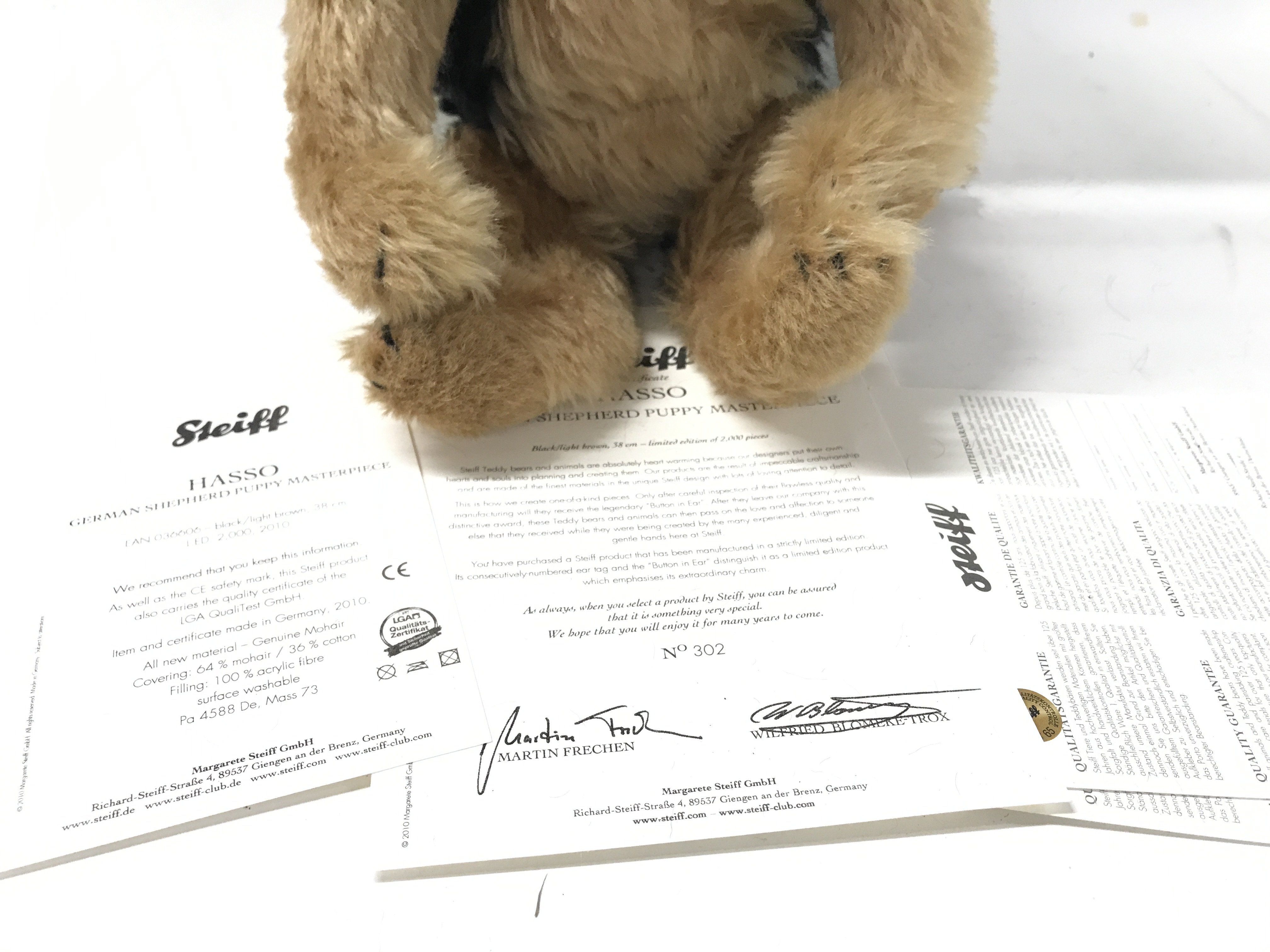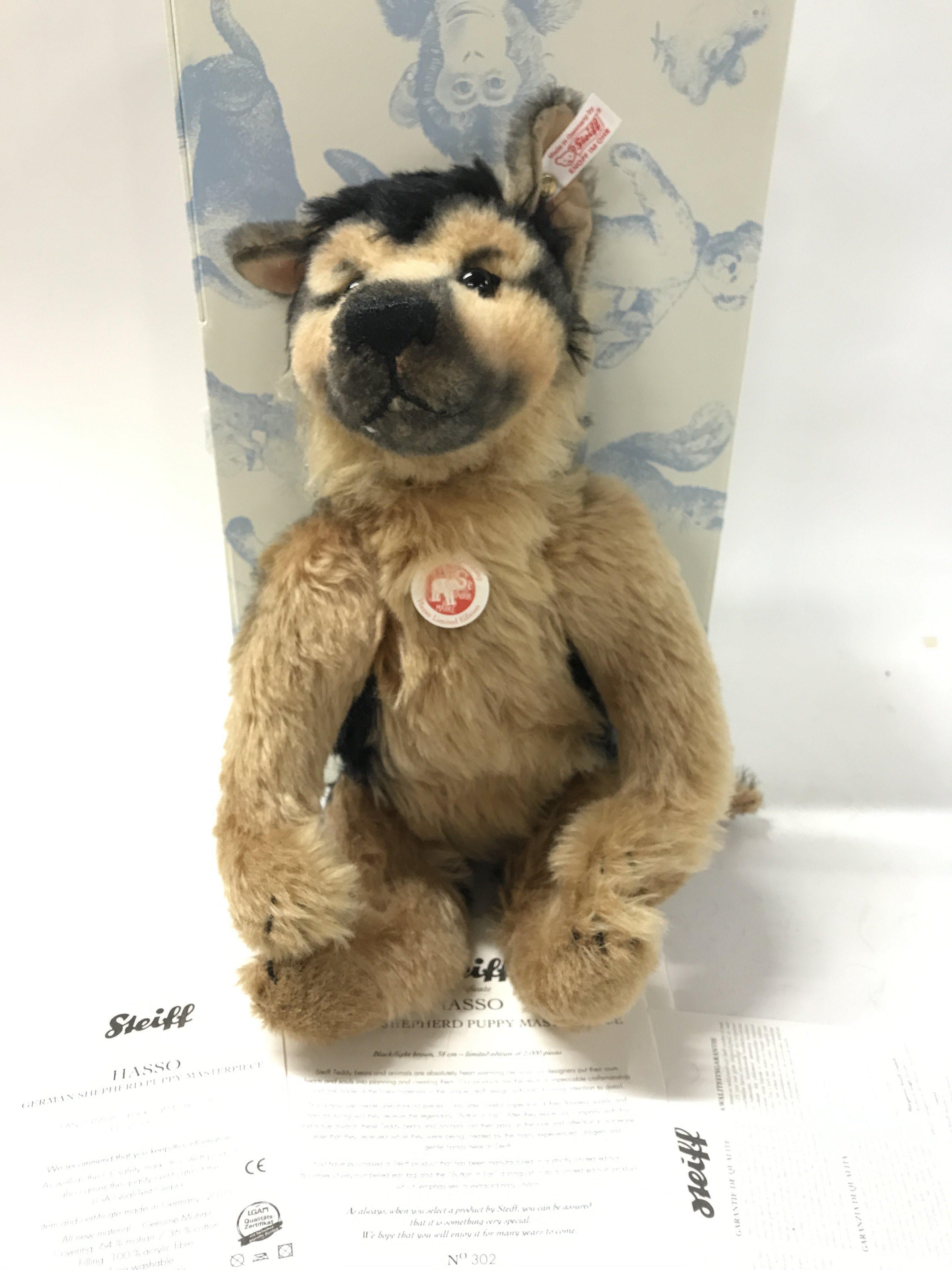 A Boxed Steiff Hasso German Shepherd. Limited Edition. With Certificate.