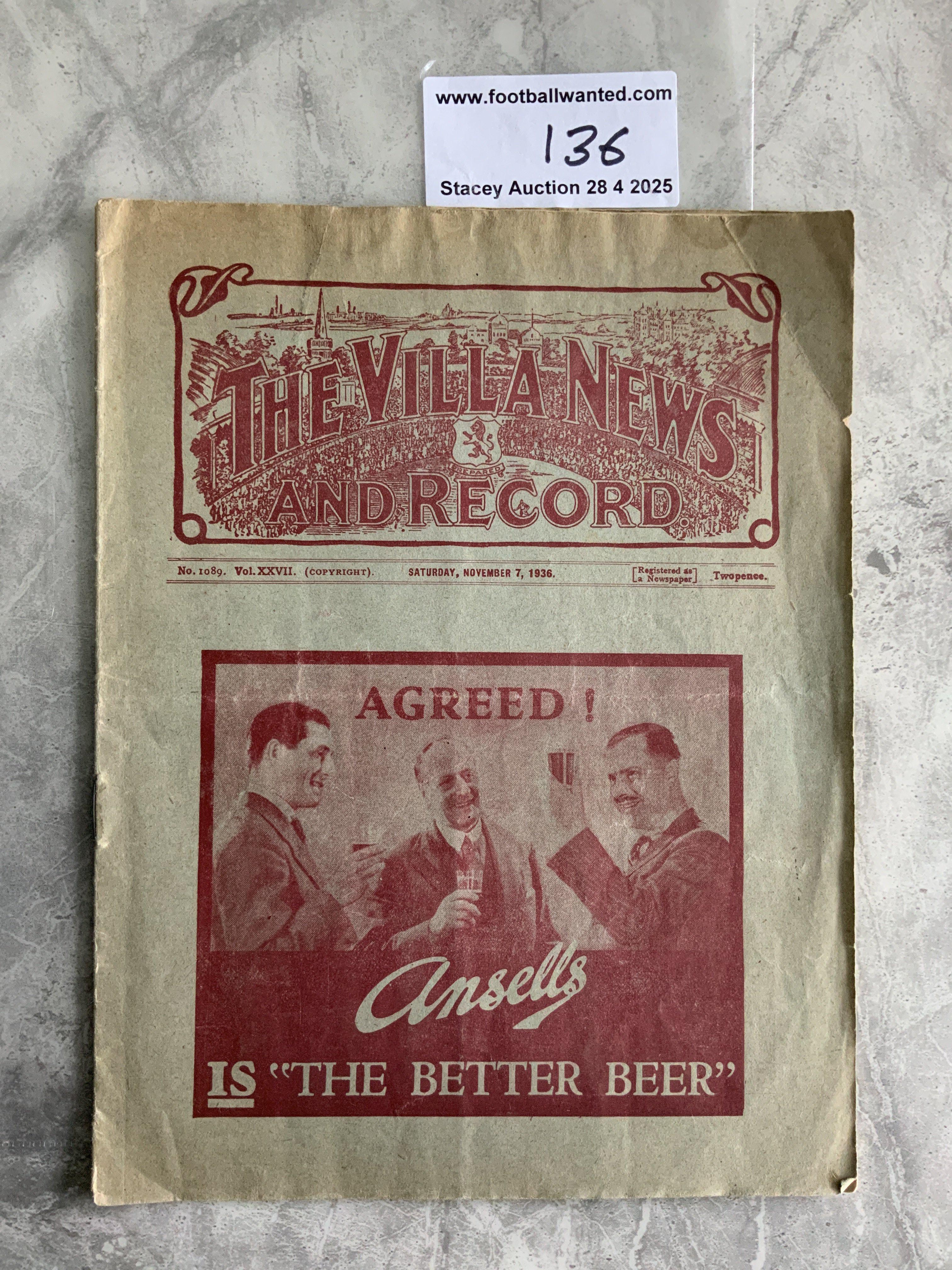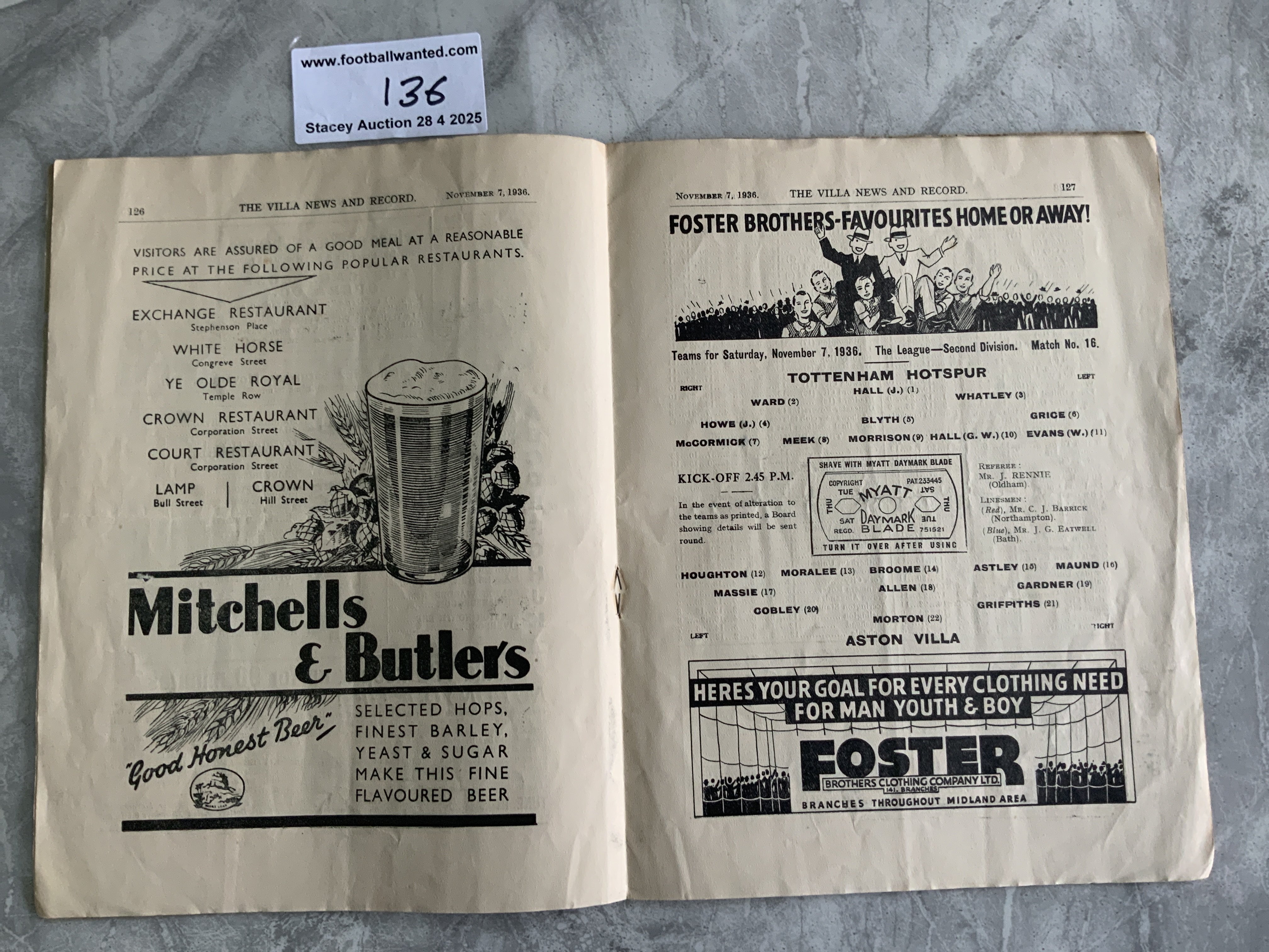 36/37 Aston Villa v Tottenham Football Programme: Very good condition Division One programme with no team changes.