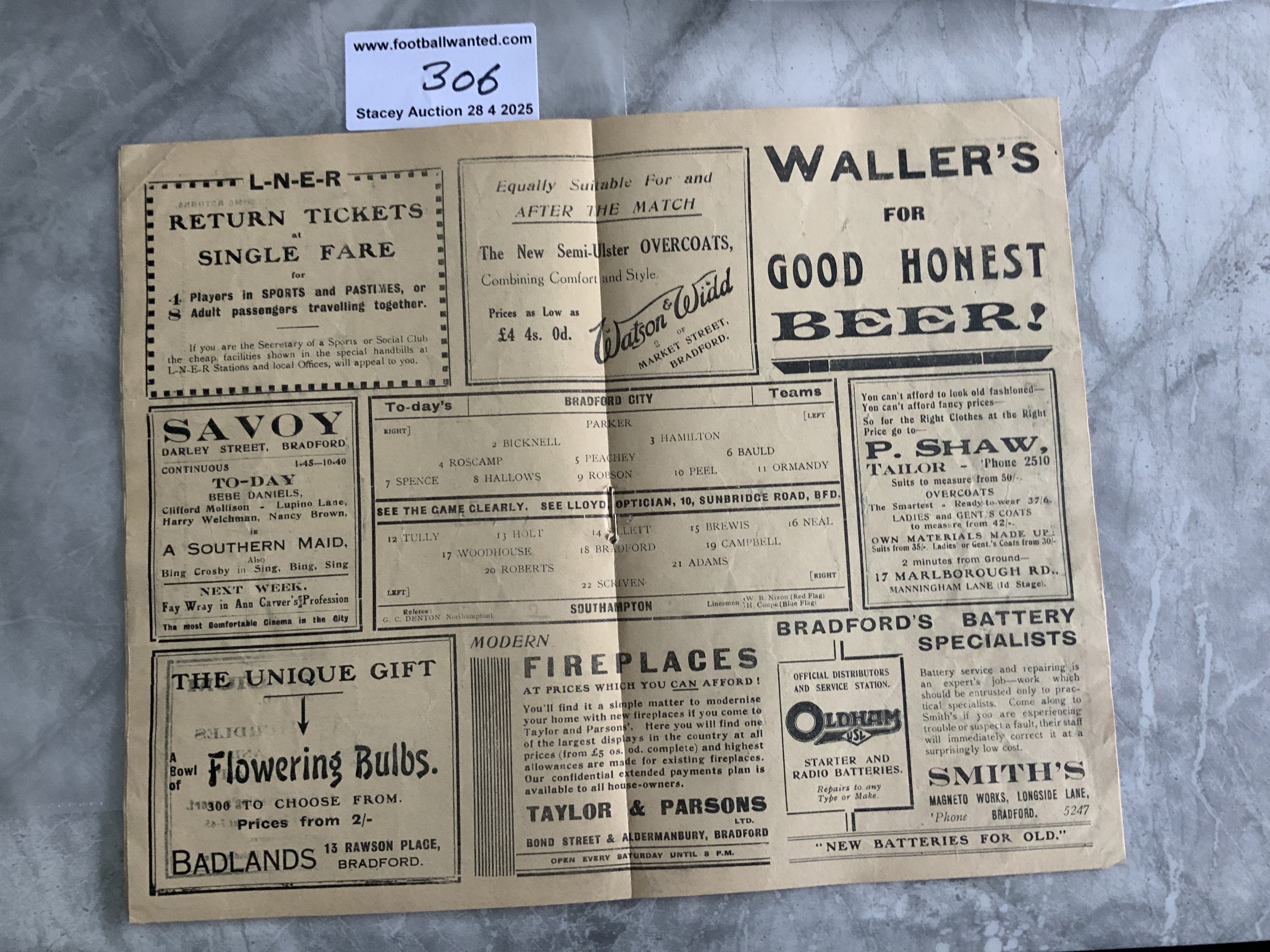 33/34 Bradford City v Southampton Football Programme: Very good condition Division Two programme with no team changes.