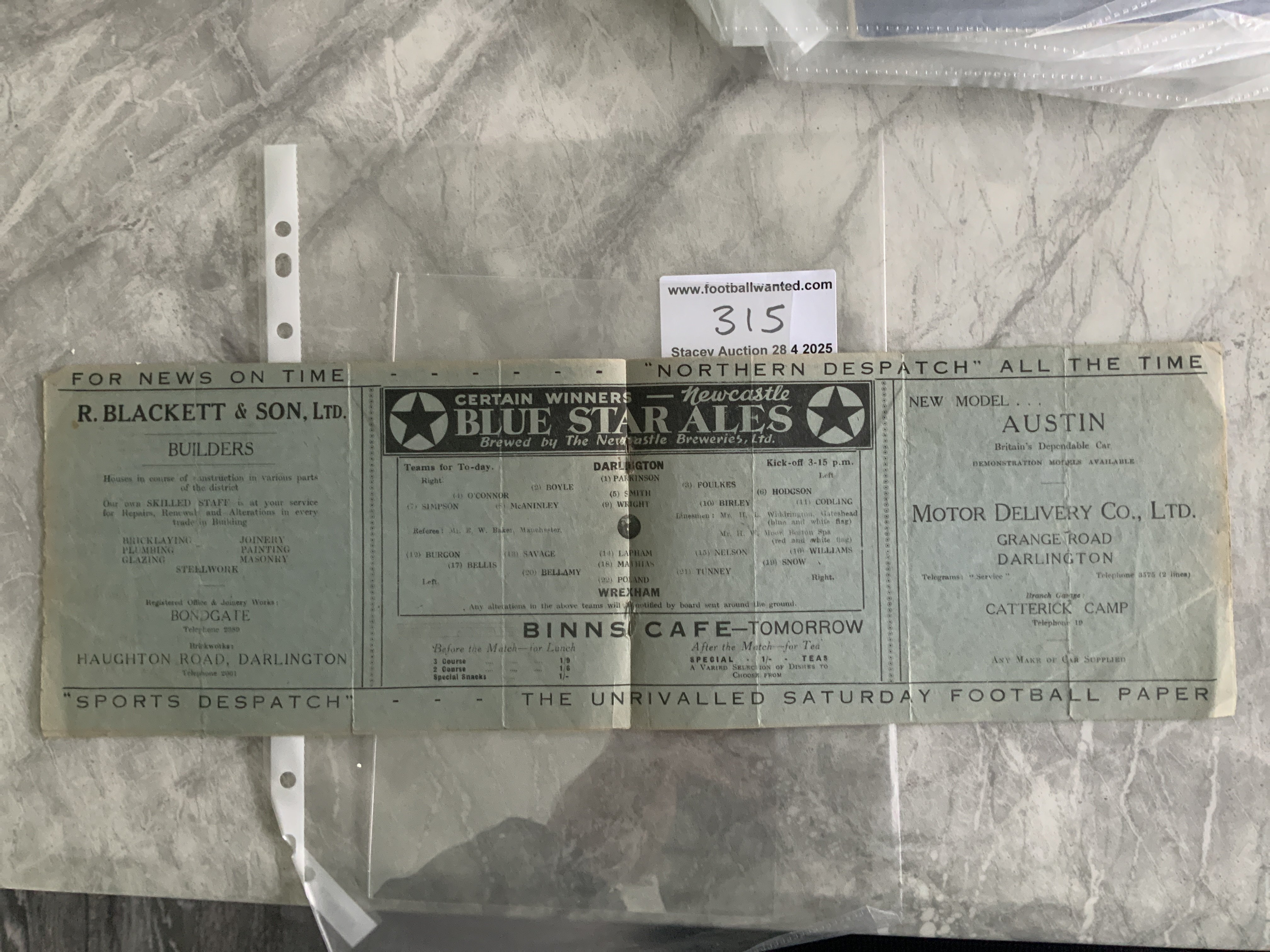 38/39 Darlington v Wrexham Football Programme: Fair condition Division Three programme with no team changes. Wear to folds.