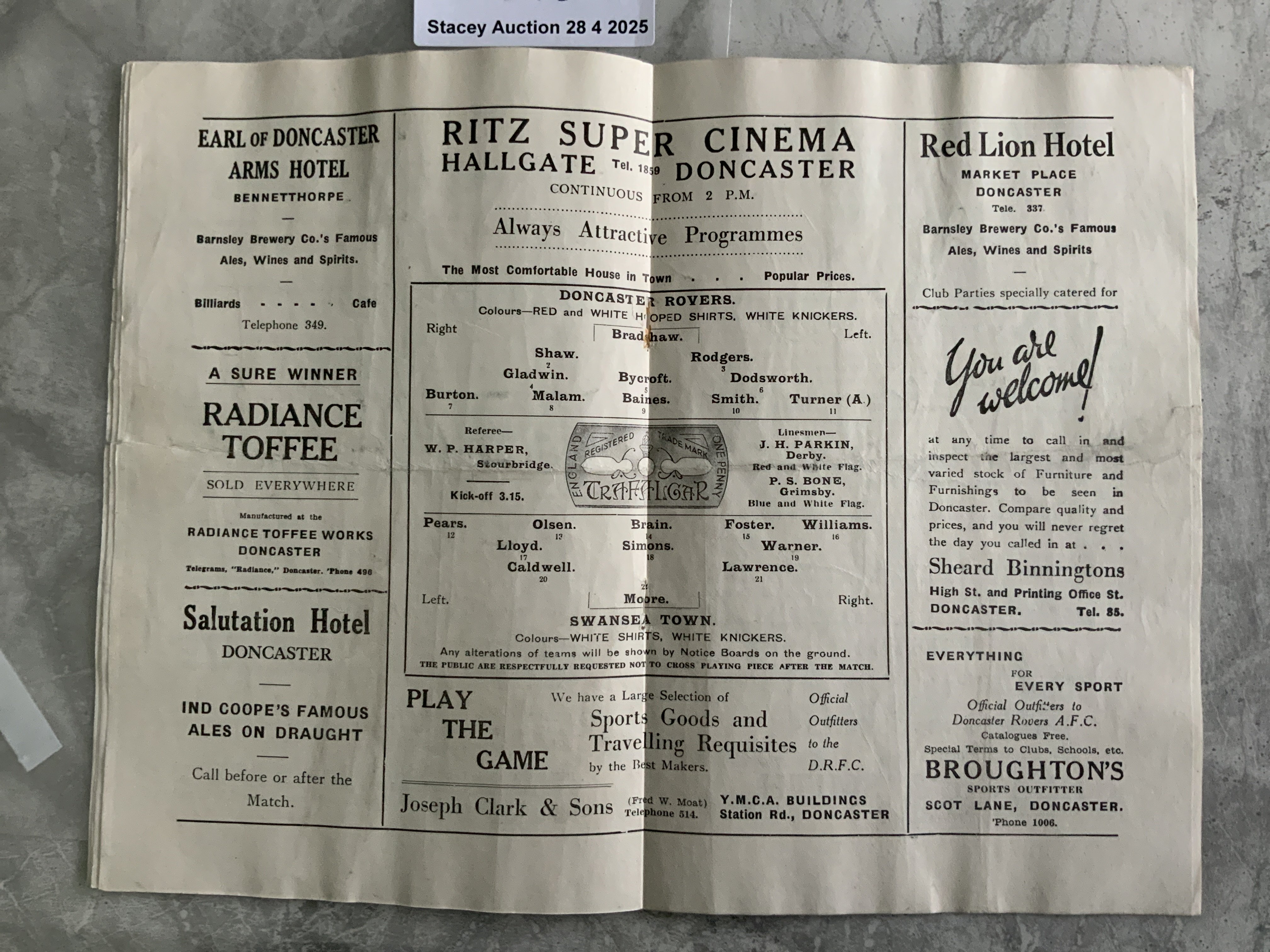36/37 Doncaster Rovers v Swansea Football Programme: Good condition Division Two programme with no team changes. Staples removed not rotted away. Fold.