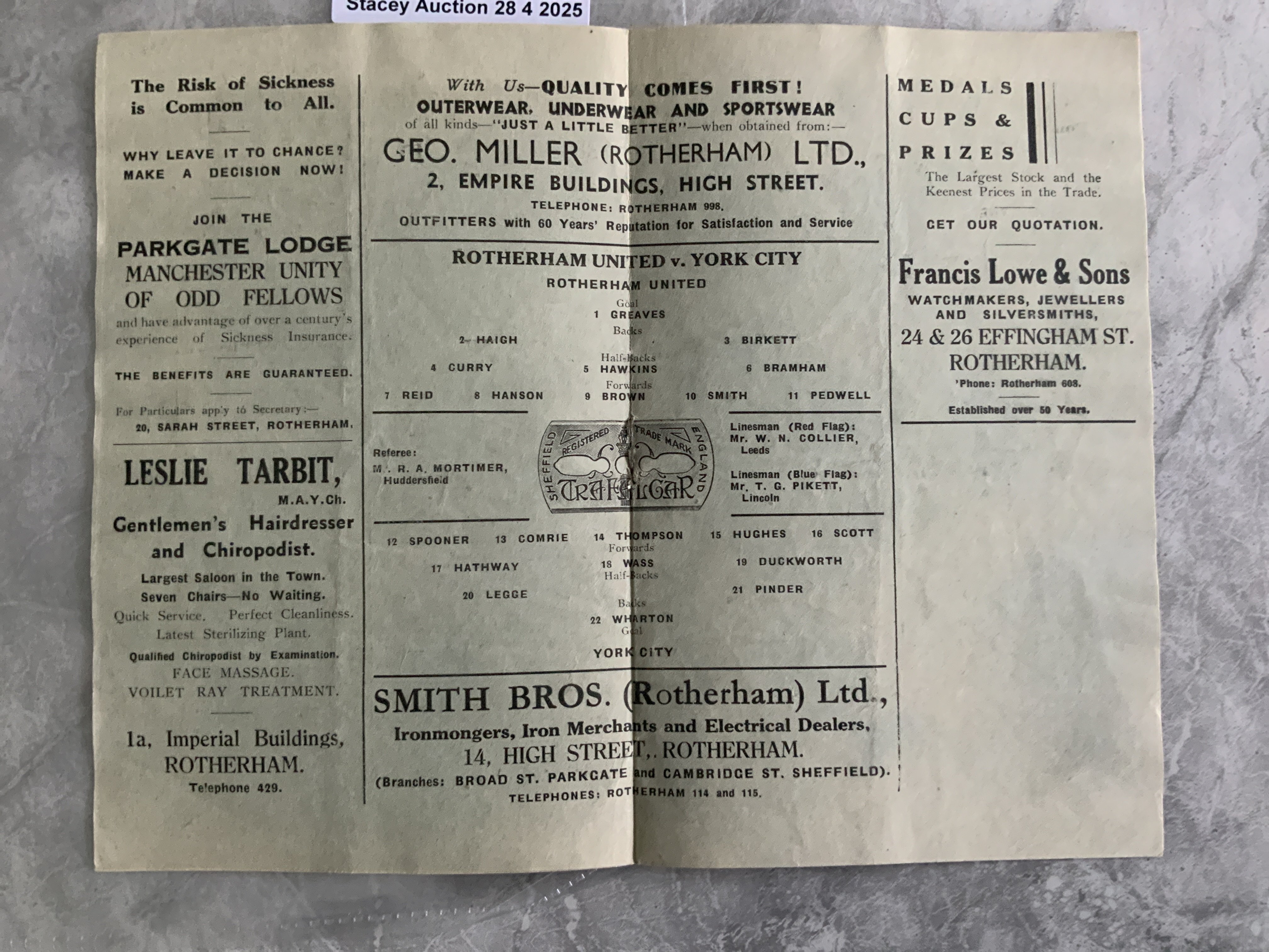 36/37 Rotherham v York City Football Programme: Very good condition Division Three programme with no team changes. Some half times filled out to rear.