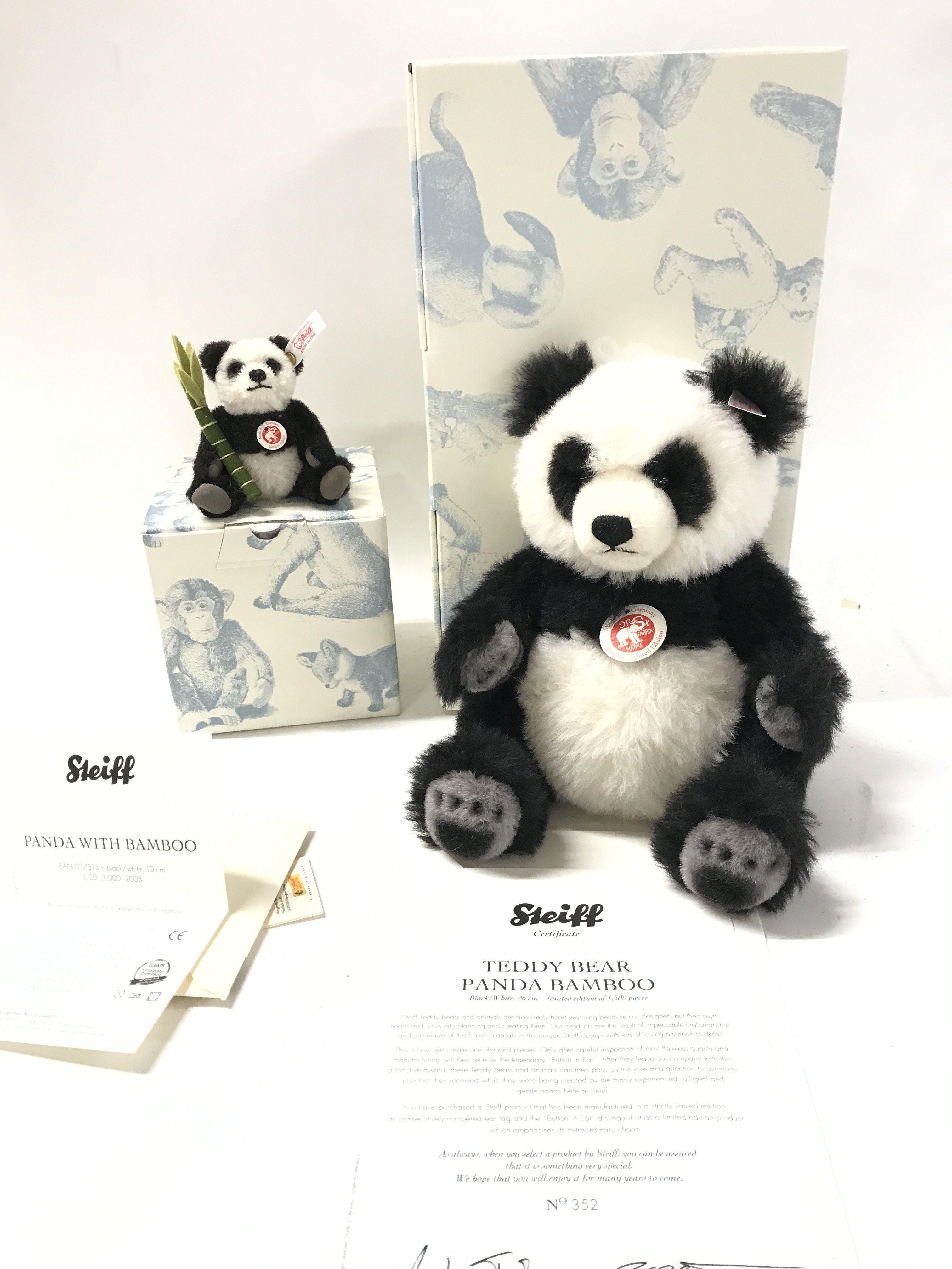 A Boxed Steiff Panda With Bamboo ans a Teddy Bear Panda Bamboo. Both With Certificates.(2).