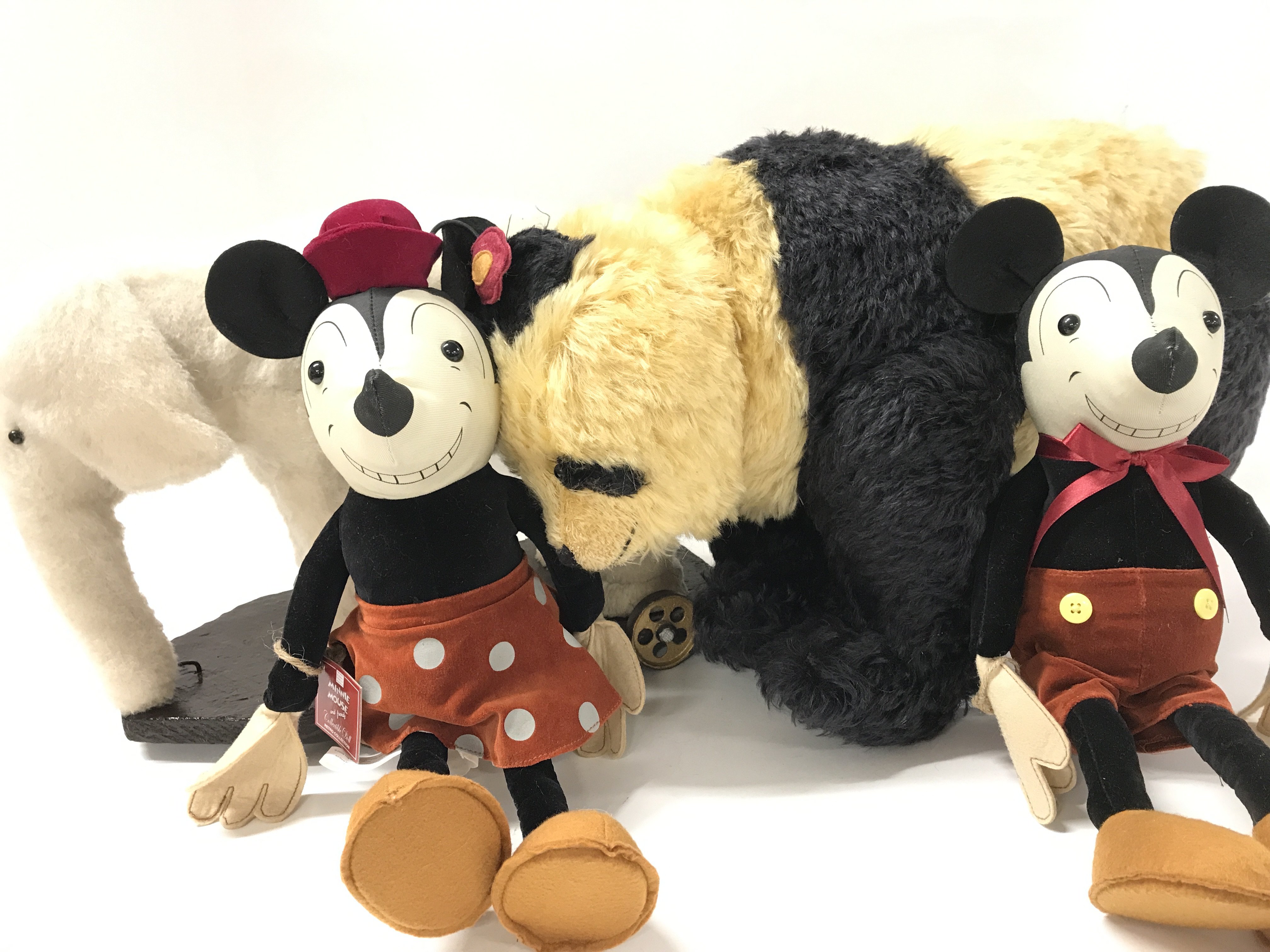 2 Boxed Walt Disney Family Museum Soft Toys Mickey And Minnie Mouse. An Elephant On a Skate and a Panda.