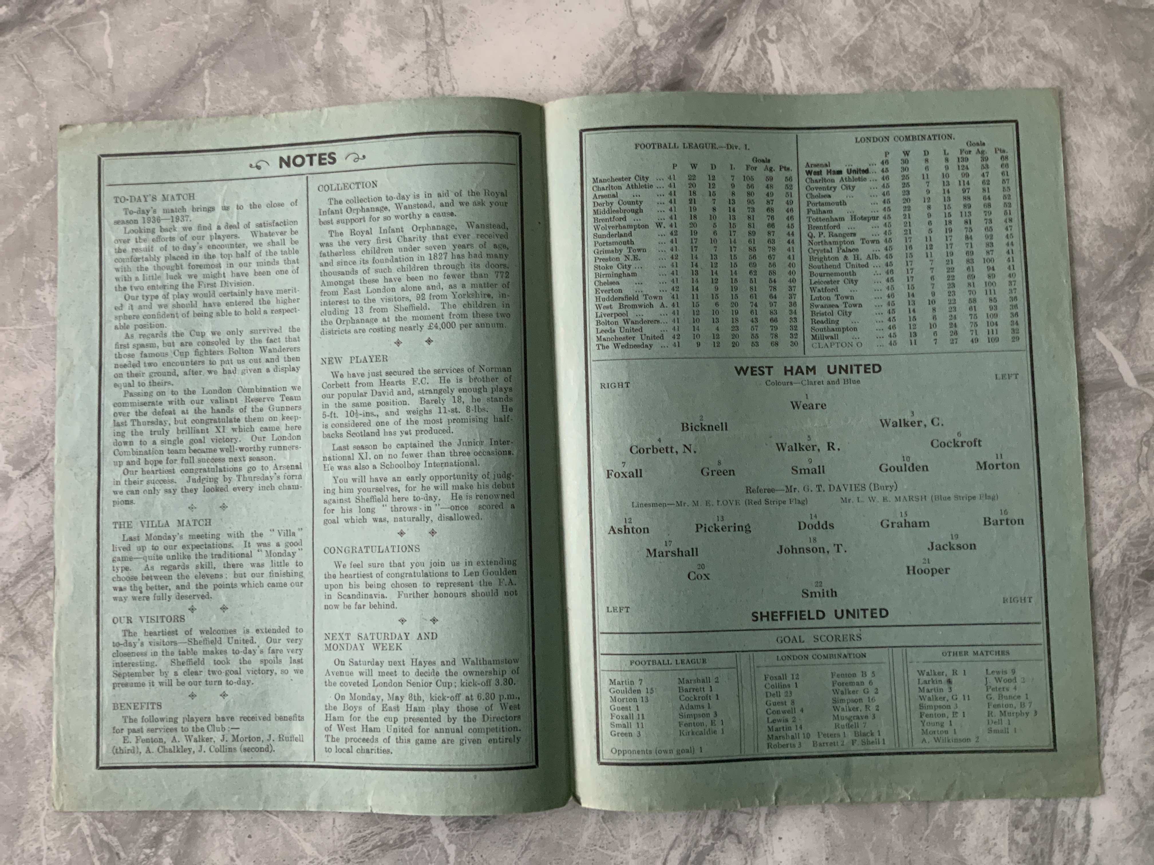 36/37 West Ham v Sheffield United Football Programme: Division Two match in very good condition with no team changes.