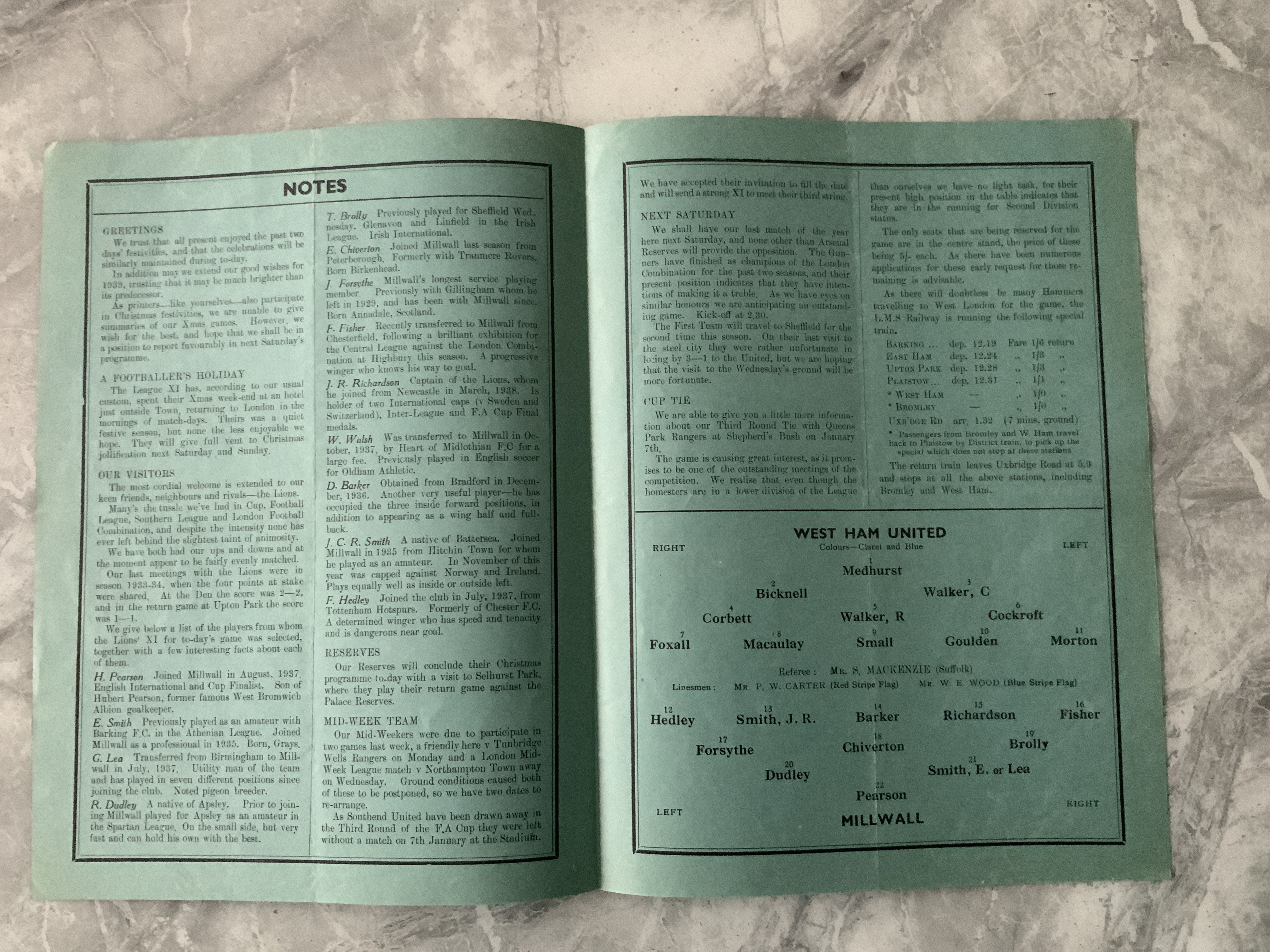 38/39 West Ham v Millwall Football Programme: Division Two match in very good condition with no team changes.