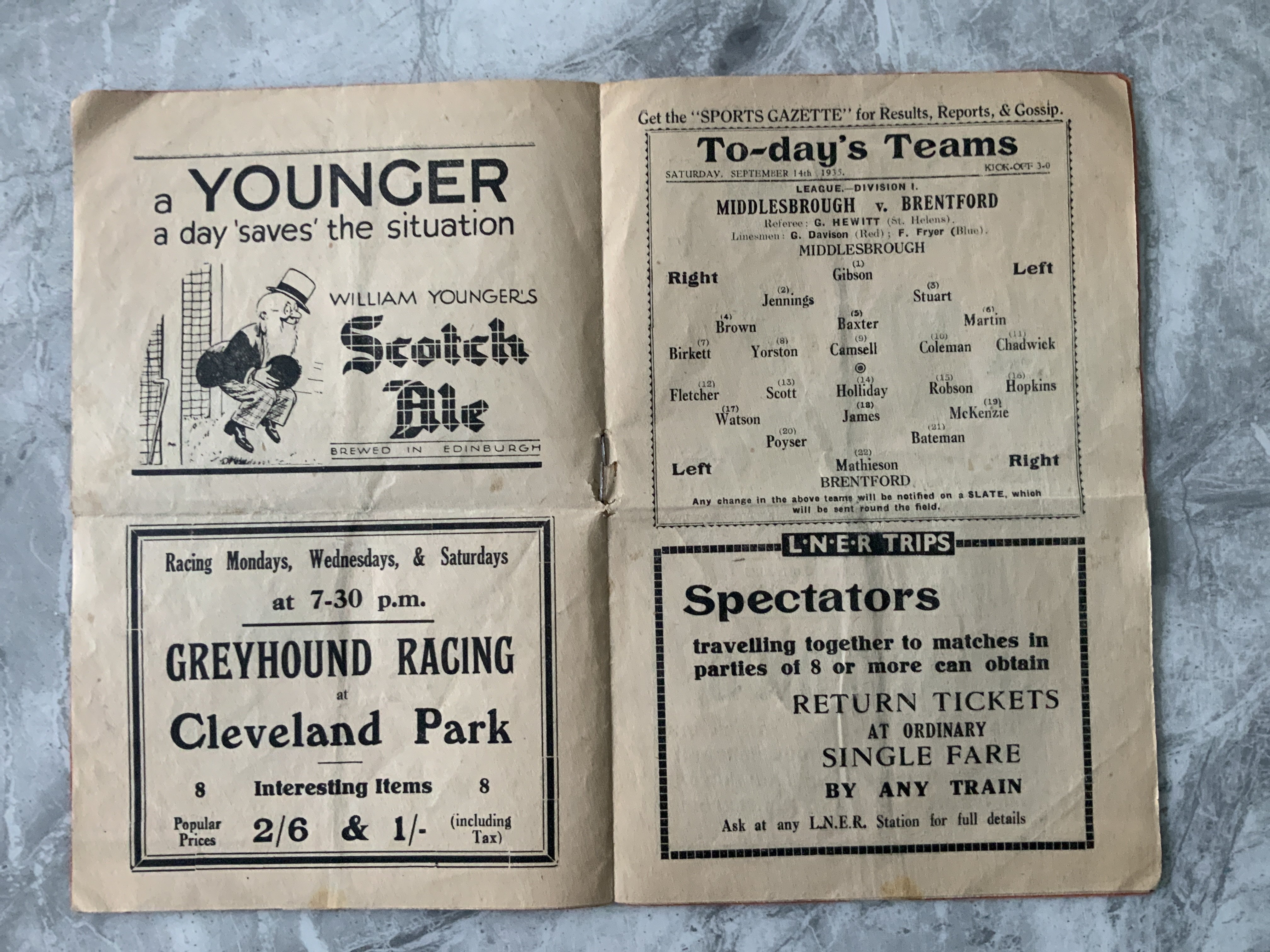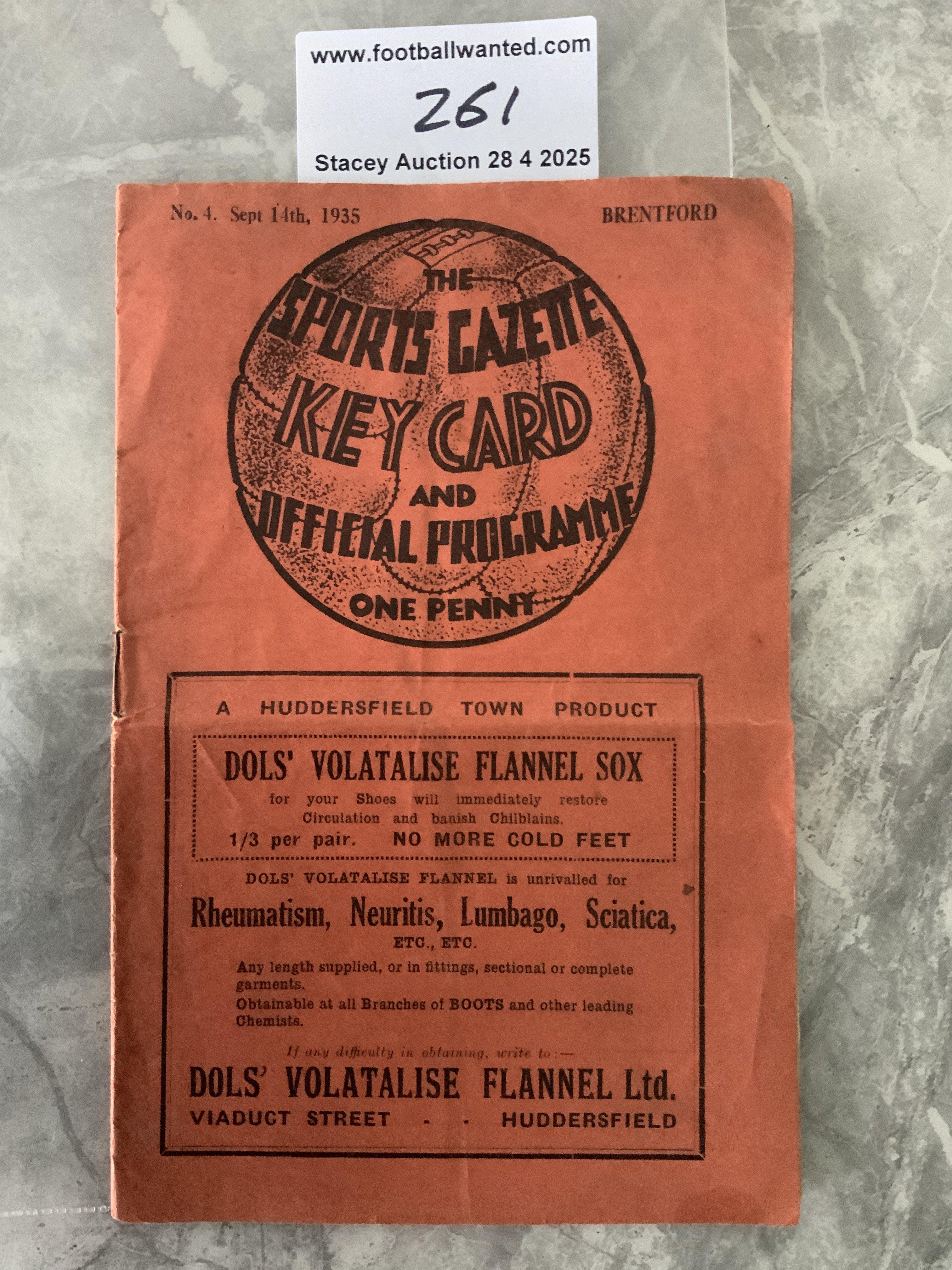 35/36 Middlesbrough v Brentford Football Programme: Good condition Division One programme with no team changes. Fold.