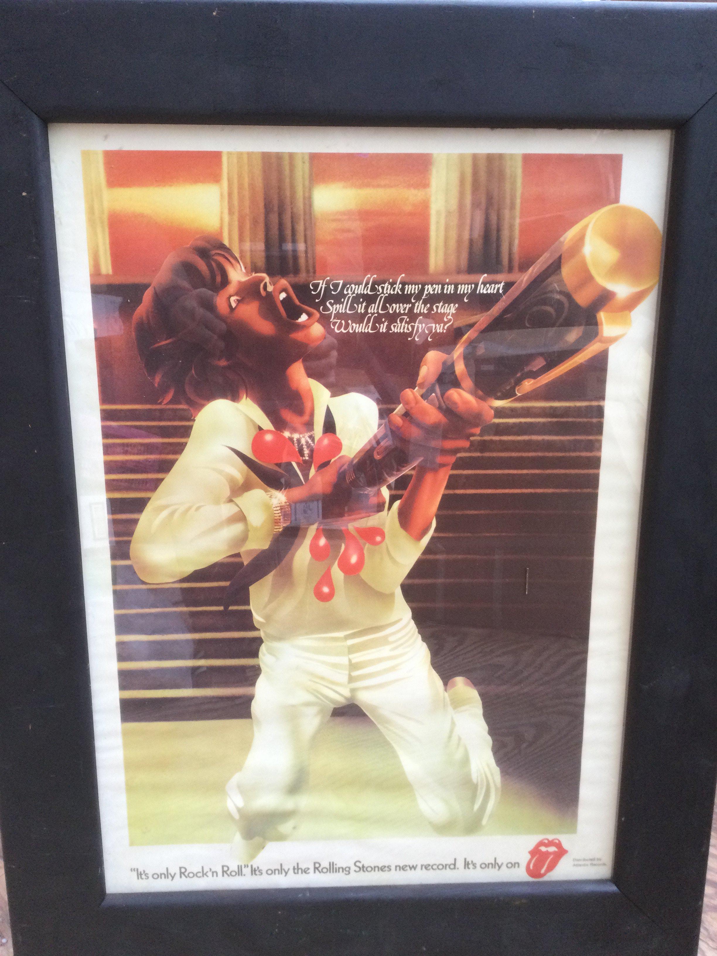 A framed and glazed Rolling Stones 'It's Only Rock n Roll' promotional poster, approx 69cm x 49cm excluding frame.