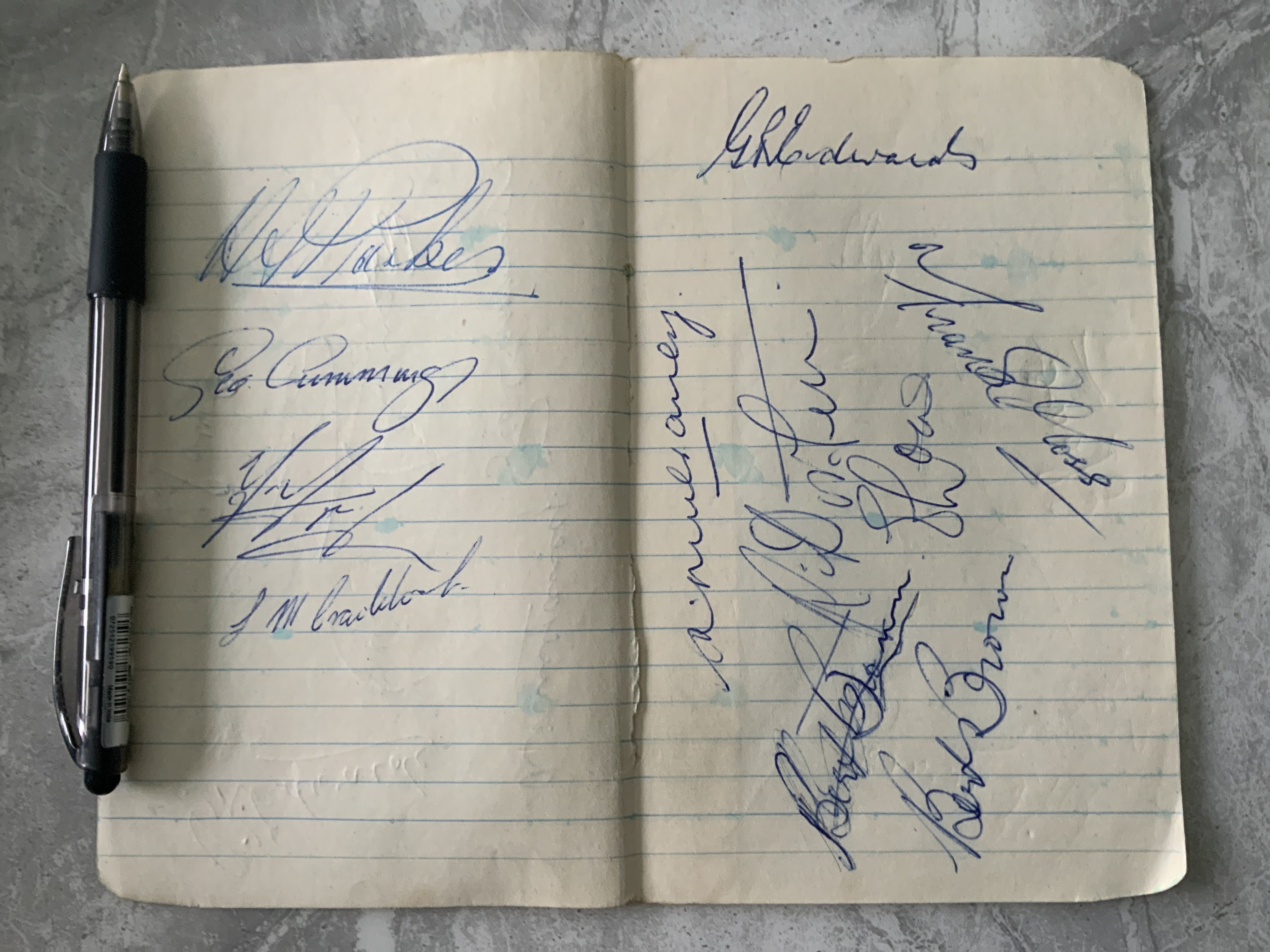 47/48 Aston Villa Football Autographs: Exercise book pages signed by 20 of the 1st division team including Goffin Lowe Cummings Edwards and Moss. Additionally there are 7 players from we believe the season after on a page. There are a few duplicates and pages pictured online with a pen are back to back. (27)