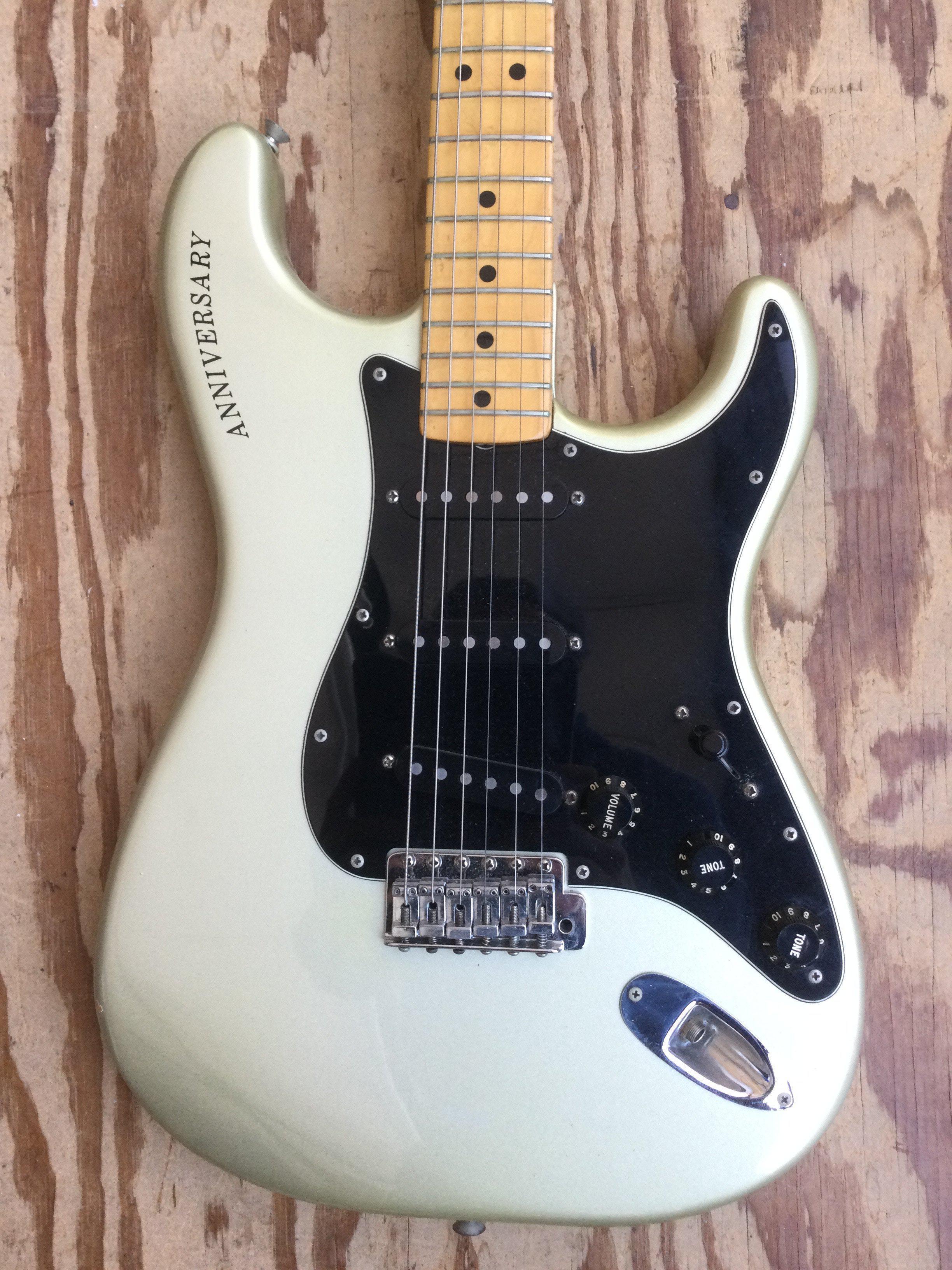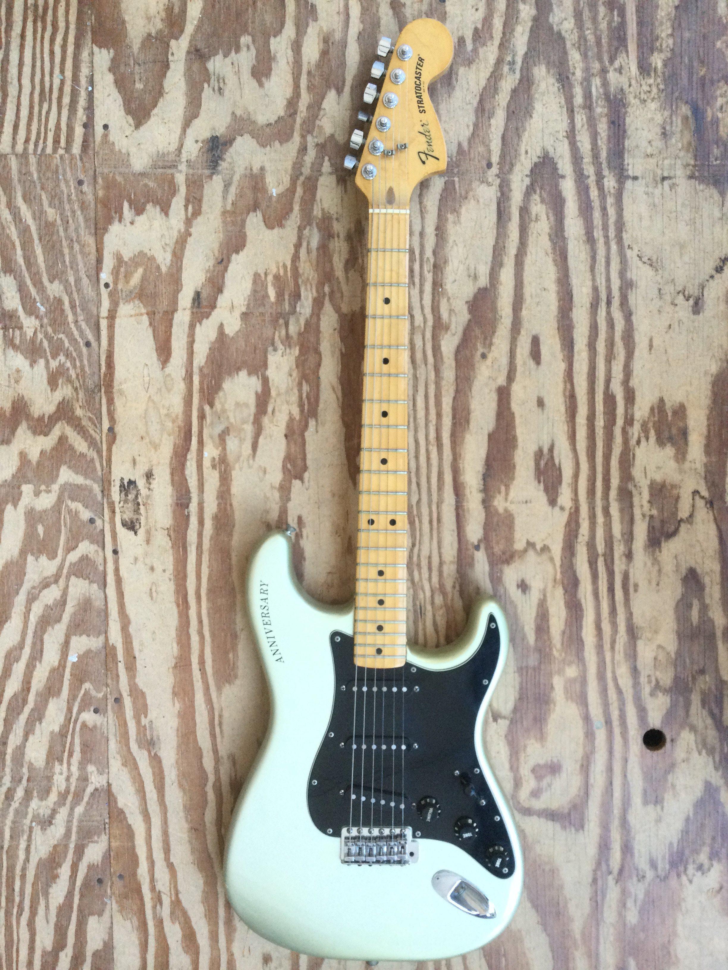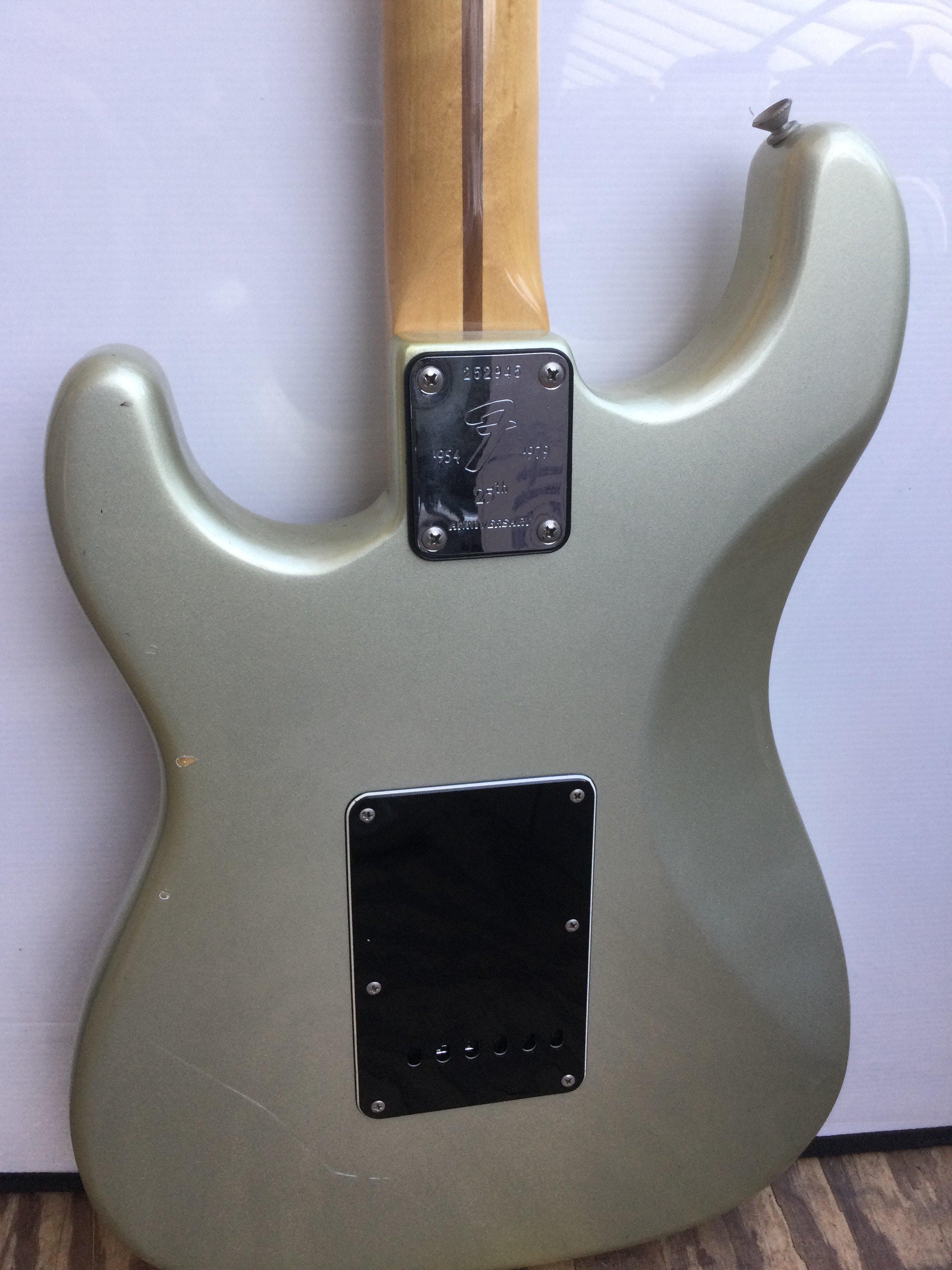 A 1979 25th anniversary Fender Stratocaster electric guitar with original case. Serial number 252945. The guitar was purchased from new by Paul Williams, former early member of Mud.