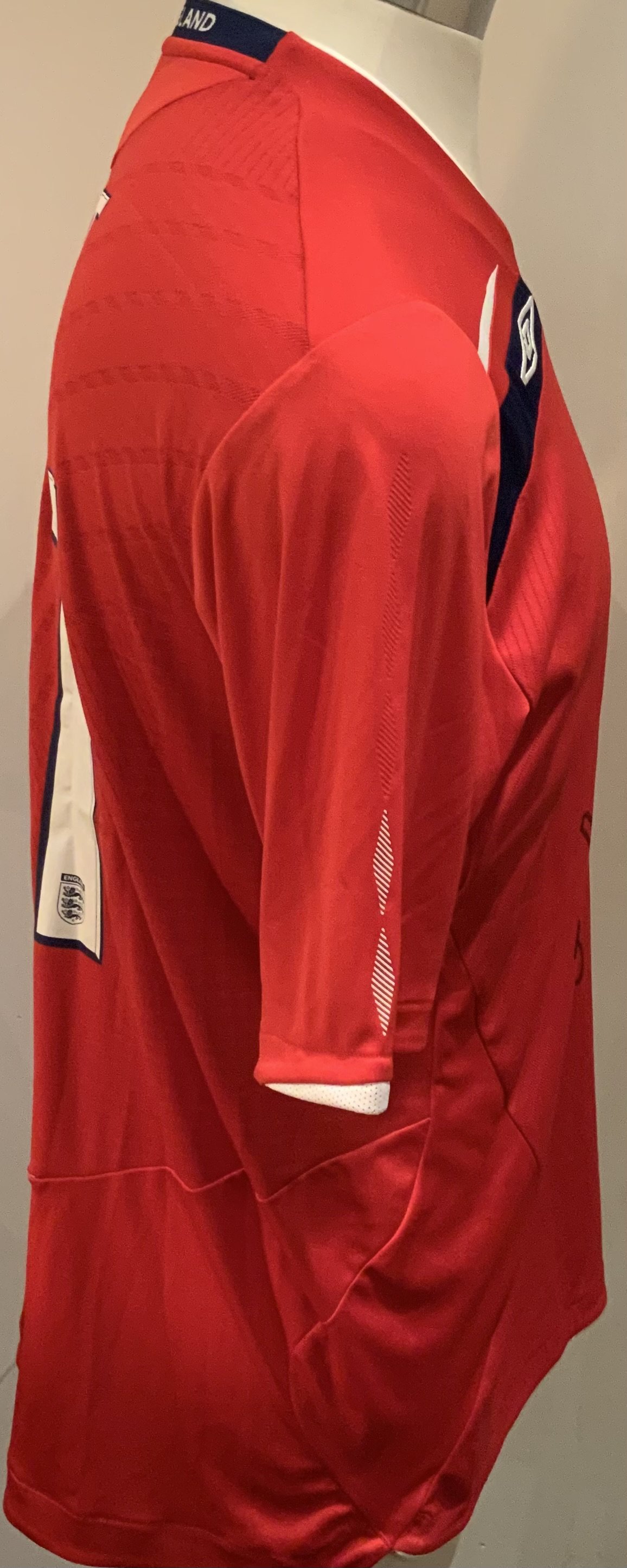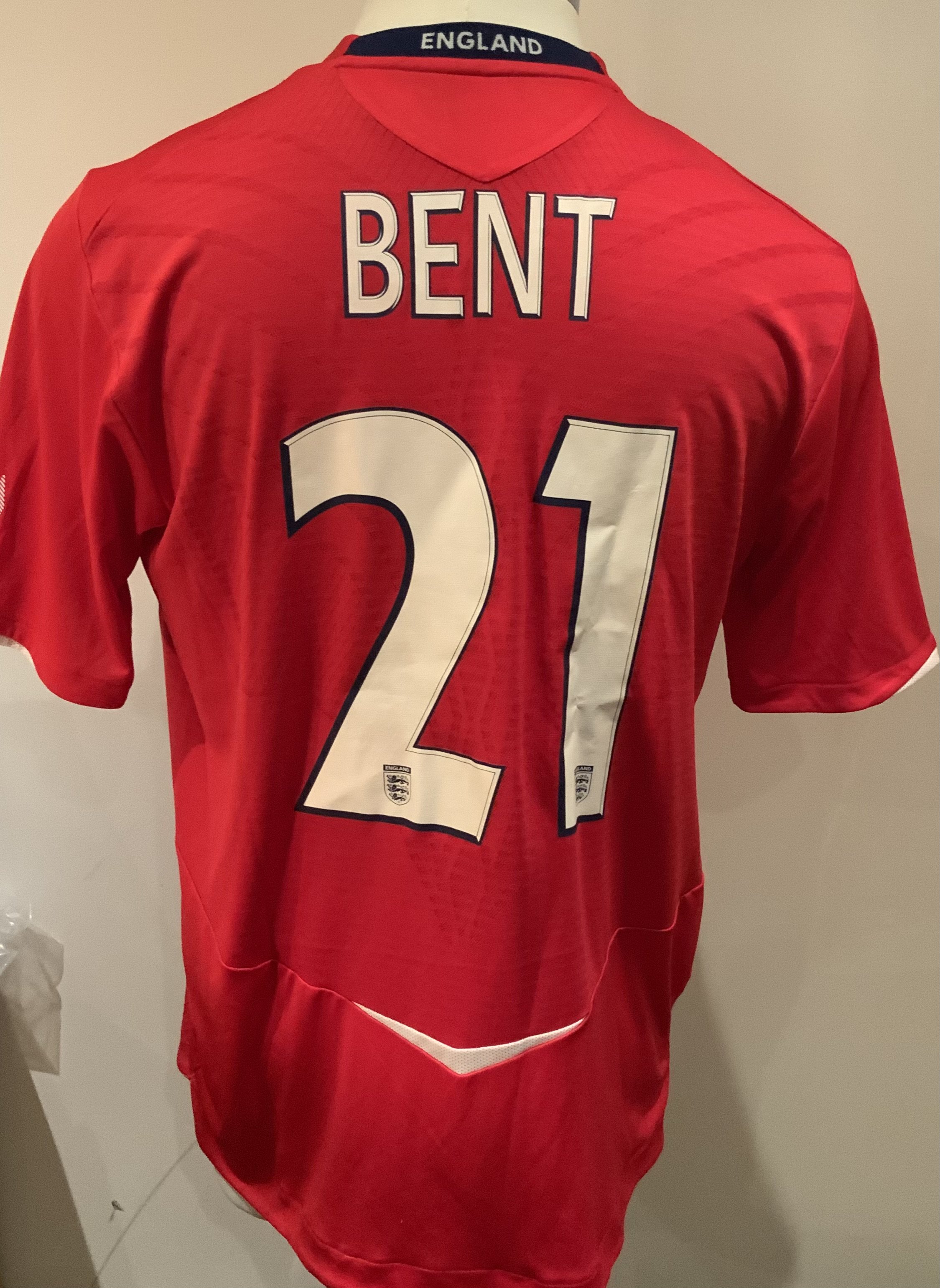 England 2008 Match Worn Football Shirt: Red short sleeve shirt with Bent 21 to rear. Worn in the match v Germany on 19 11 2008. Played in the second half. Signed with dedication by the player.