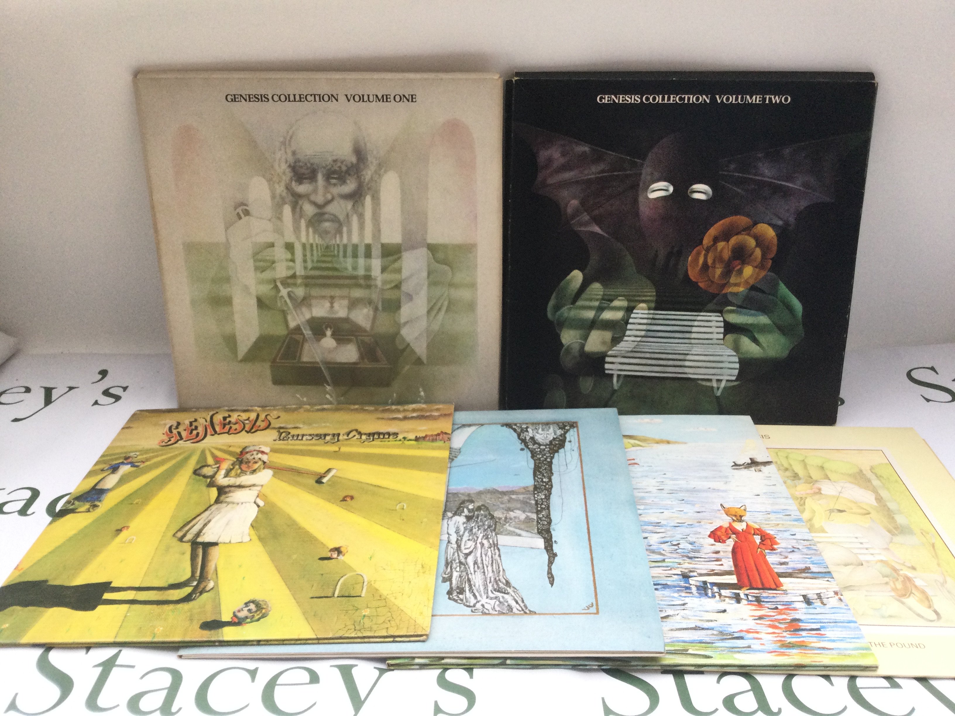 Genesis Collection Volumes one and two comprising four LPs including 'Trespass', 'Foxtrot', 'Nursery Cryme' and 'Selling England By The Pound'. Includes both posters.