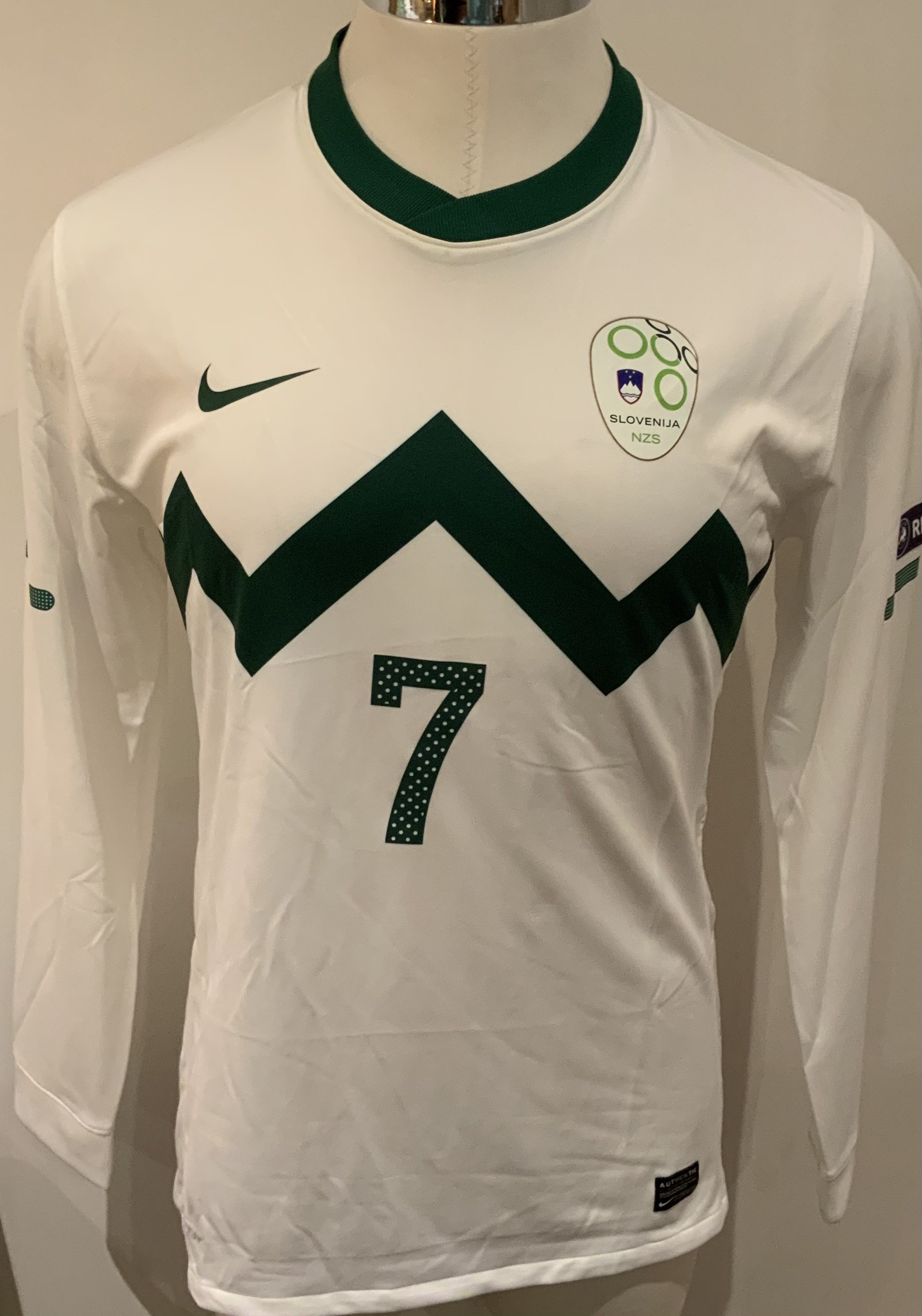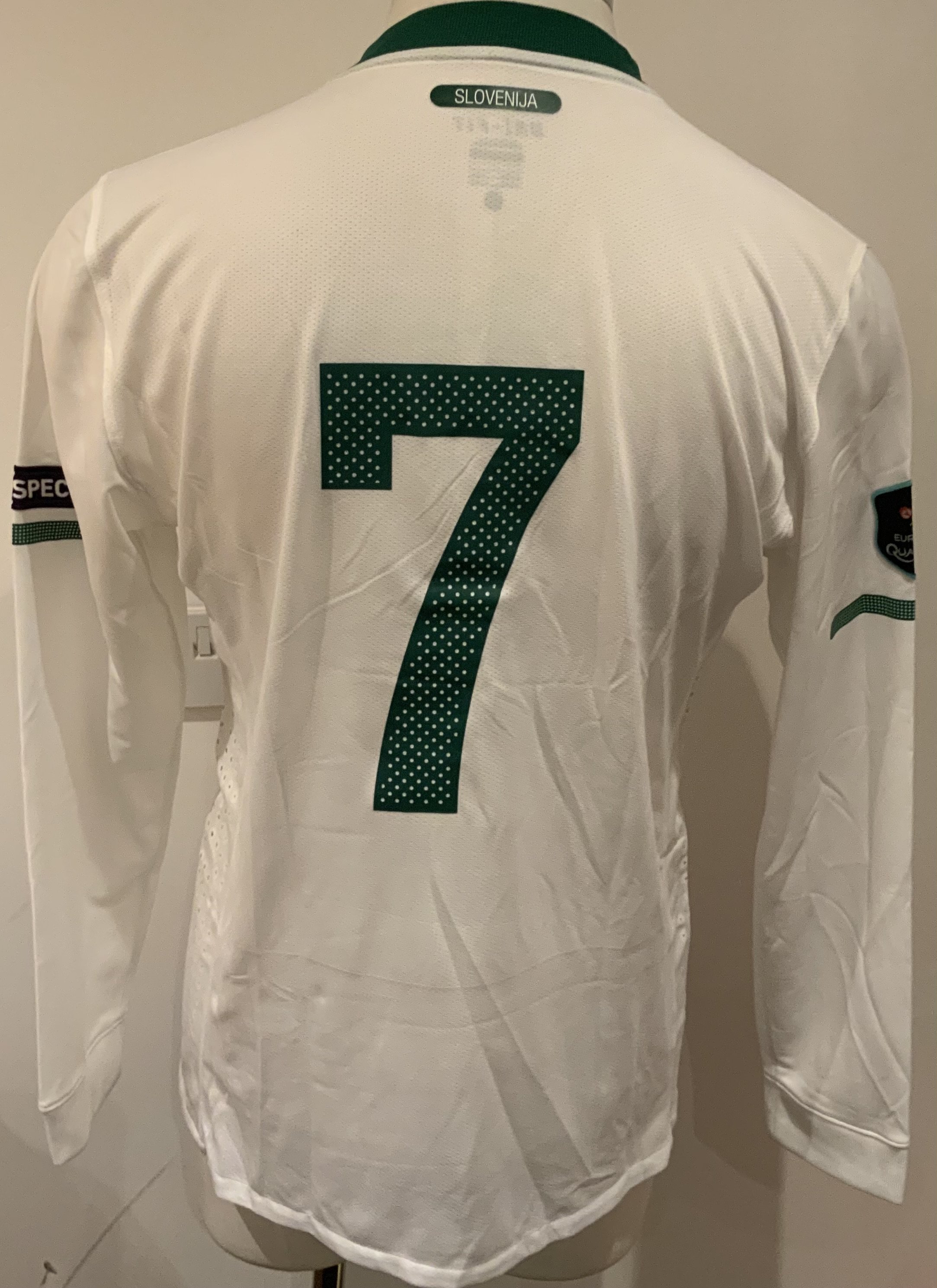2011 Slovenia Match Prepared Football Shirt: White long sleeve shirt with number 7 to rear. Issued for the Euro qualifier v Northern Ireland on 29 March 2011. Player was not in the lineup.