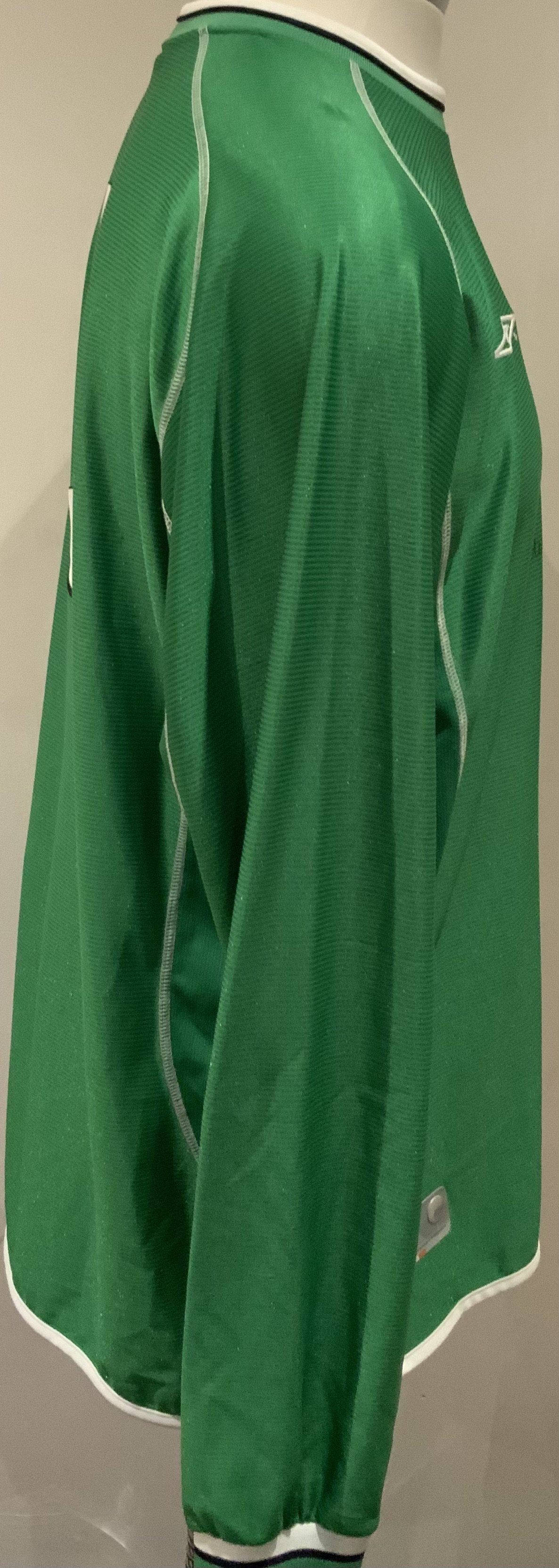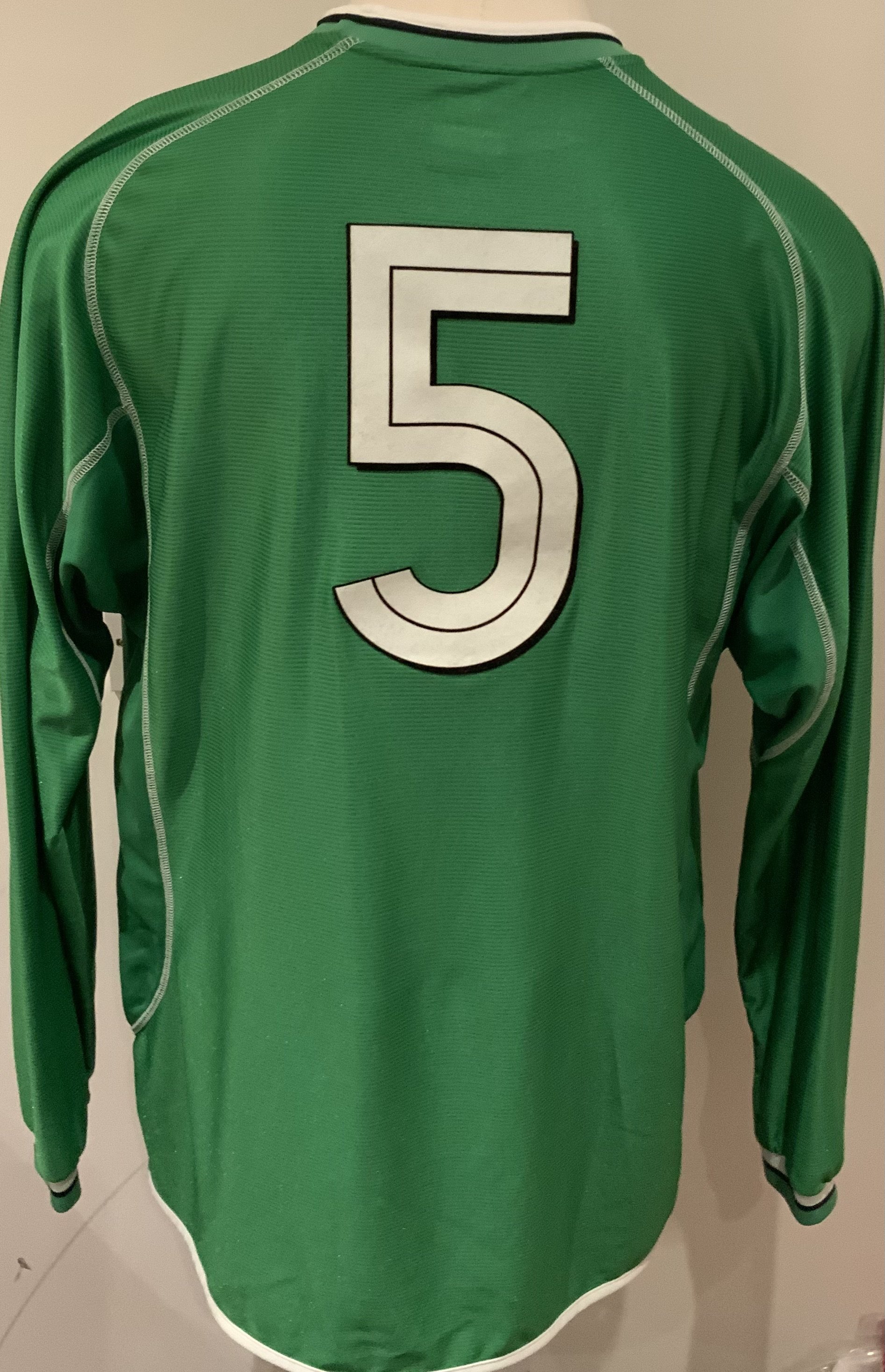 Republic of Ireland Match Issued Football Shirt: Green long sleeve shirt with number 5 to rear. Issued to Gary Breen v Scotland on 12 February 2003. Match details embroidered to front. Shirt is signed by the player with dedication.