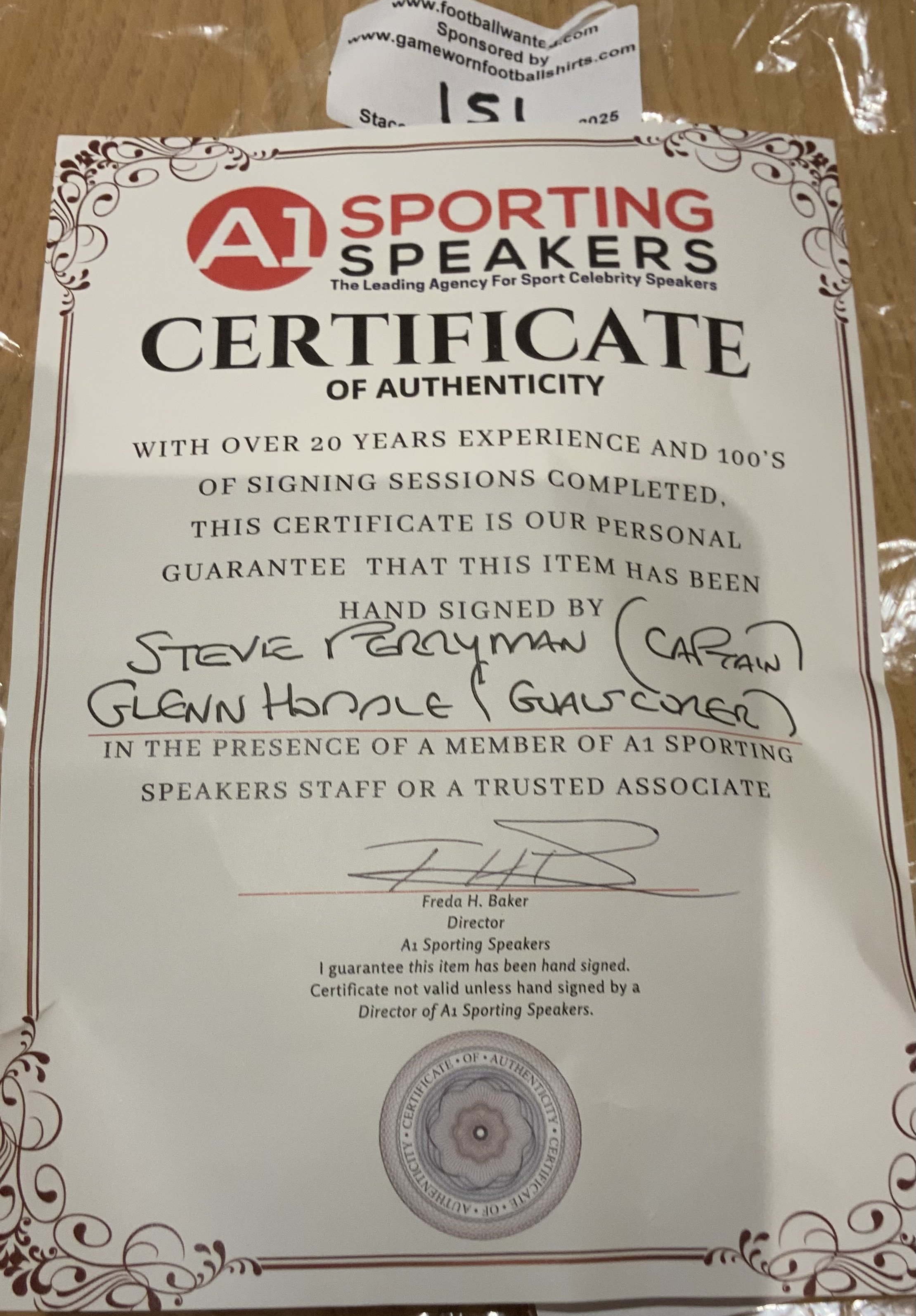 Tottenham 1982 FA Cup Final Signed Replica Shirt: Yellow short sleeve shirt signed to front by Hoddle and Perryman. COA from reputable source.