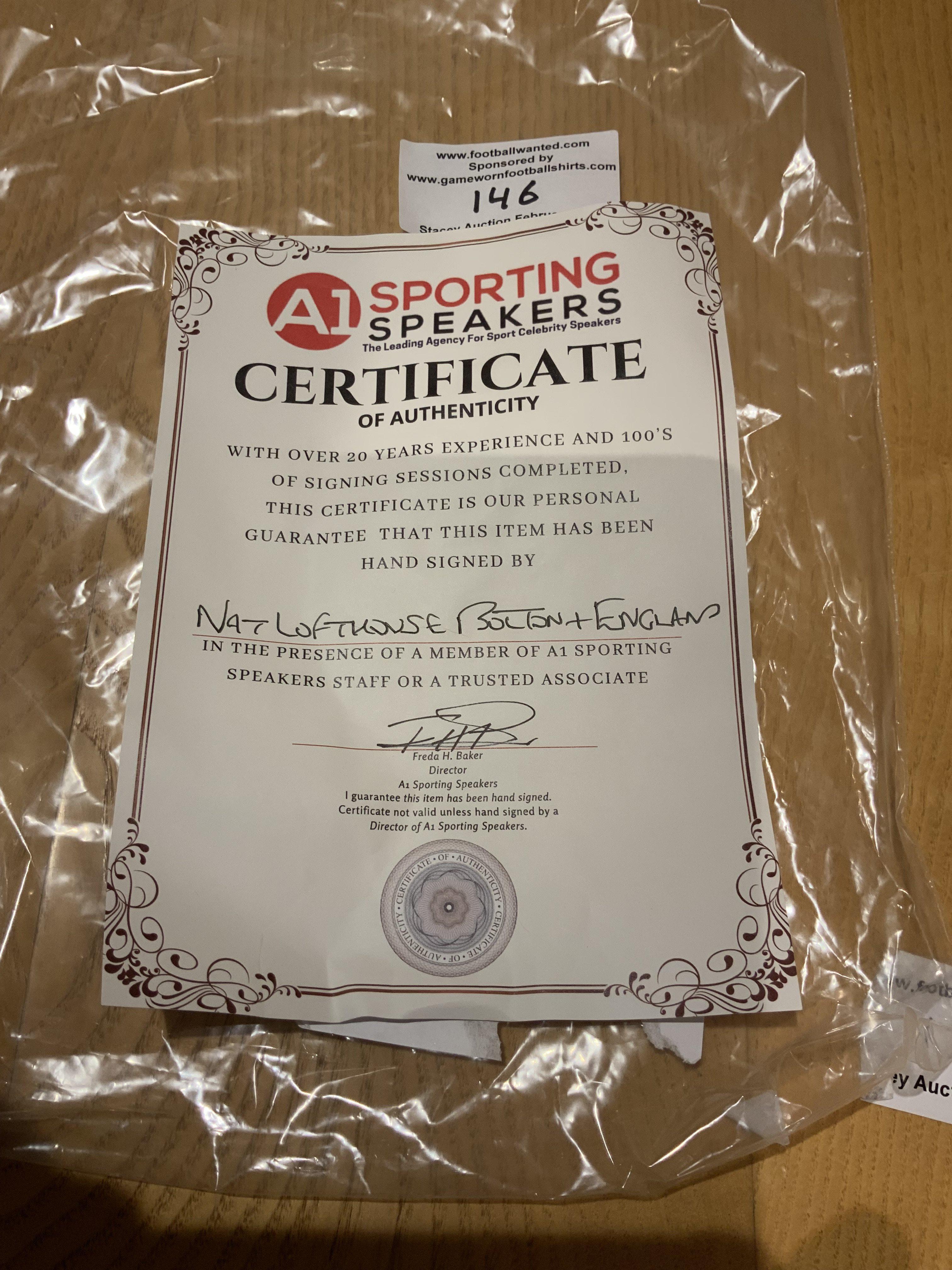 Bolton Wanderers 1958 FA Cup Final Signed Replica Shirt: White short sleeve shirt signed to front by Nat Lofthouse. COA from reputable source.