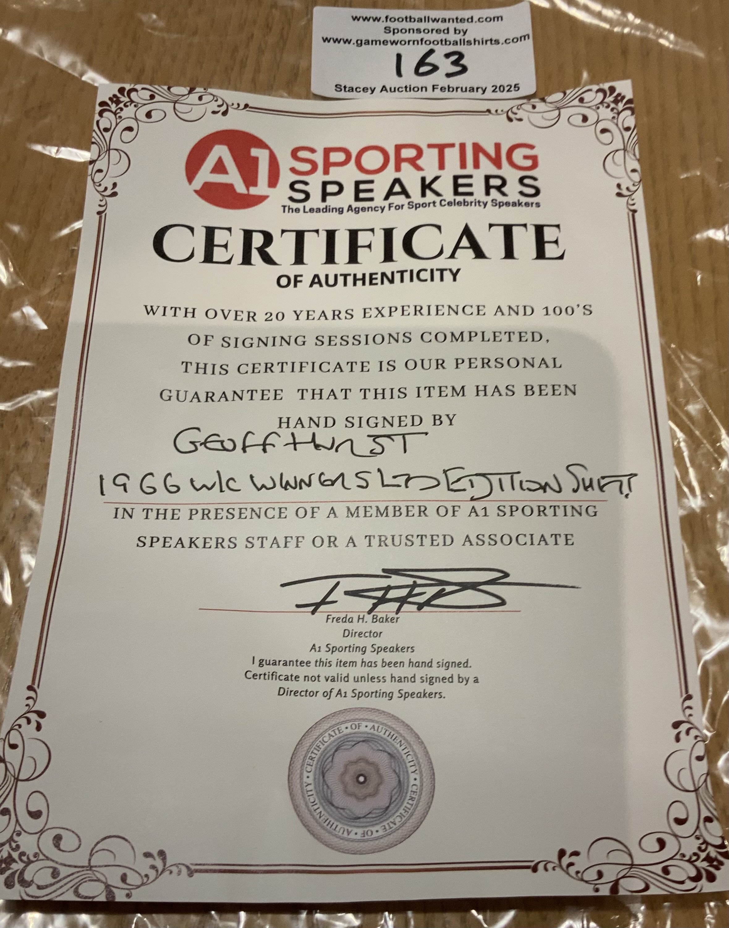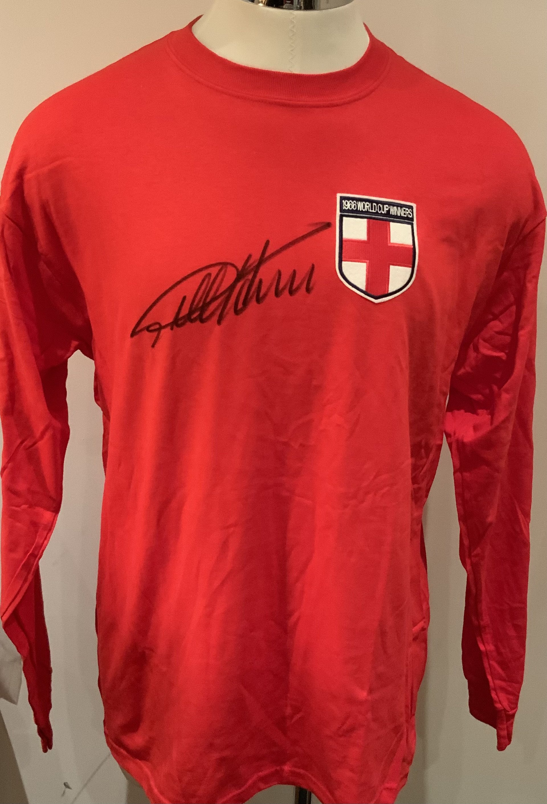 England 1966 World Cup Final Winners Signed Replica Shirt: Signed to front by Geoff Hurst. COA from reputable source.