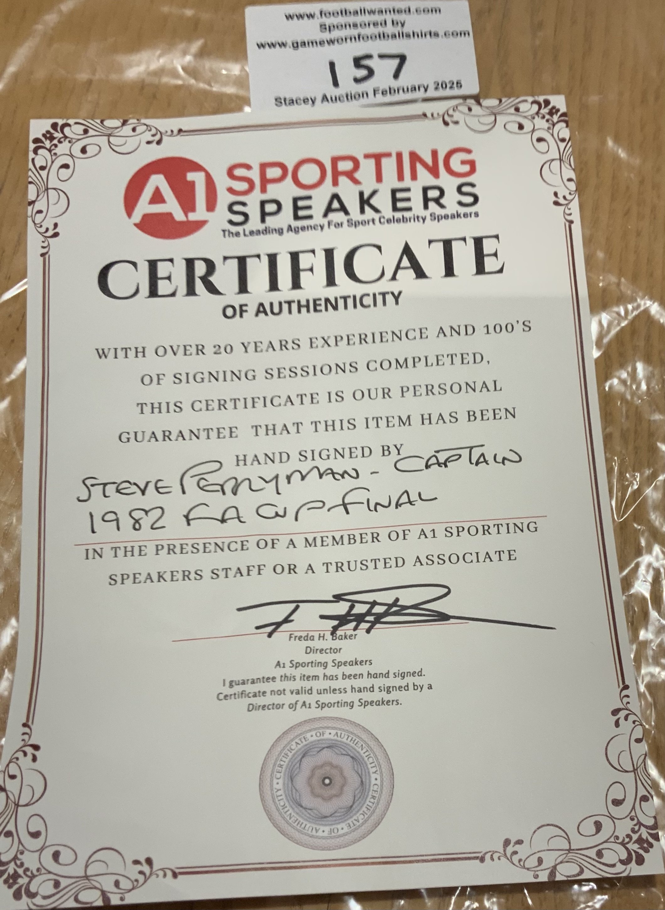 Tottenham 1982 FA Cup Final Signed Replica Shirt: Yellow short sleeve shirt signed to front by Steve Perryman. COA from reputable source.