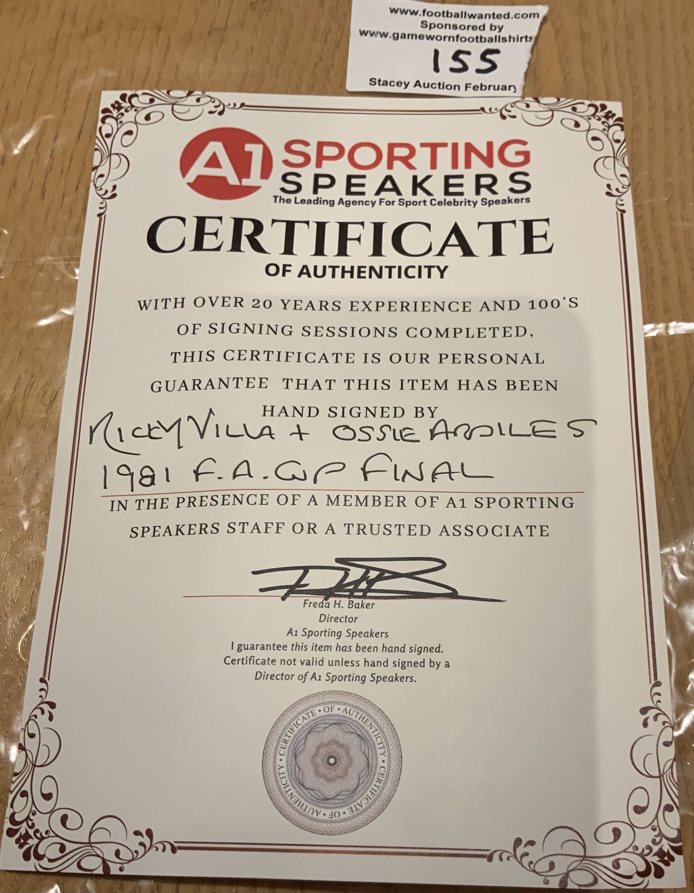 Tottenham 1981 FA Cup Final Signed Replica Shirt: Signed to front by Ardiles and Villa. COA from reputable source.