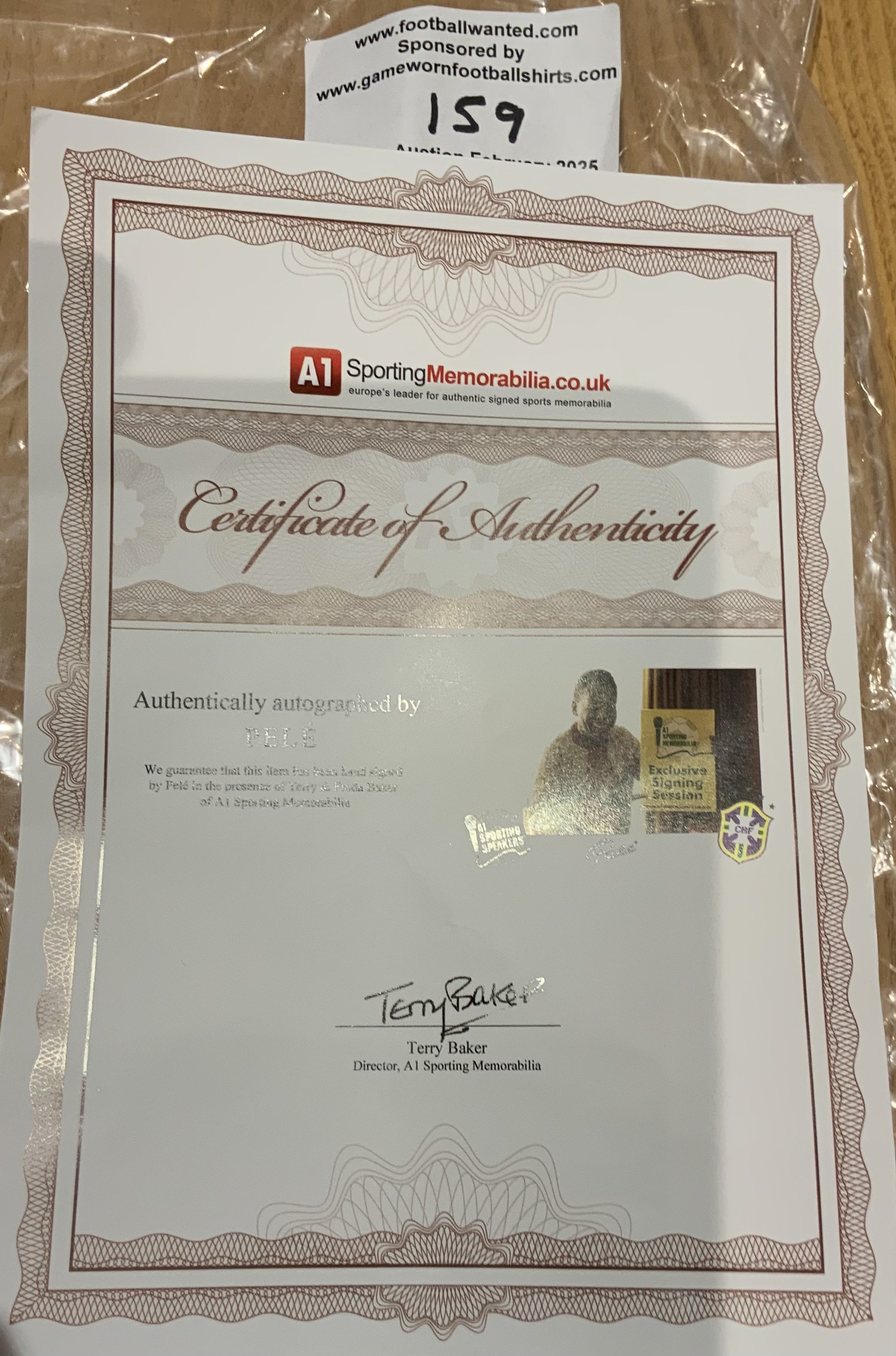 Pele Brazil 1970 World Cup Final Signed Replica Shirt: Yellow short sleeve shirt signed to front with full signature by Edson Pele. COA from reputable source.