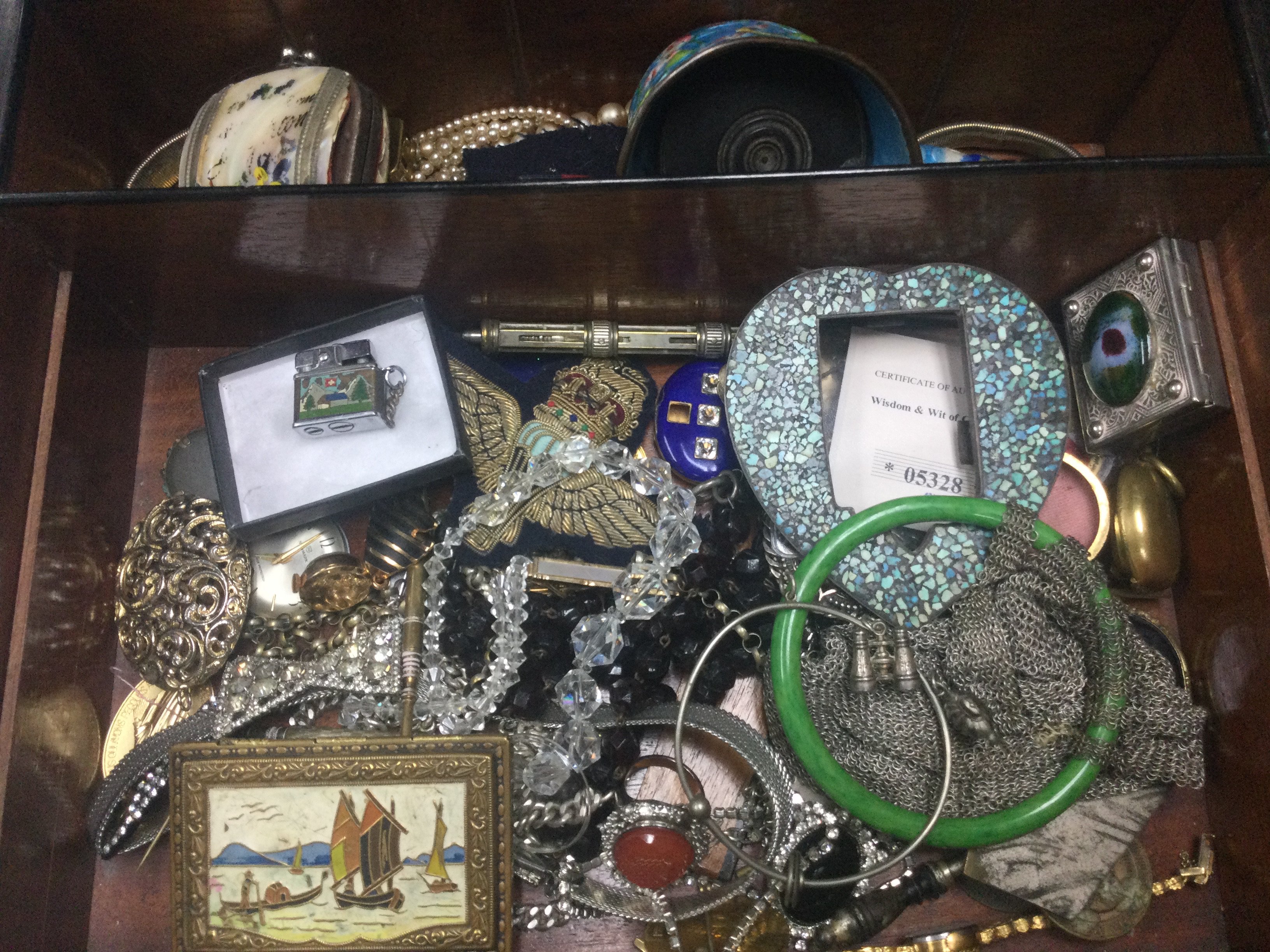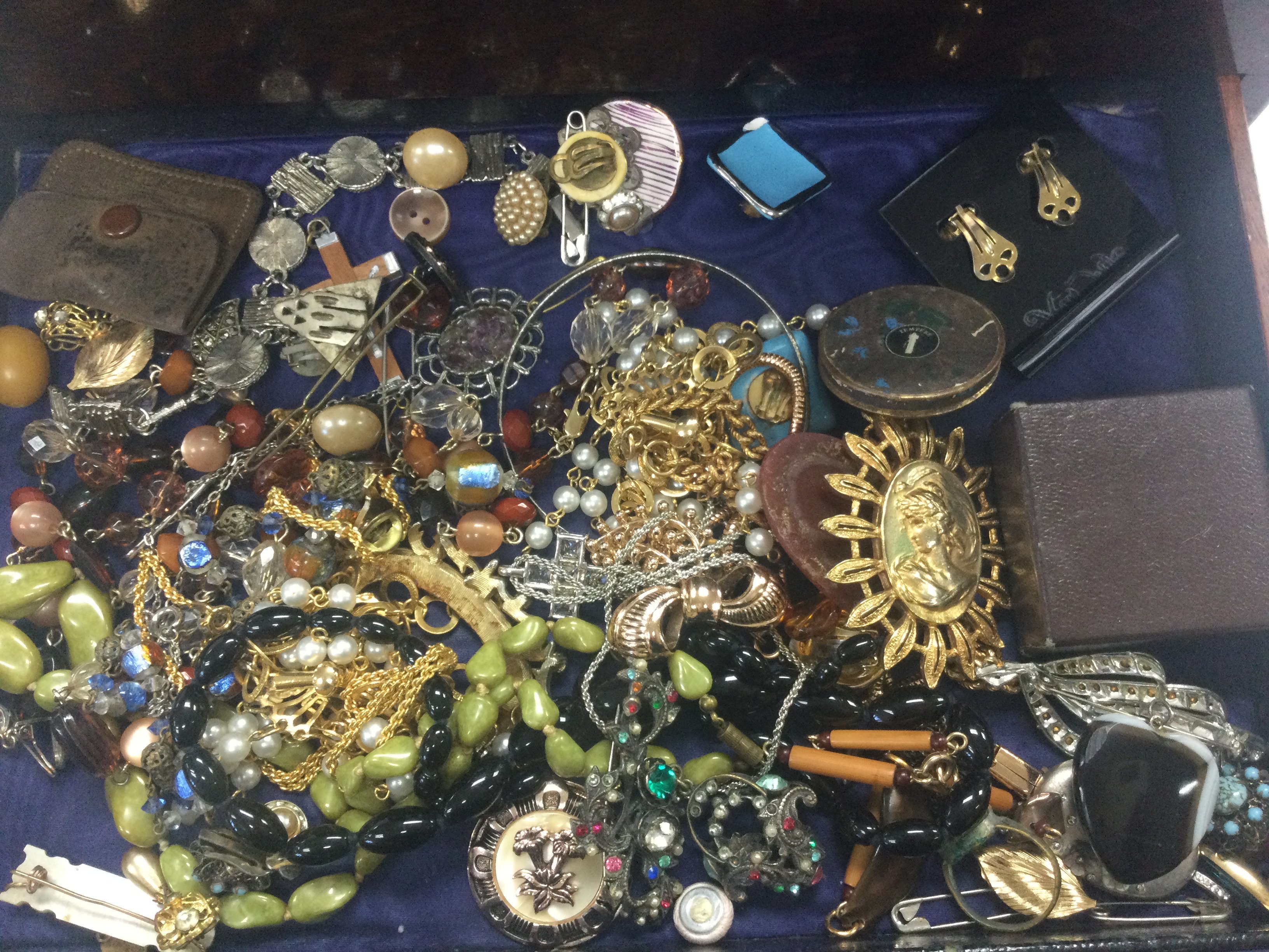 A box containing costume jewellery and interesting items