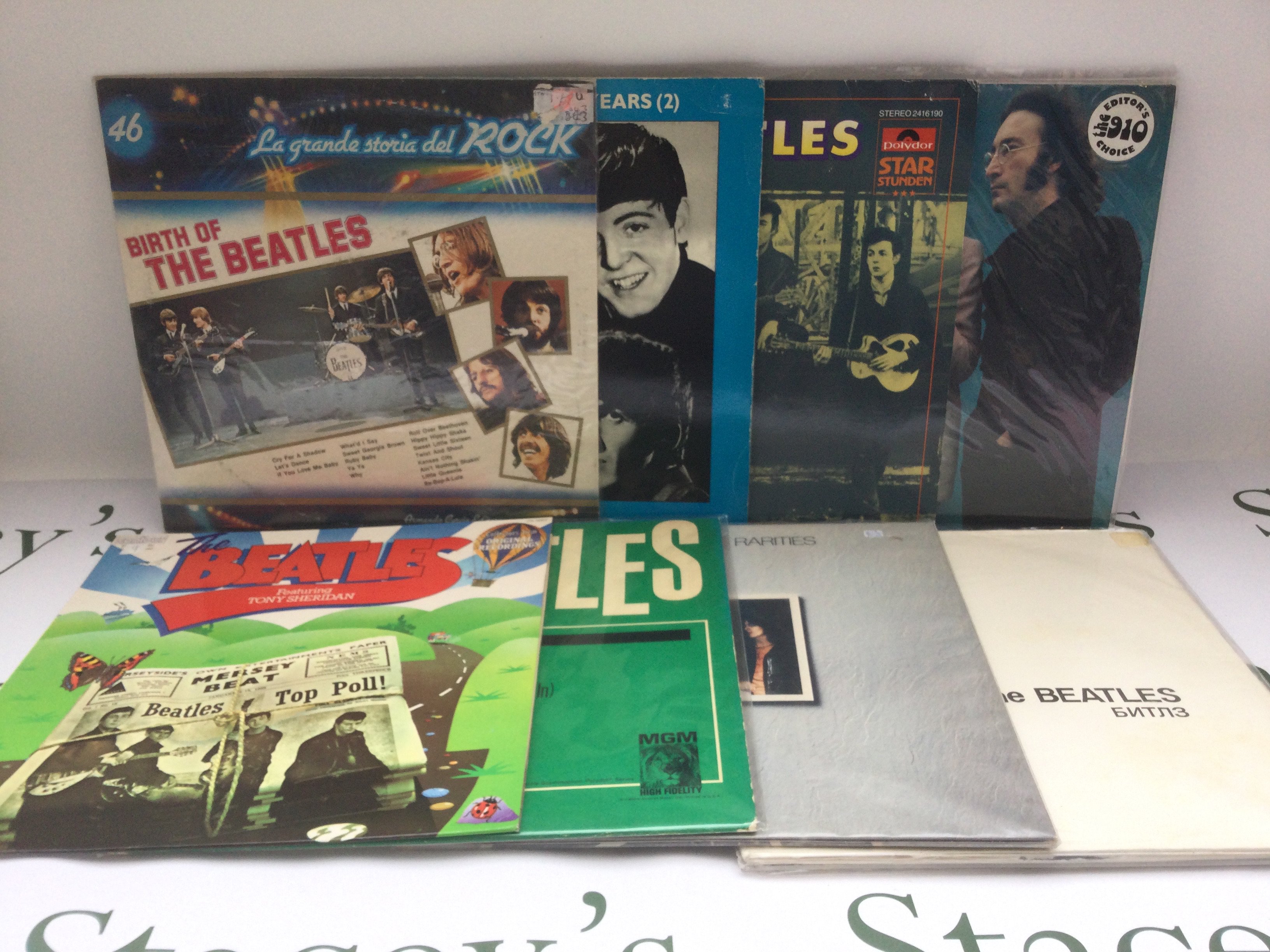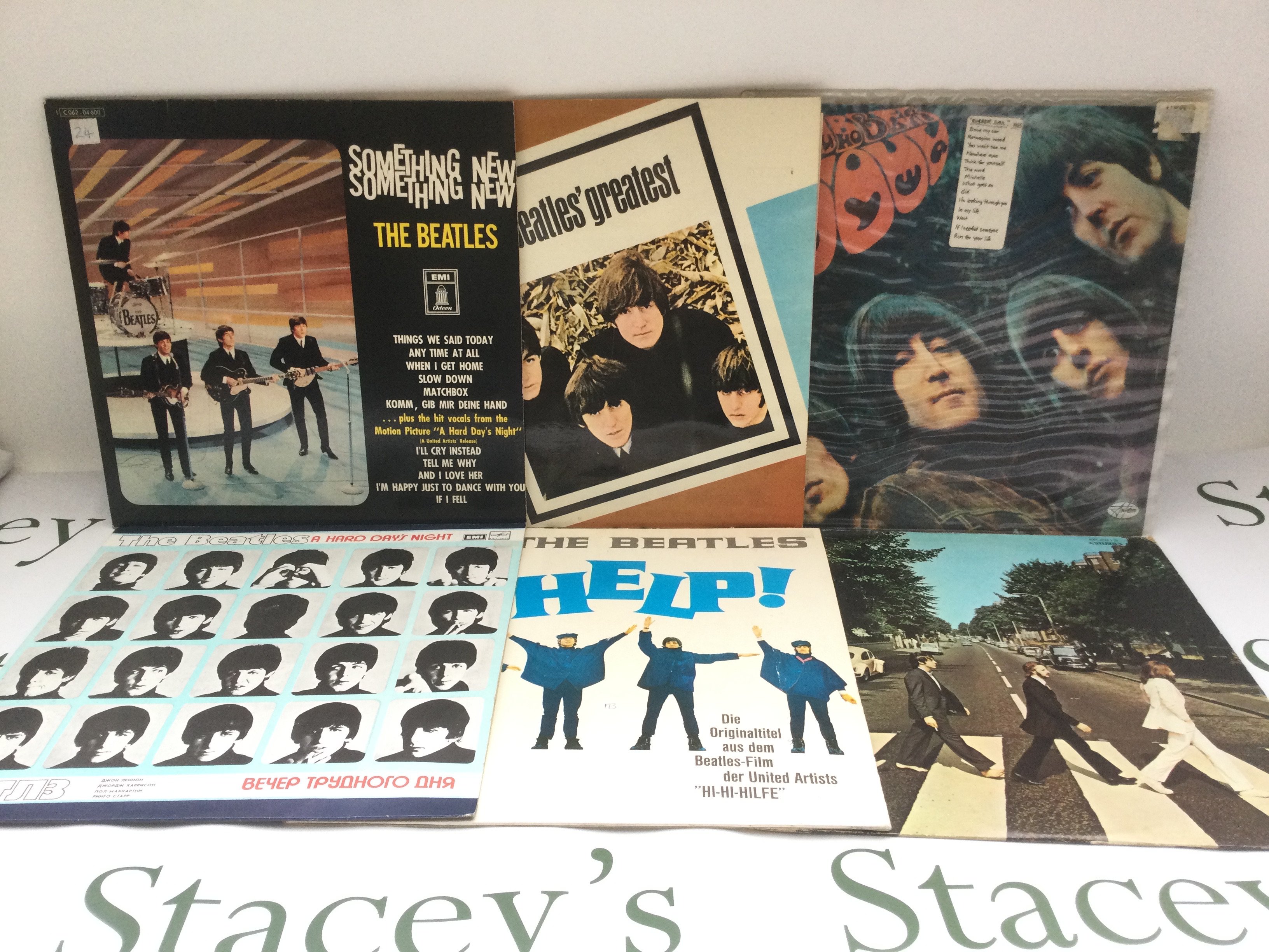 A record case of Beatles LPs comprising some foreign pressings including a Japanese red vinyl 'Abbey Road', a Russian 'A Hard Day's Night' and others.