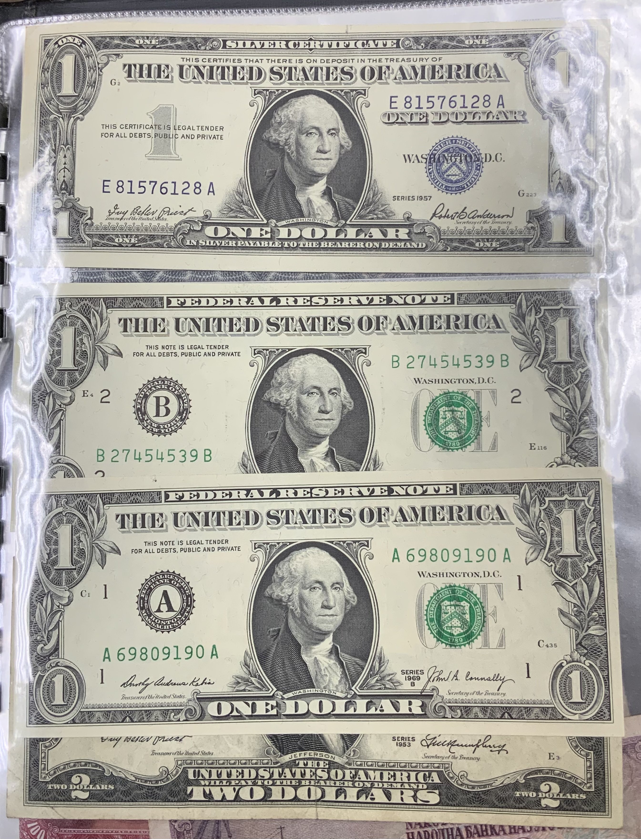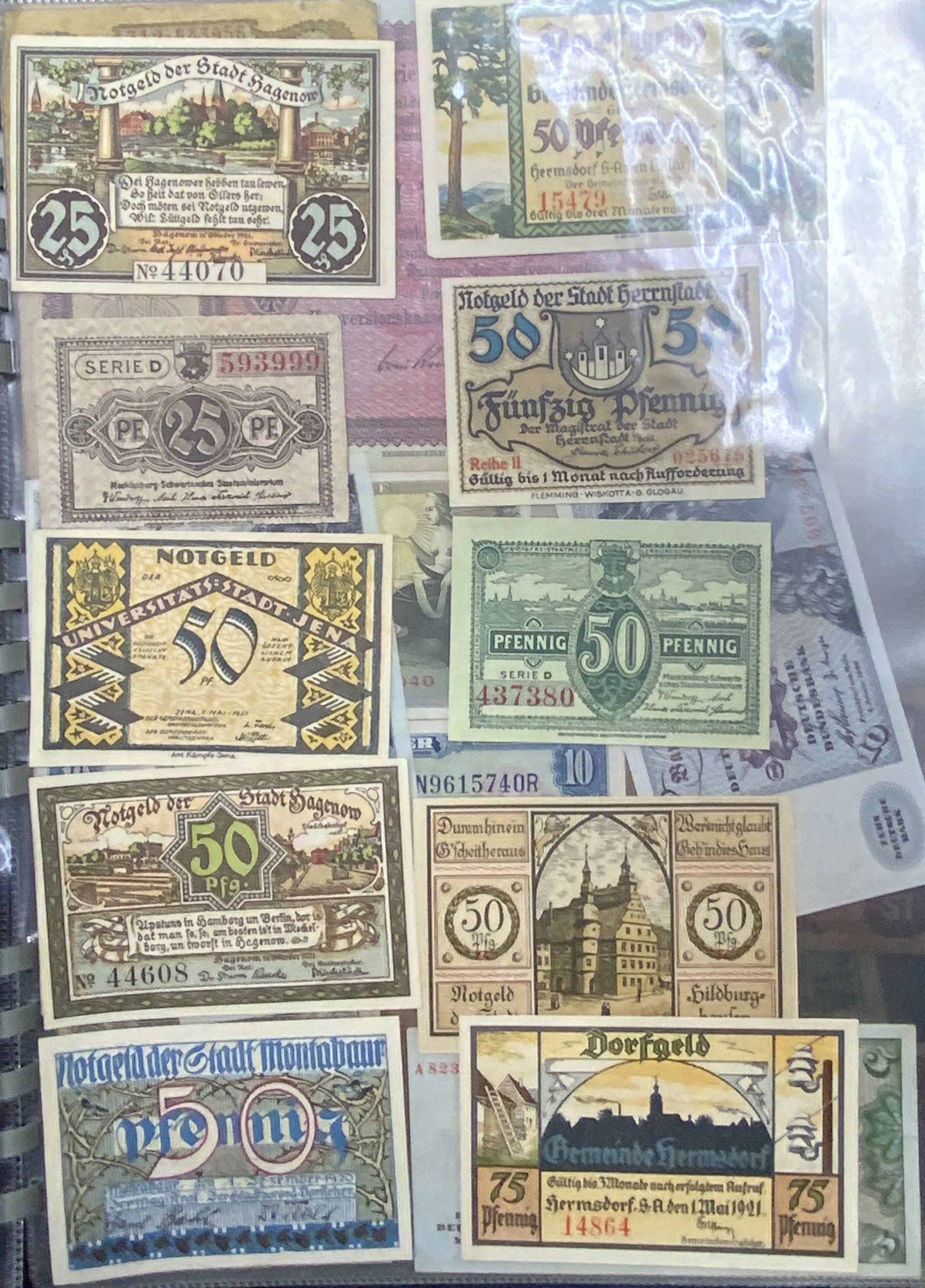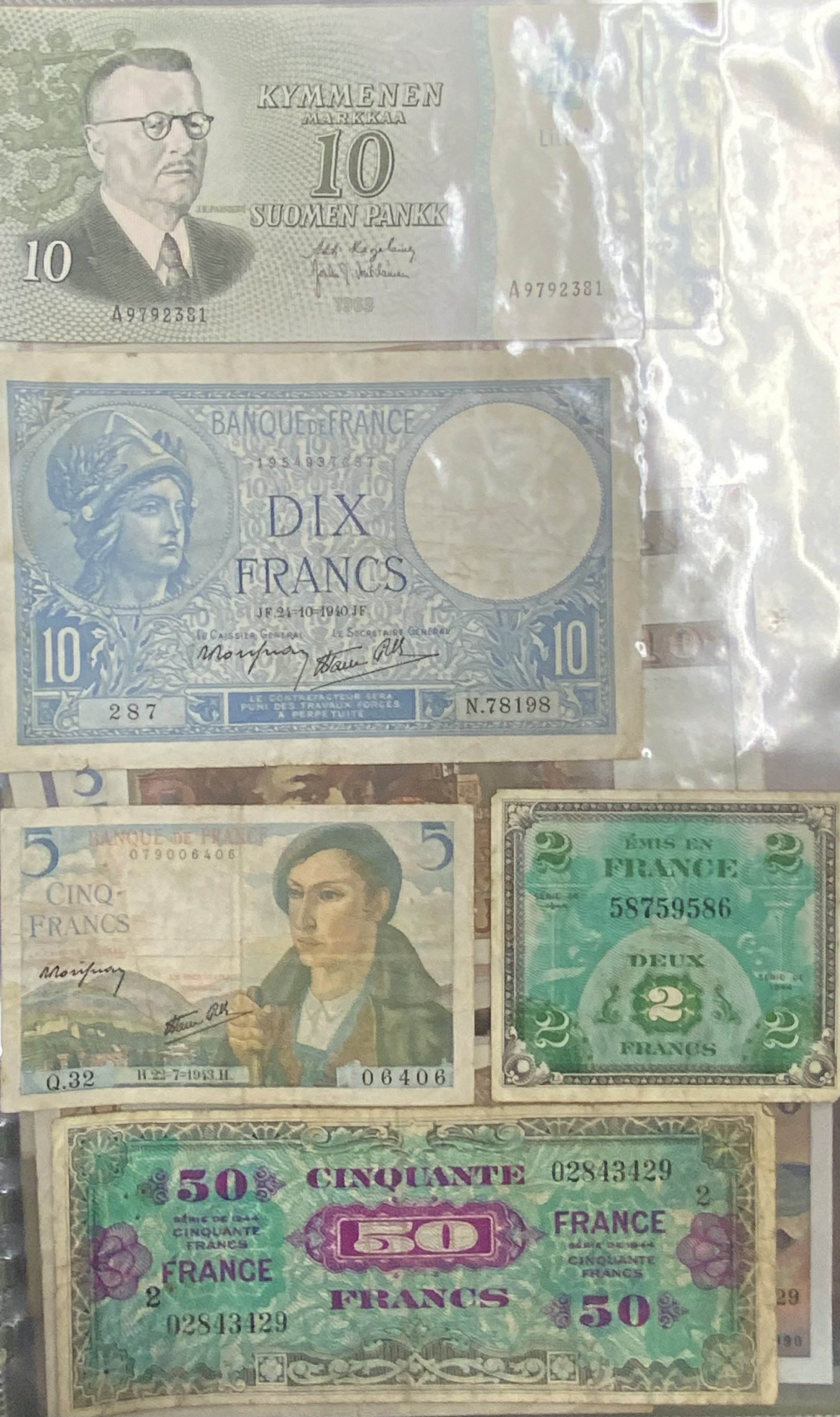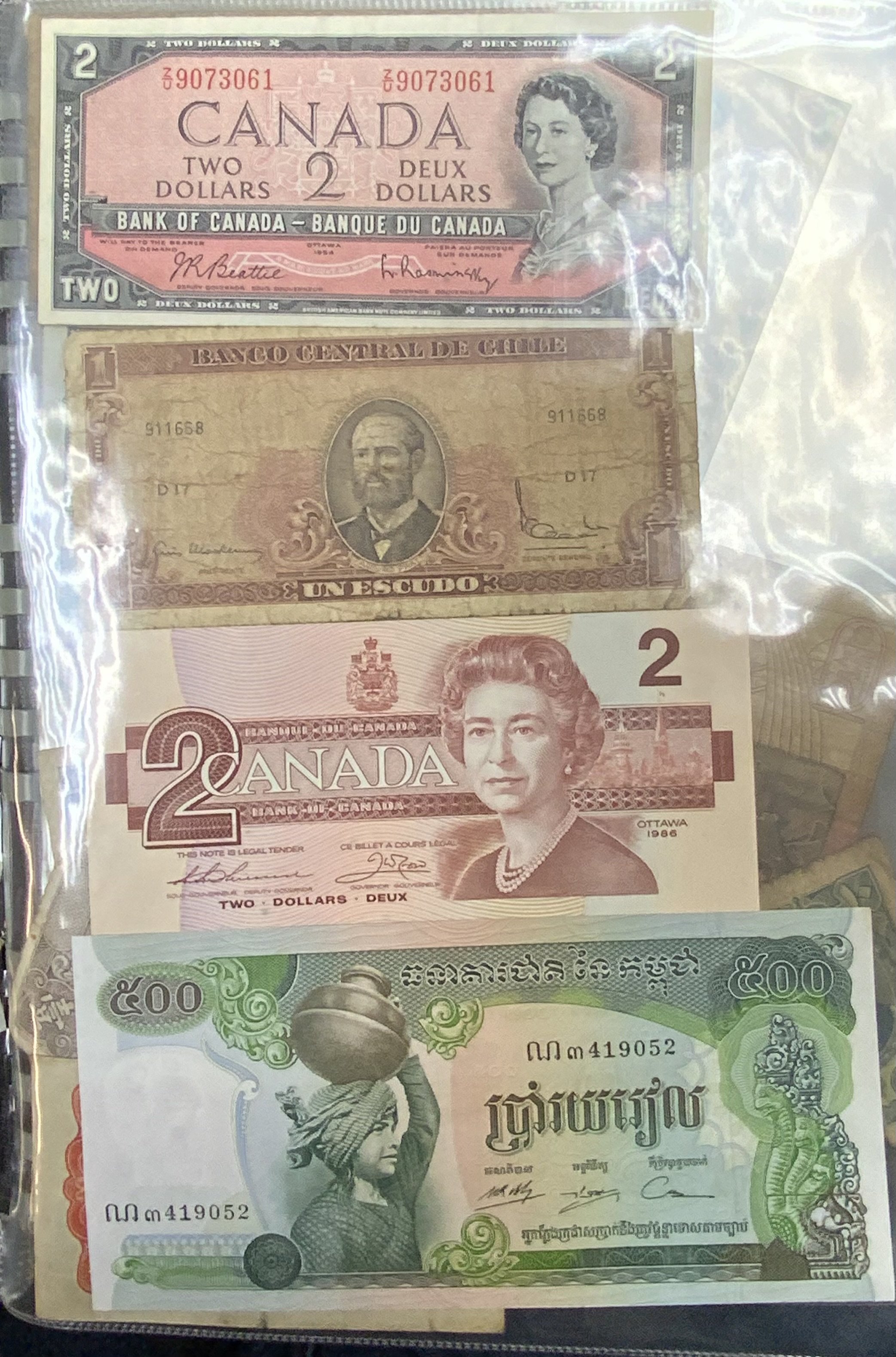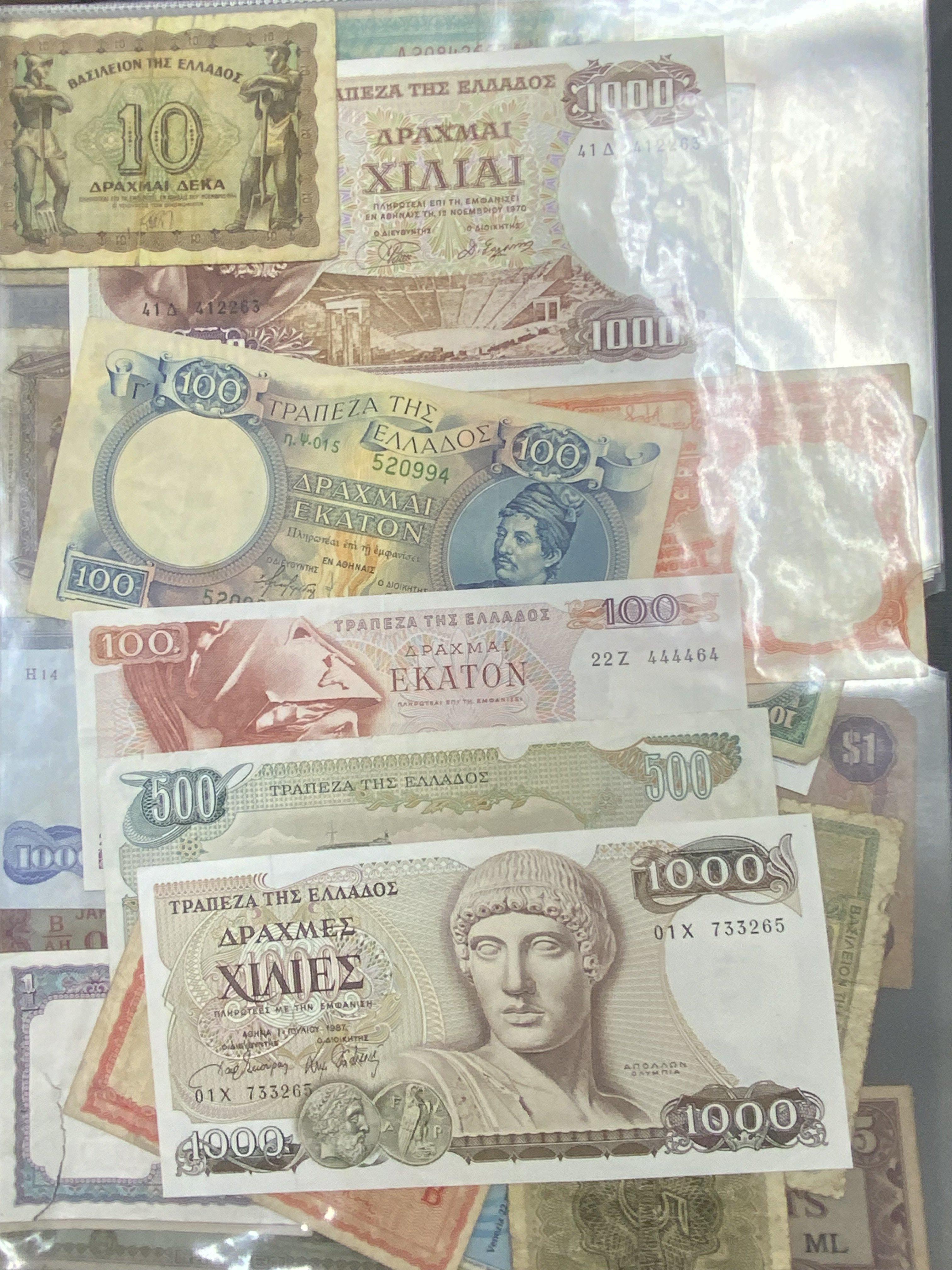 A large collection of world banknotes.