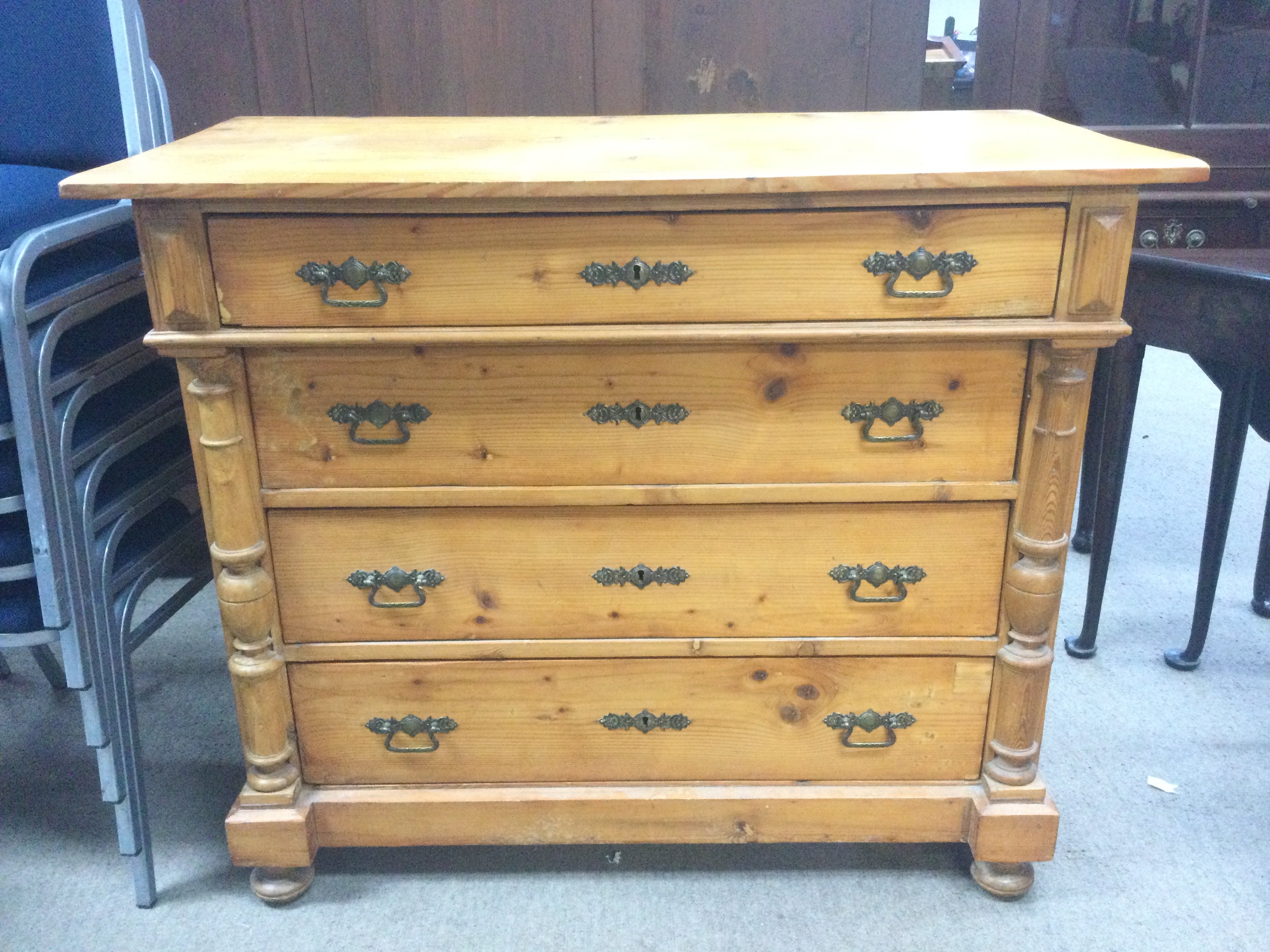 A pine chest of drawers dimensions 52x110x92cm