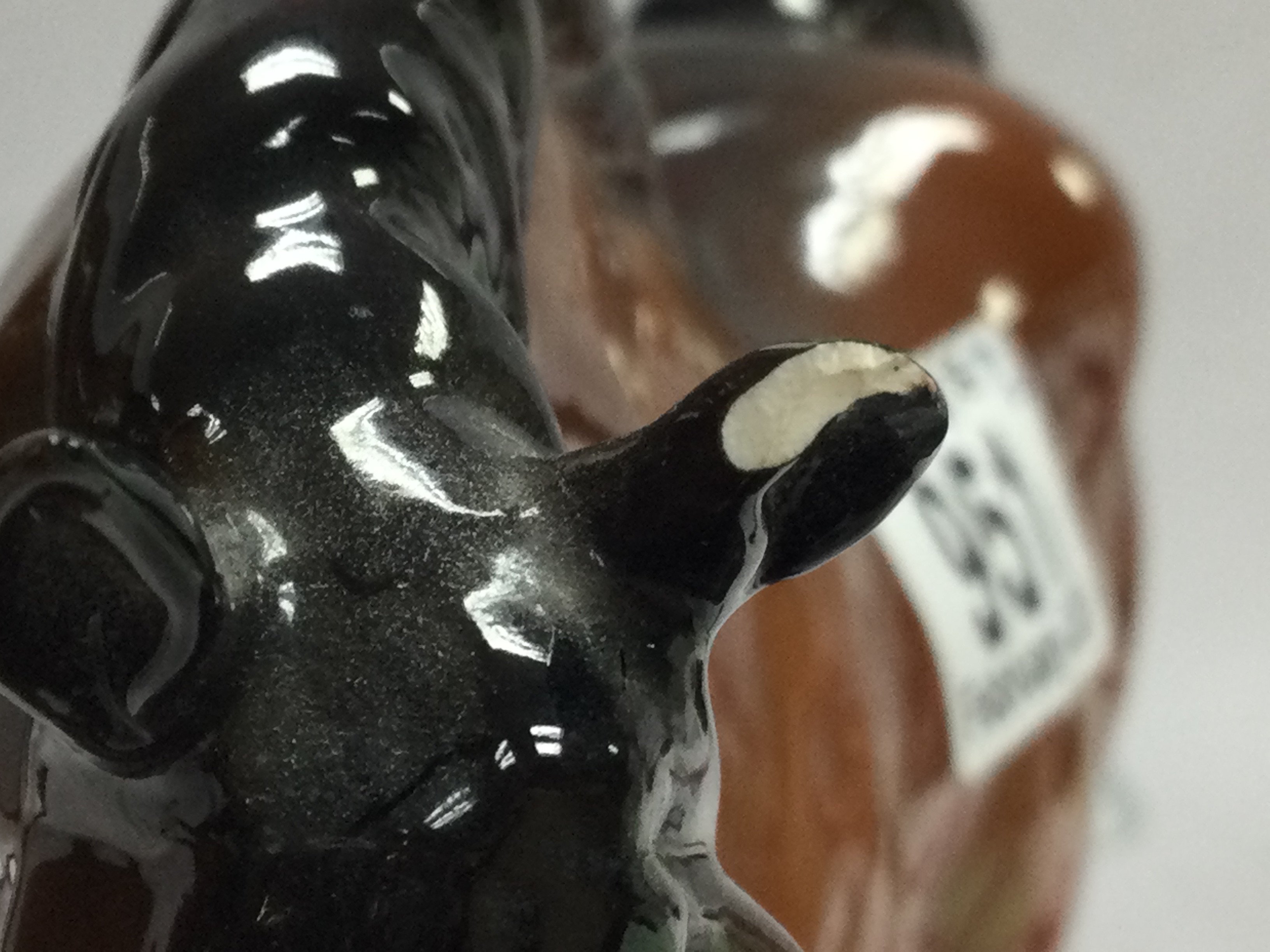Two porcelain Beswick horses , some damage as seen. This lot cannot be posted