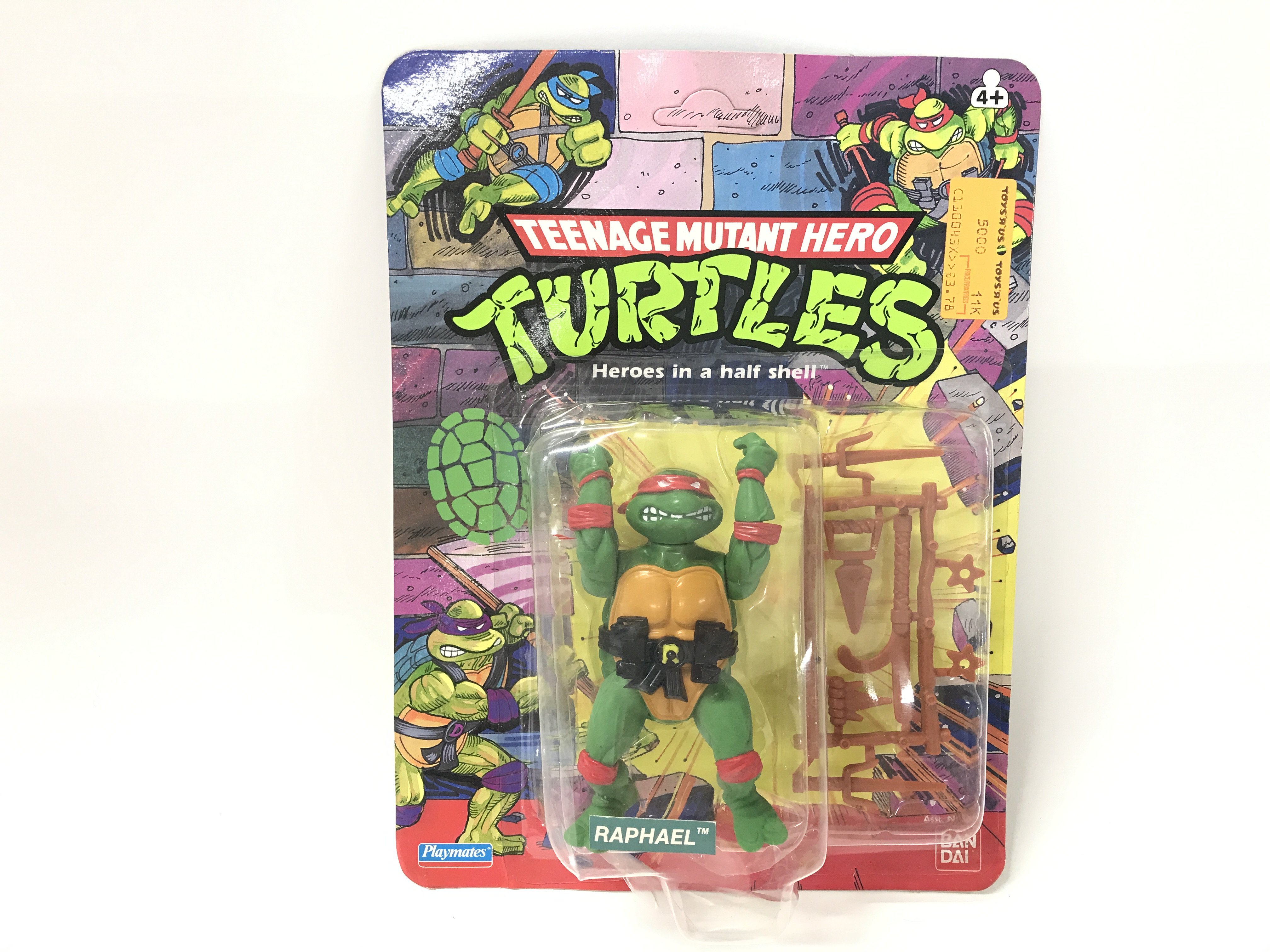 A Carded Playmates Teenage Mutant Hero Turtles Raphael Figure. Blister has Some Damage. Un punched.