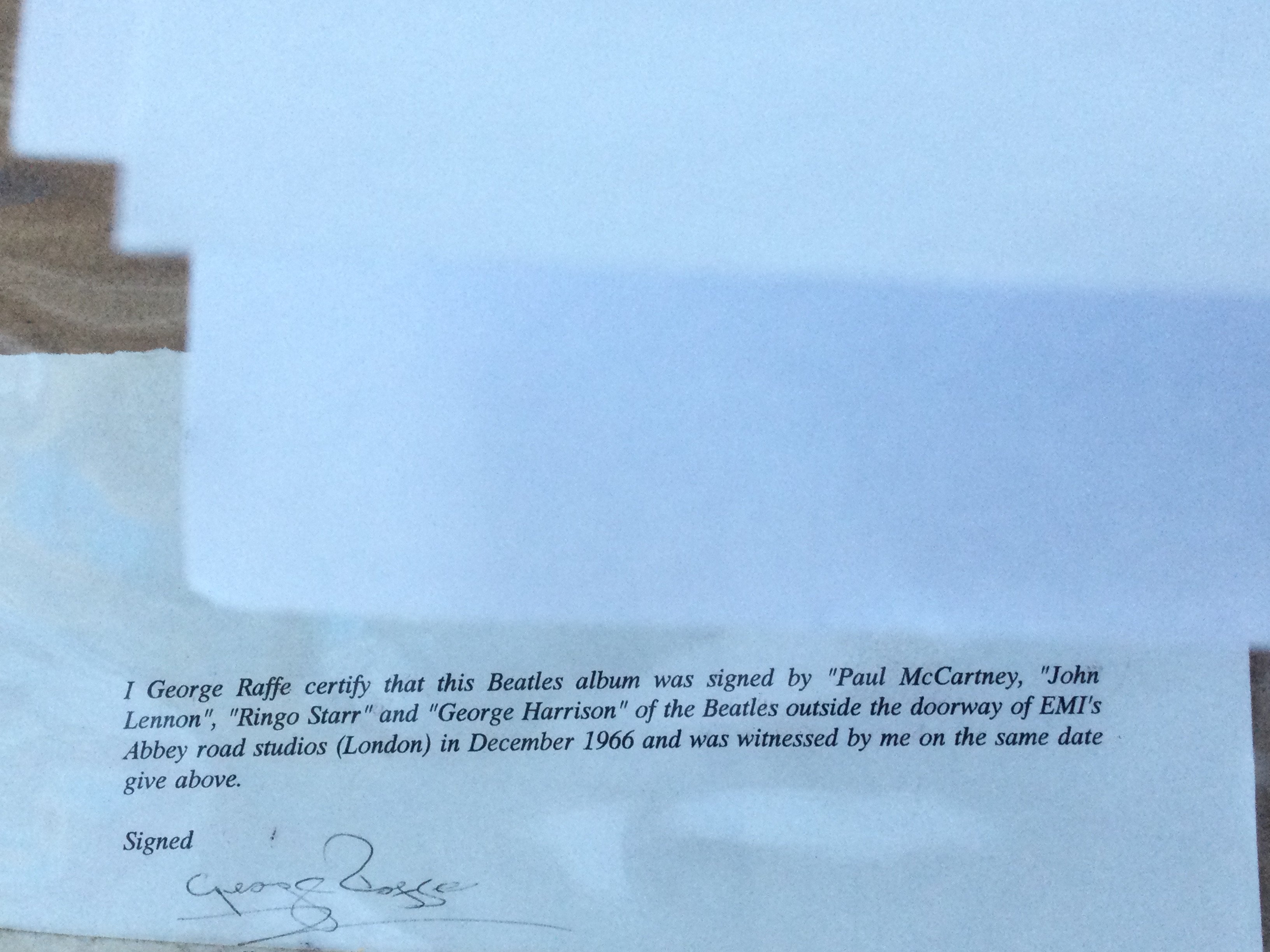 A signed Beatles For Sale LP presented in a framed display. Provenance provided. Please note that we are not experts in this field and can offer no guarantees that these signatures are genuine and will not be held responsible should they prove otherwise.