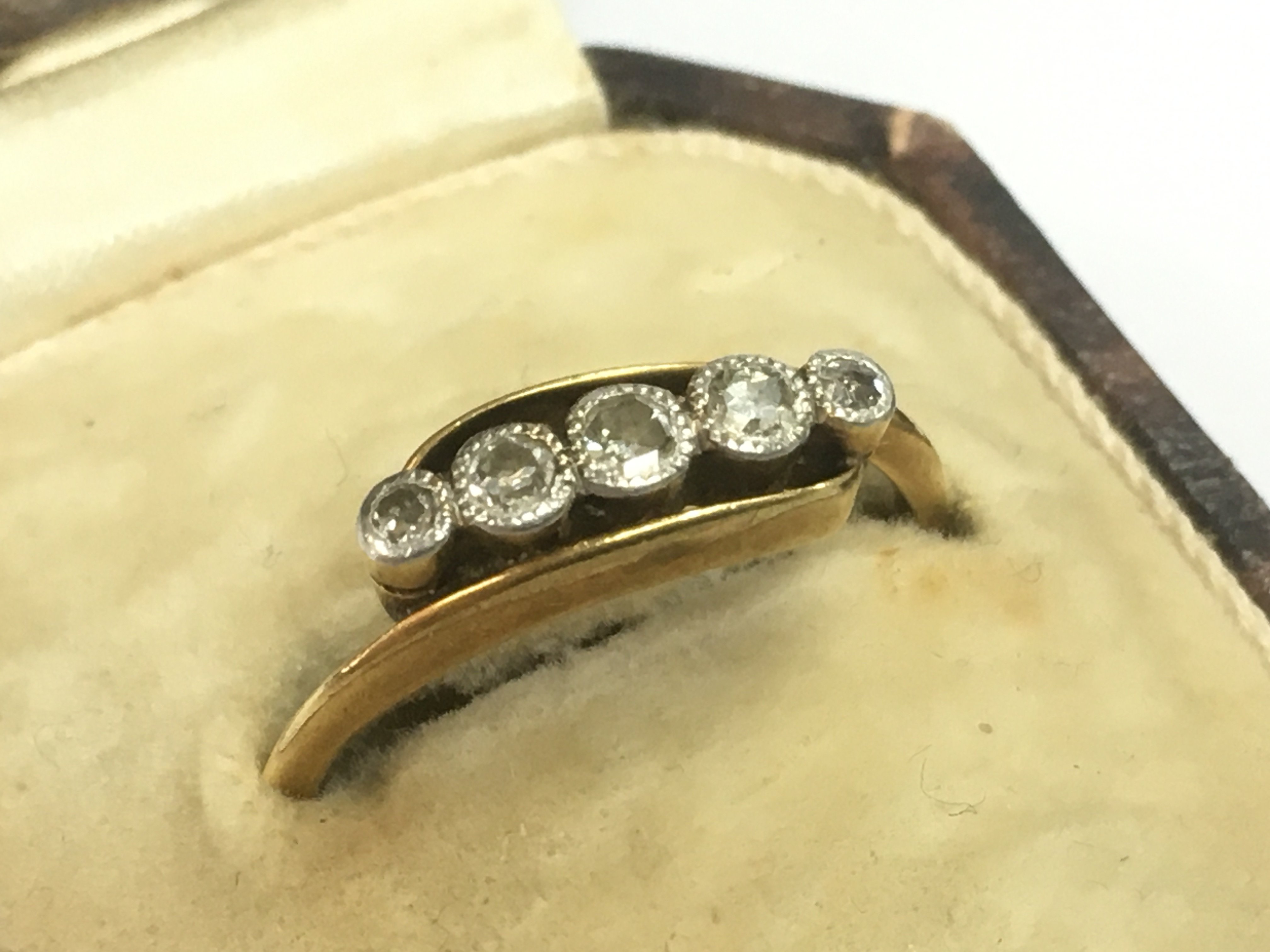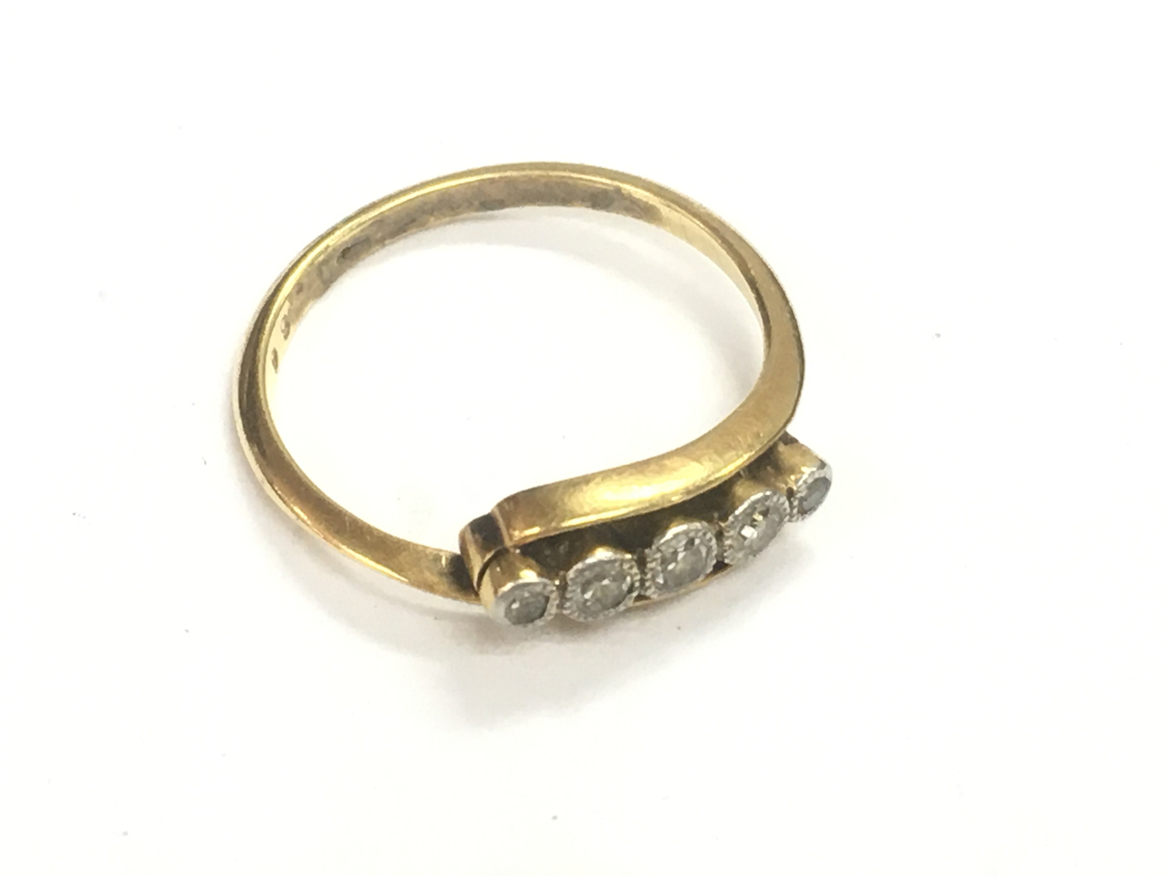An 18ct gold five stone diamond twist ring , total weight 2.86g . Postage category A