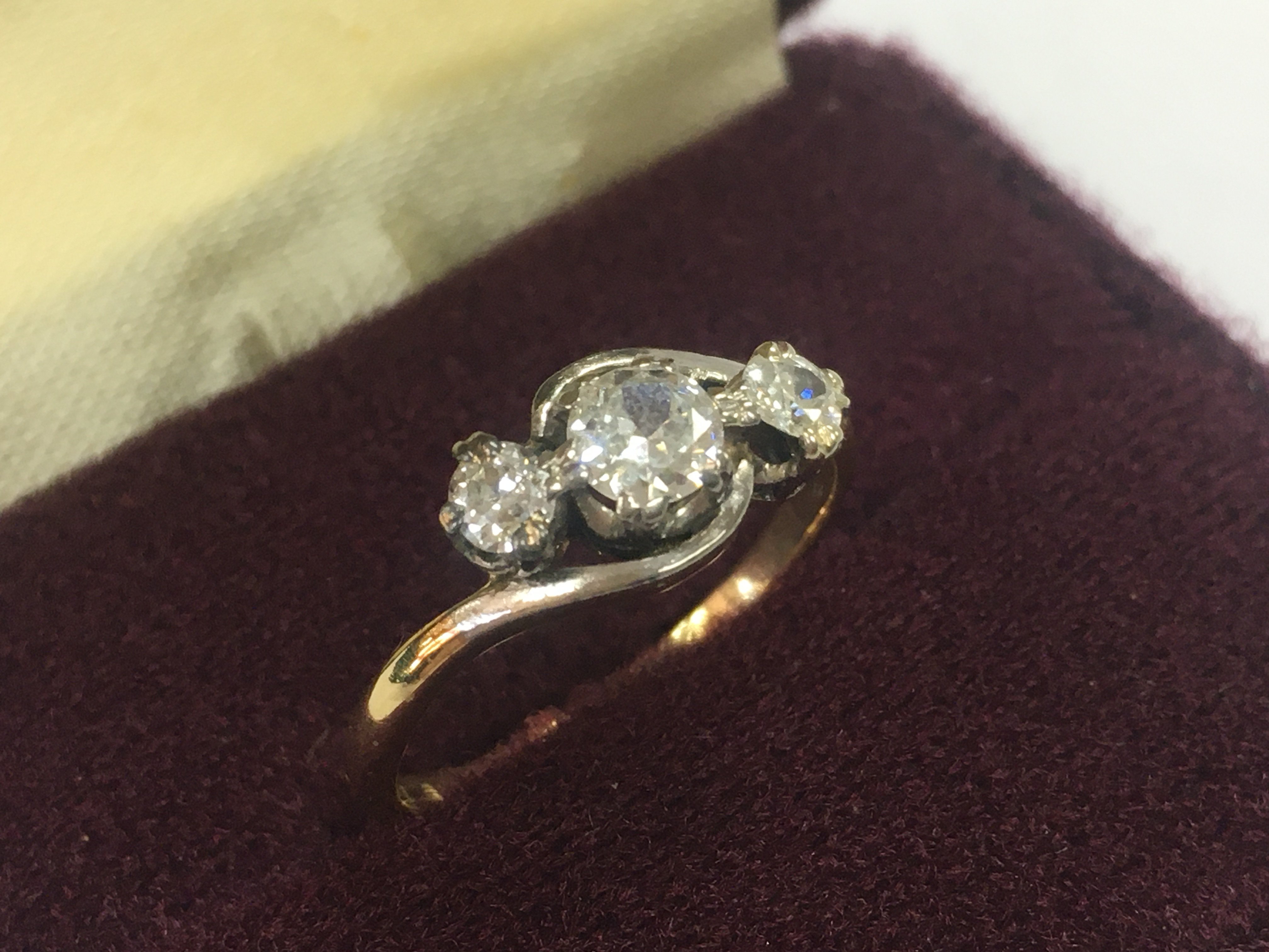 An 18ct gold and platinum 1930s twist diamond set 60 pts ring , total weight 3.38g. Size P/Q. Postage category A
