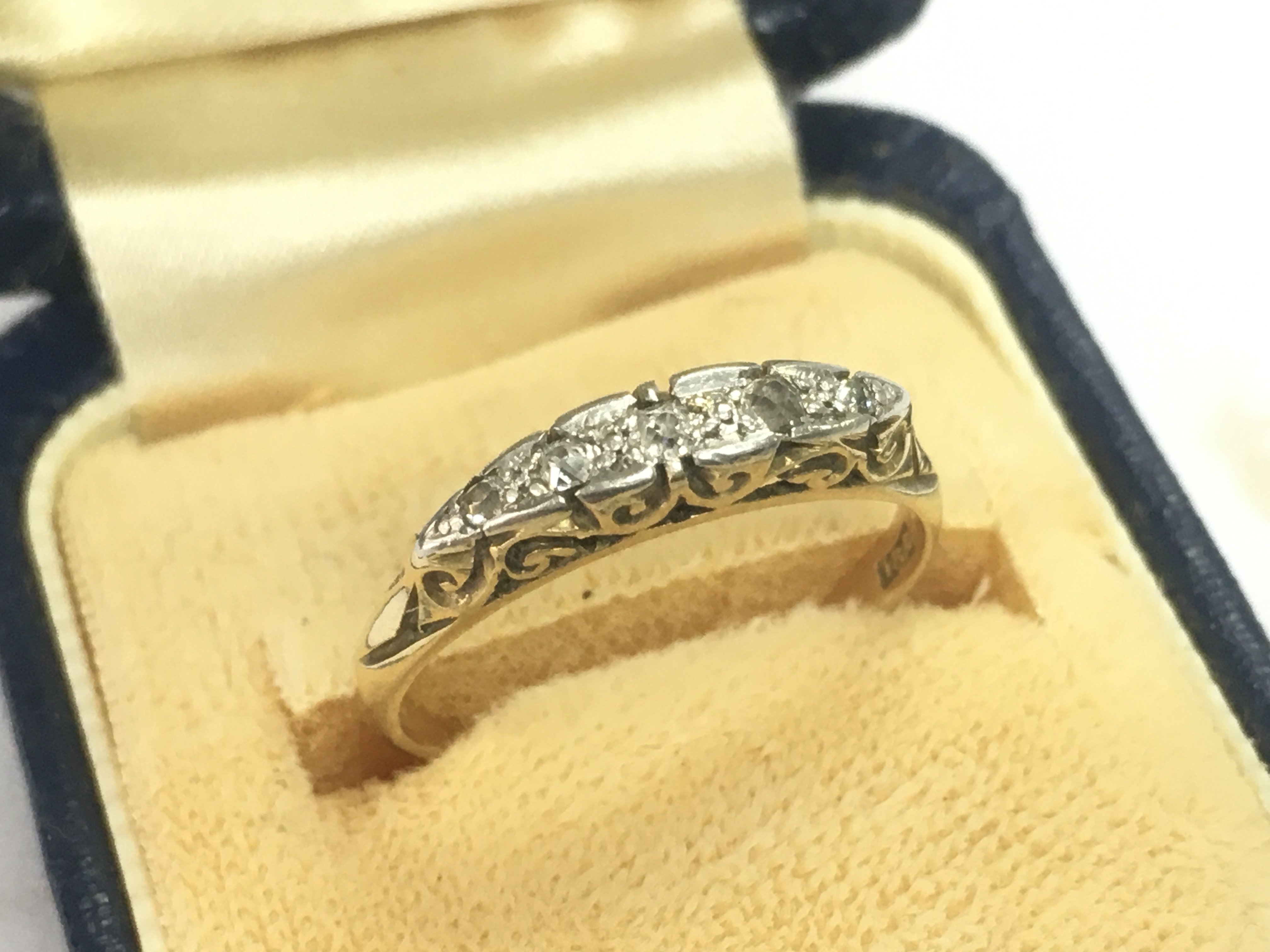 An 18ct gold 1920s five stone diamond ring . Size M/N. Postage category A