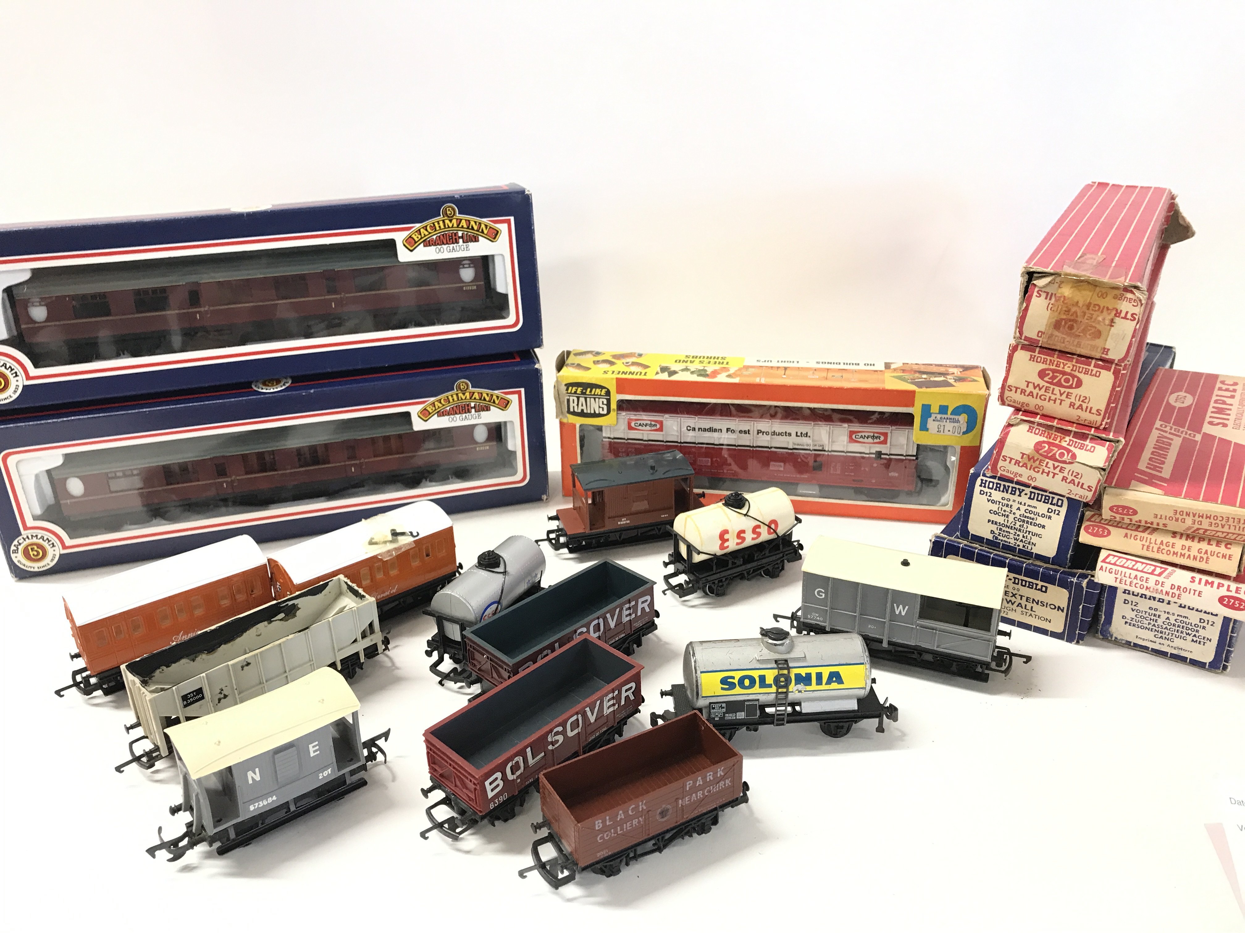 A Collection of 00 Gauge Coaches. Wagons Track Etc. No Reserve.