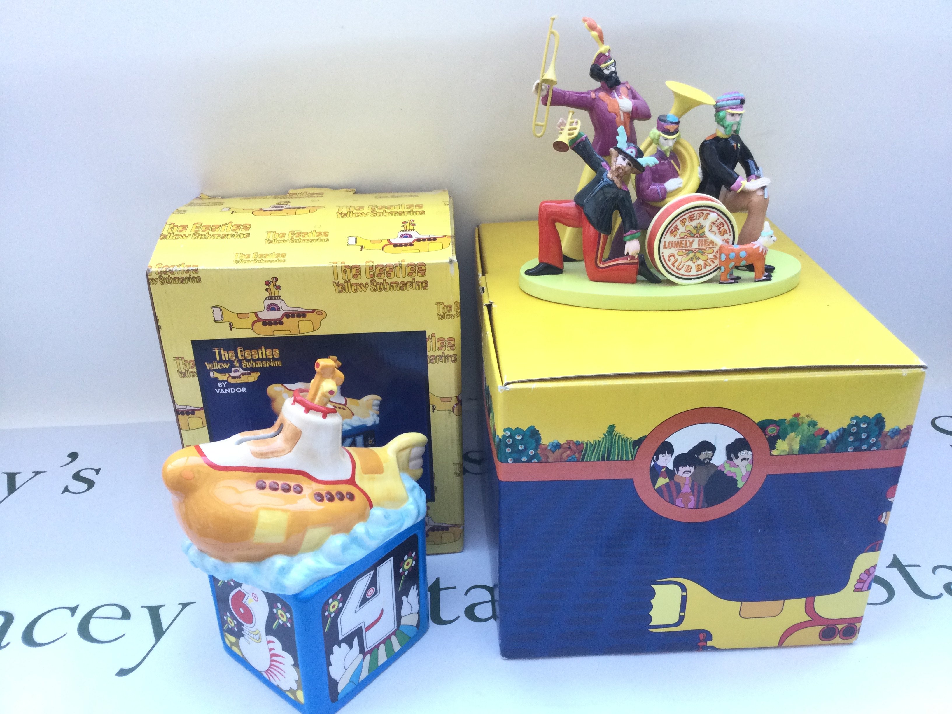 Two boxed Yellow Submarine ceramic items comprising a limited edition Coalport Sgt Pepper's band figural group and a money box (2).