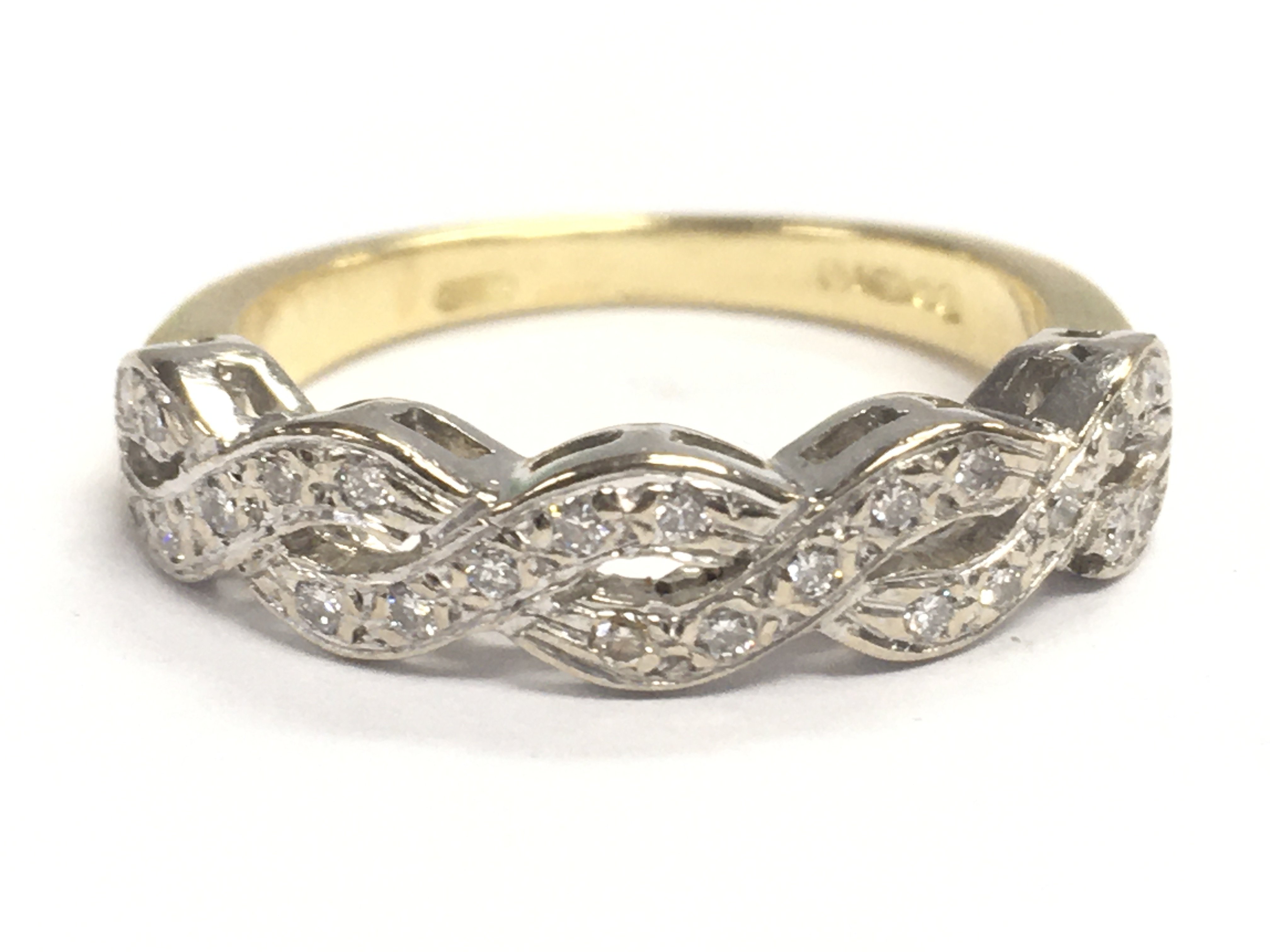 An 18ct gold diamond twist ring, 3.87g total weight. Size J. Postage category A