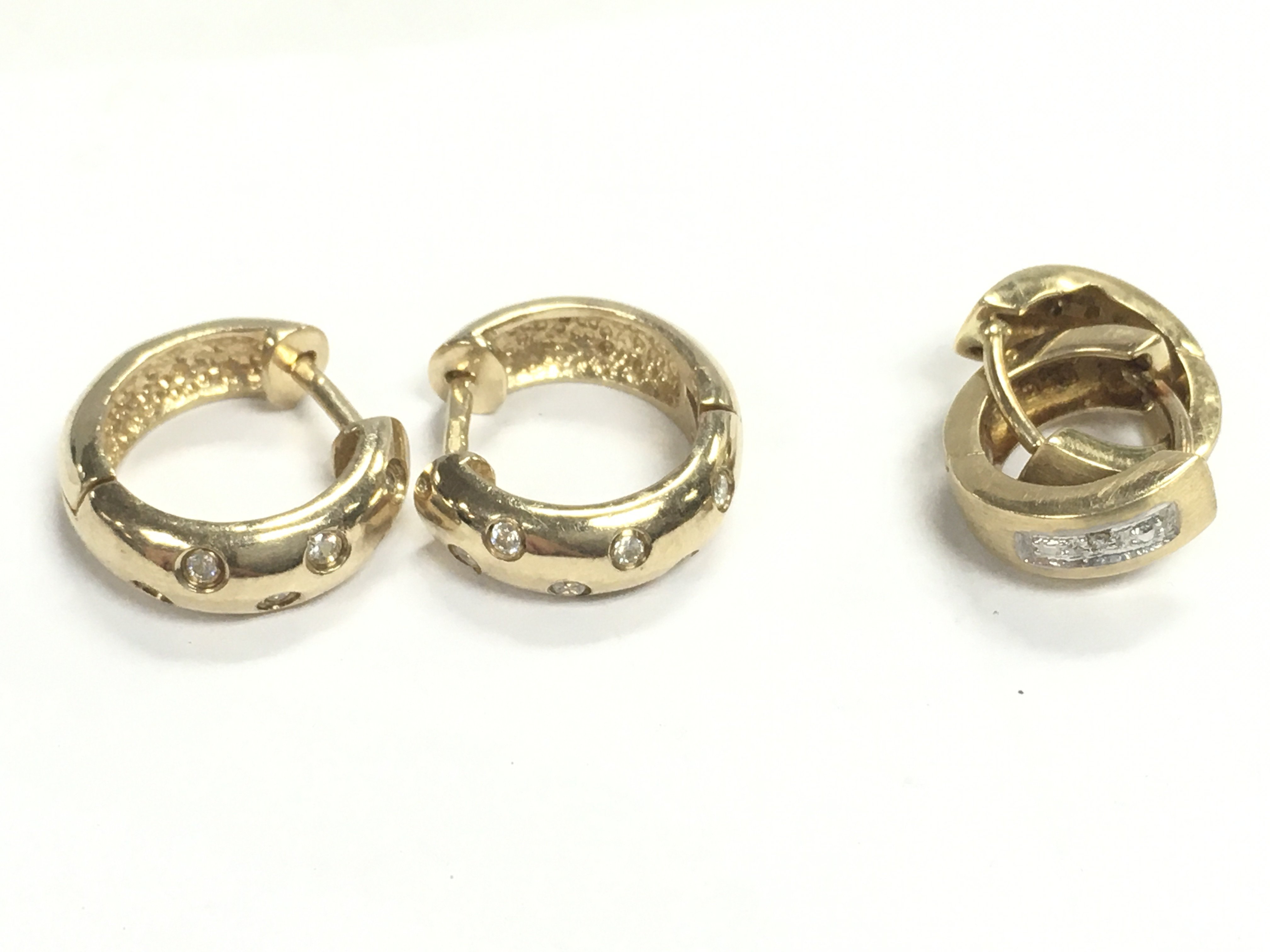 Two pairs of 9ct gold hoop earrings set with diamond stones , 8.2g postage category A