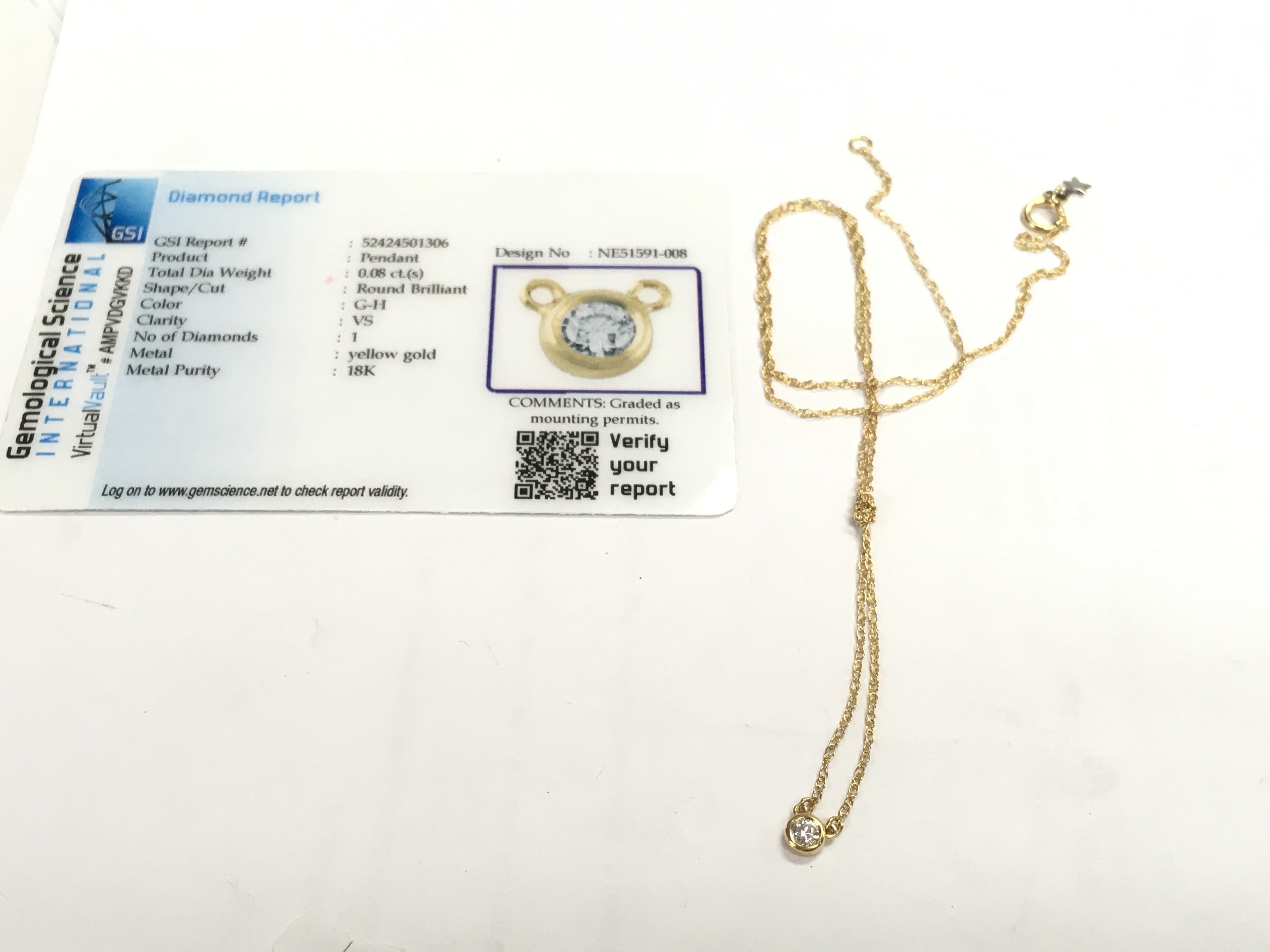 An 18ct rub over diamond pendant on a price of wales chain ,with certificate. 1.3G total weight