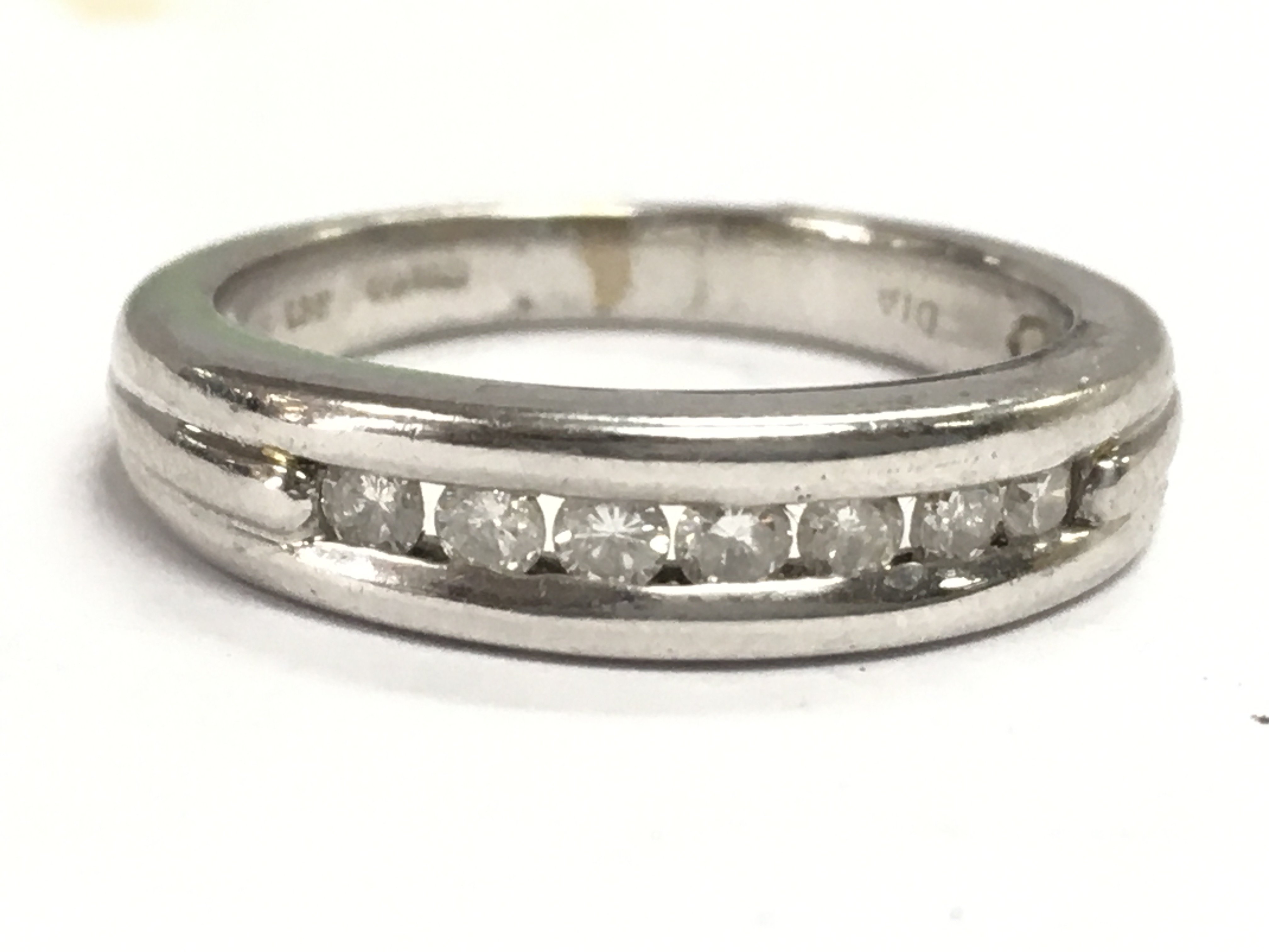 An 18ct white gold diamond 1/2 hoop, size K. Total weight 4.9g Postage category a